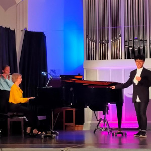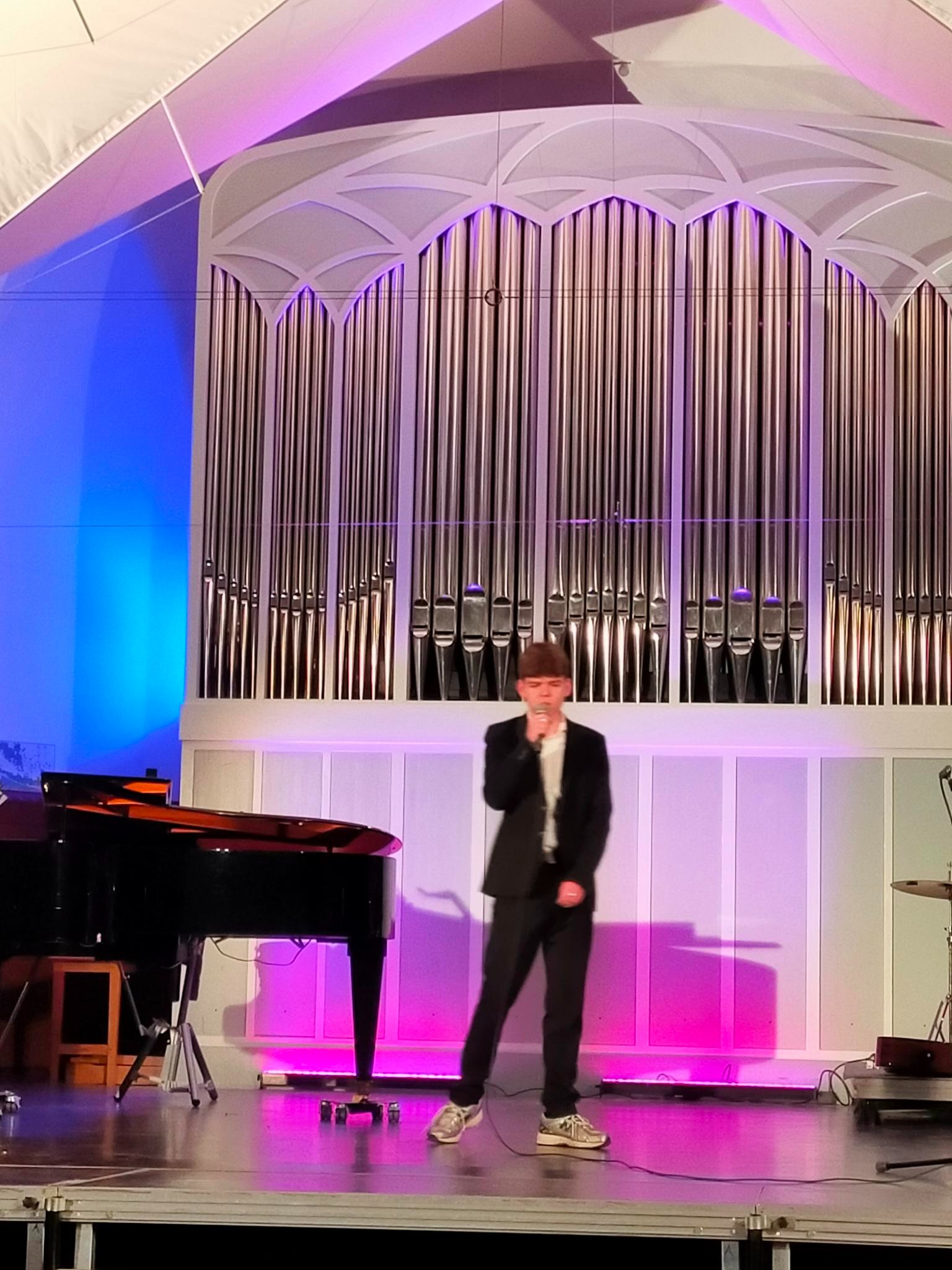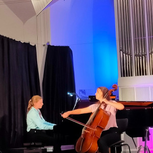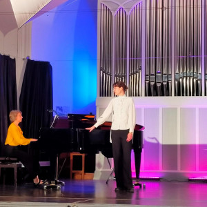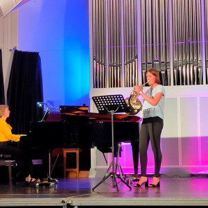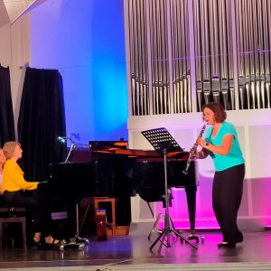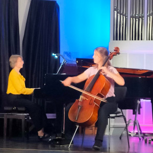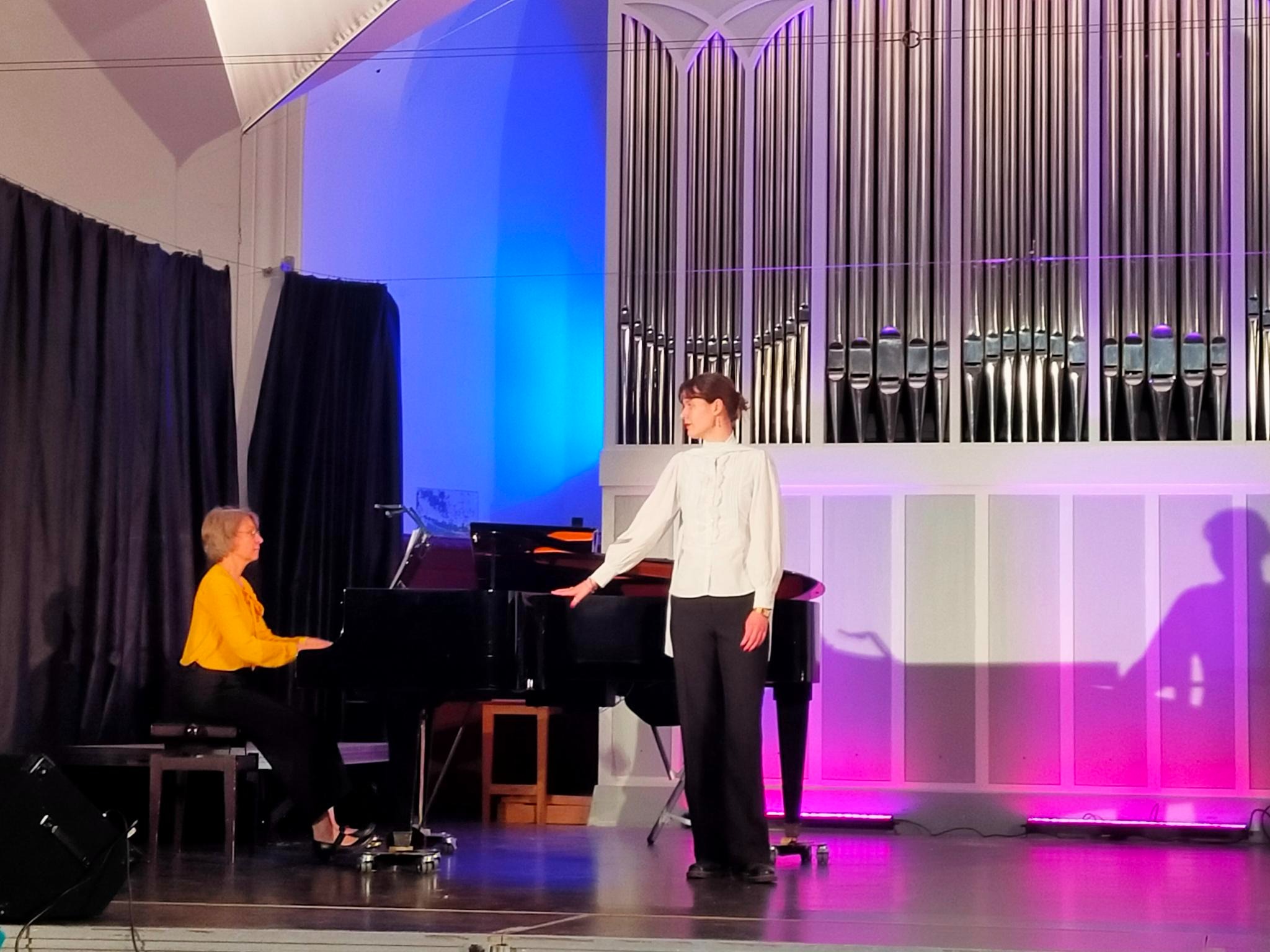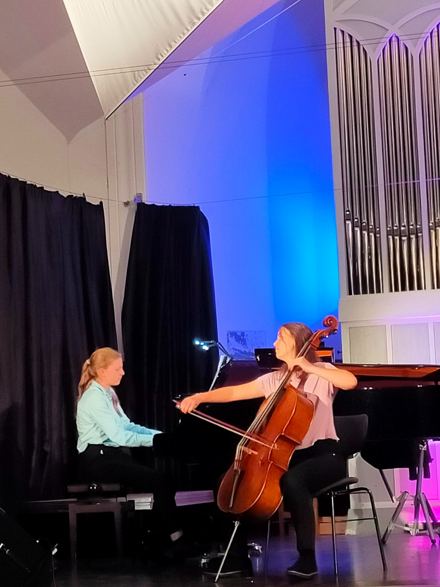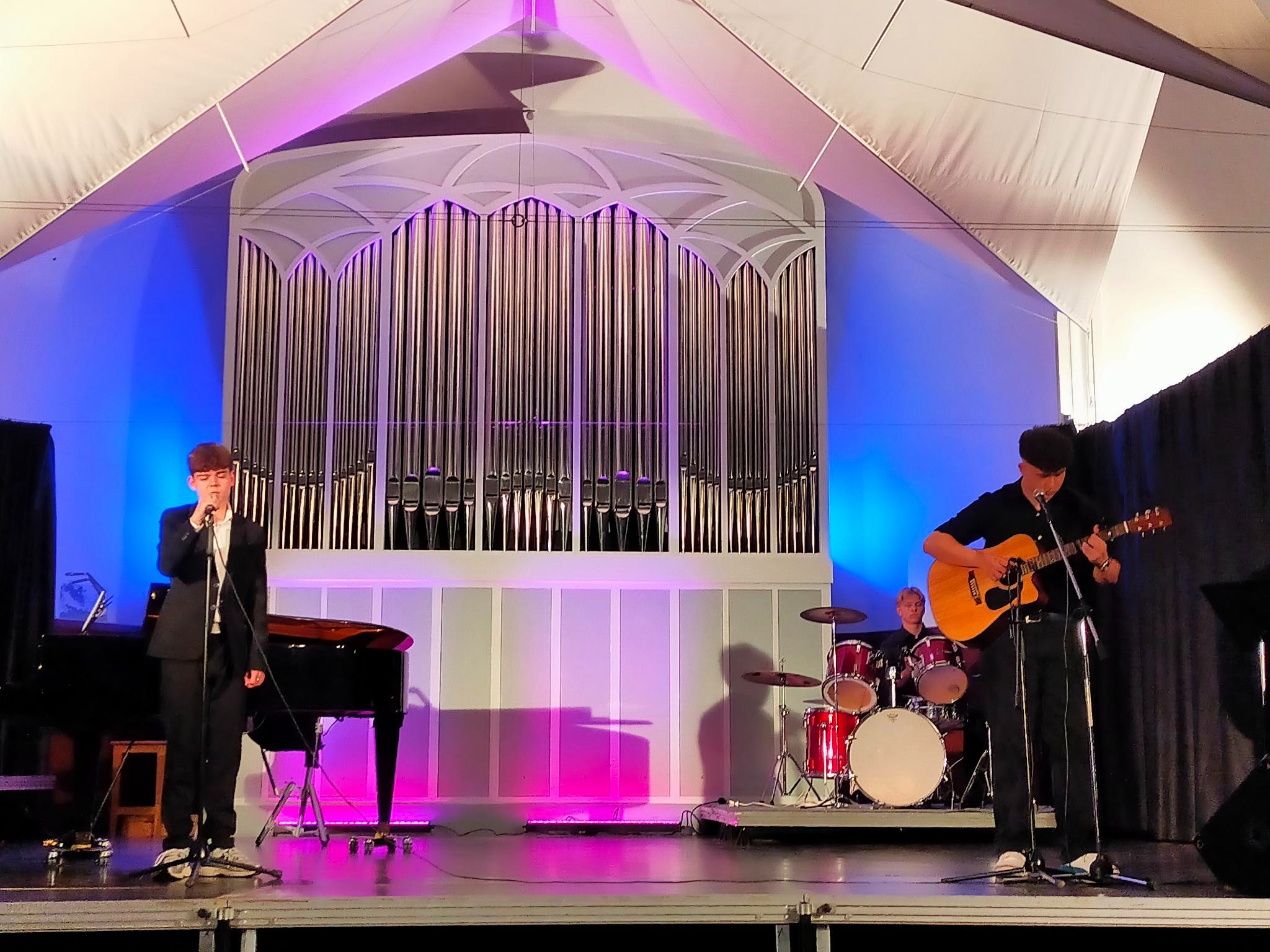 Durch das Programm führten souverän am Mikro Christopher Tamm und Adrian Beytulai-Puhlmann. Sie kündigten die Auftritte an, die eine besondere Vielfalt aufwiesen. Von kraftvollen und konzentrierten Soli am Cello, der Klarinette oder dem Horn, meisterlich begleitet von Frau Maetzel, über Duette mit Klavier oder Violine ging es bis zu klassischen Gesangsdarbietungen.