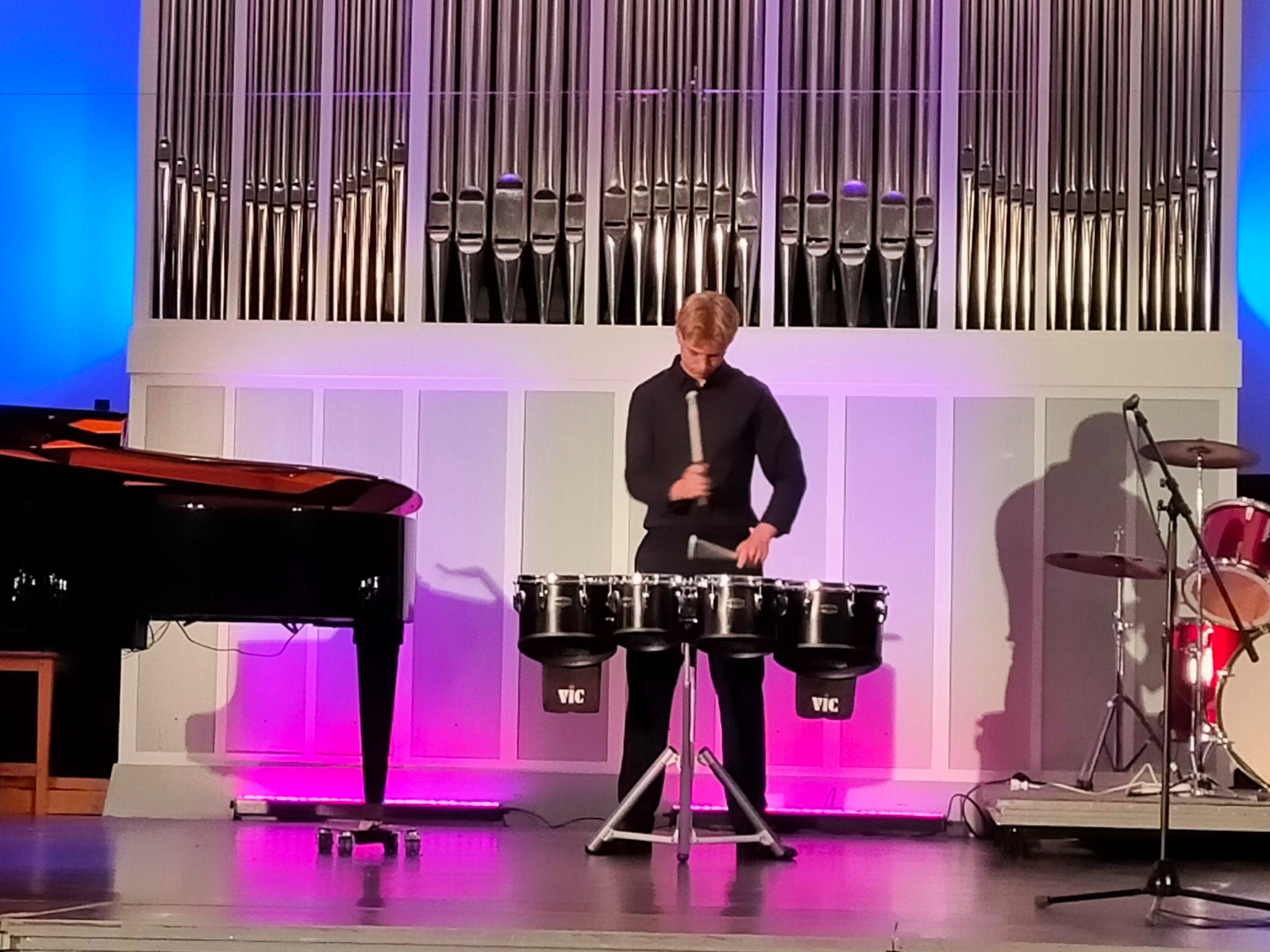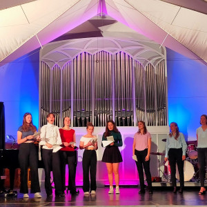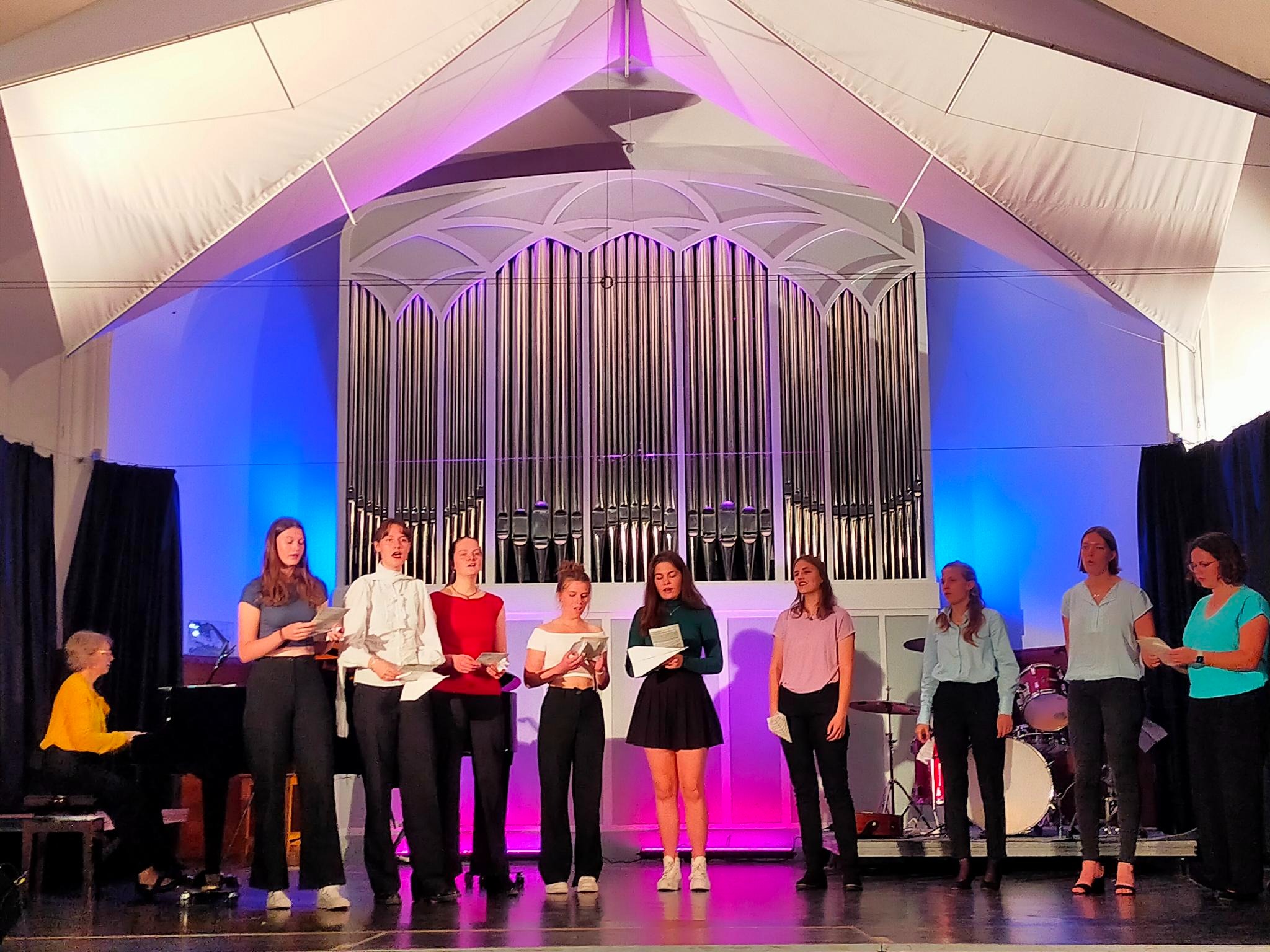 Schon vor den Sommerferien hatte die Klasse mit Frau Maetzel die Idee, die alte Tradition eines Konzertabends des Musikprofils wieder aufleben zu lassen. Viele gute Gründe sprachen sofort dafür: So kann deutlich werden, wie vielfältig musikalisch begabt die Schüler:innen sind, die Abikasse lässt sich bestens füllen, natürlich kann man an einem solchen Projekt lernen, was alles zur Organisation eines Konzerts dazugehört und dazu auch noch in einer zusammengewachsenen Klassengemeinschaft Spaß haben. Mit einer Probenwoche und einem Fachtag gelang dies absolut überzeugend! Durch Tim Burhorns und Dorian Greens Engagement am Technikpult gab es festliches Licht und guten Ton.