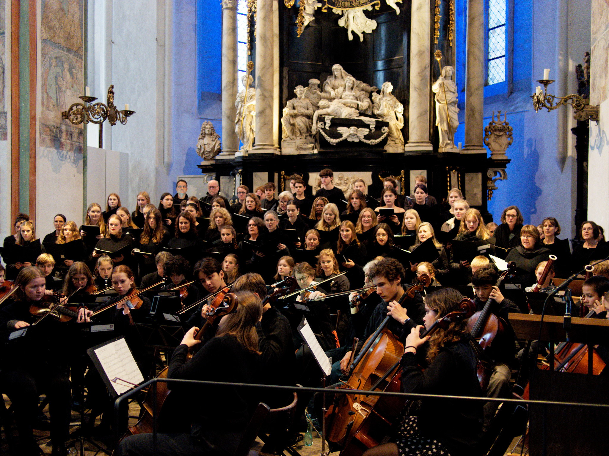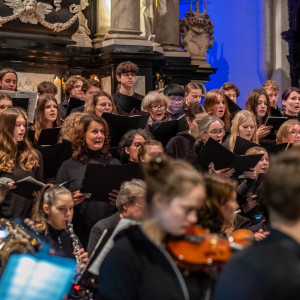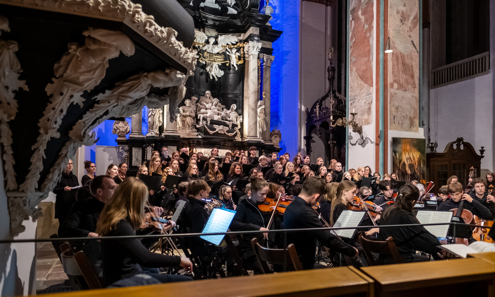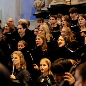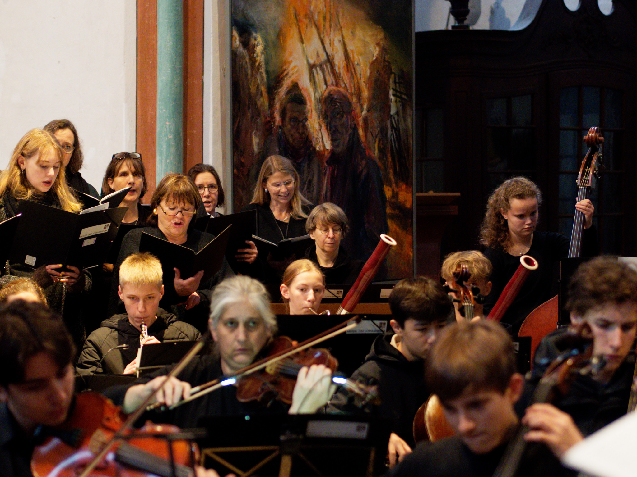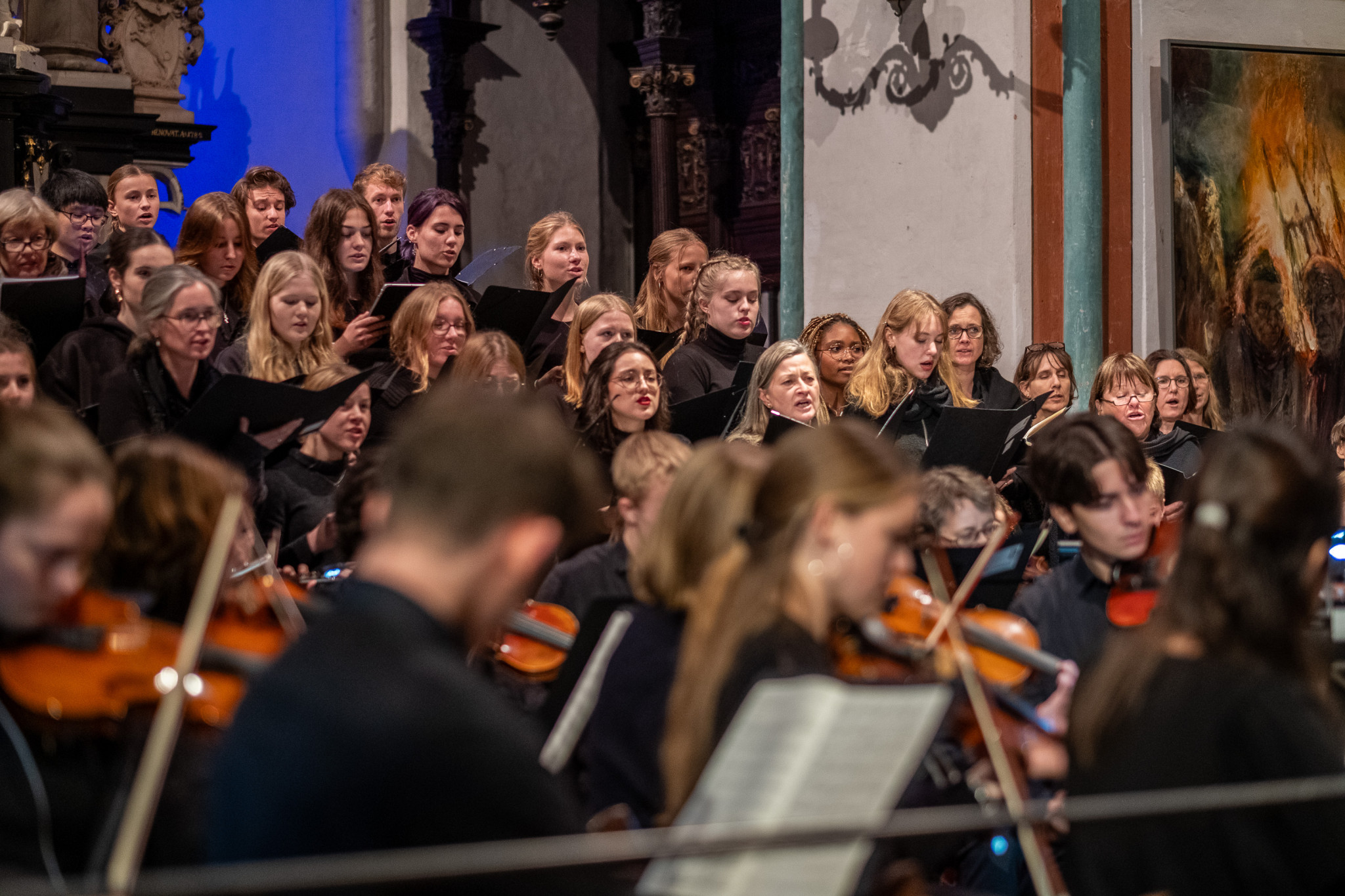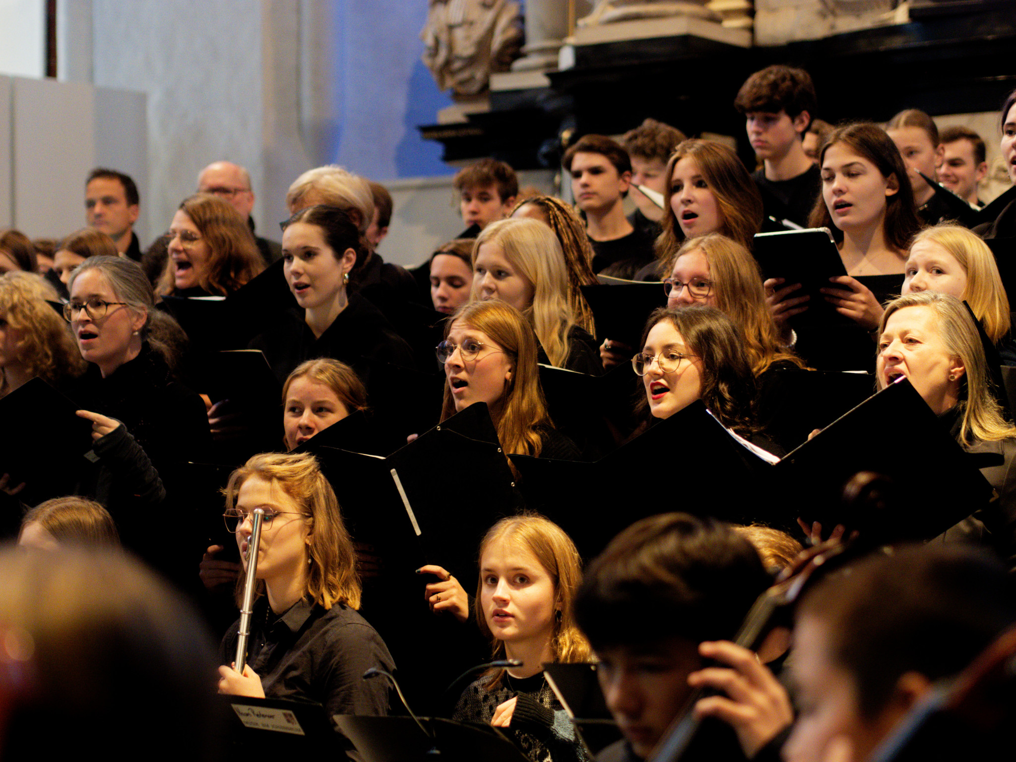 Der jährliche Kantatengottesdienst fand dieses Jahr erstmals wieder so groß statt: Über hundert Ensemblemitglieder waren daran beteiligt, um nach Eigenaussage Mendelssohns „seine beste Kirchenkomposition“ zu präsentieren. Und nicht nur vorne beim Altar wurde es eng für die Muisiker:innen, sondern auch Zuhörer:innen mussten aufgrund der rappelvollen Kirche zusammenrutschen.