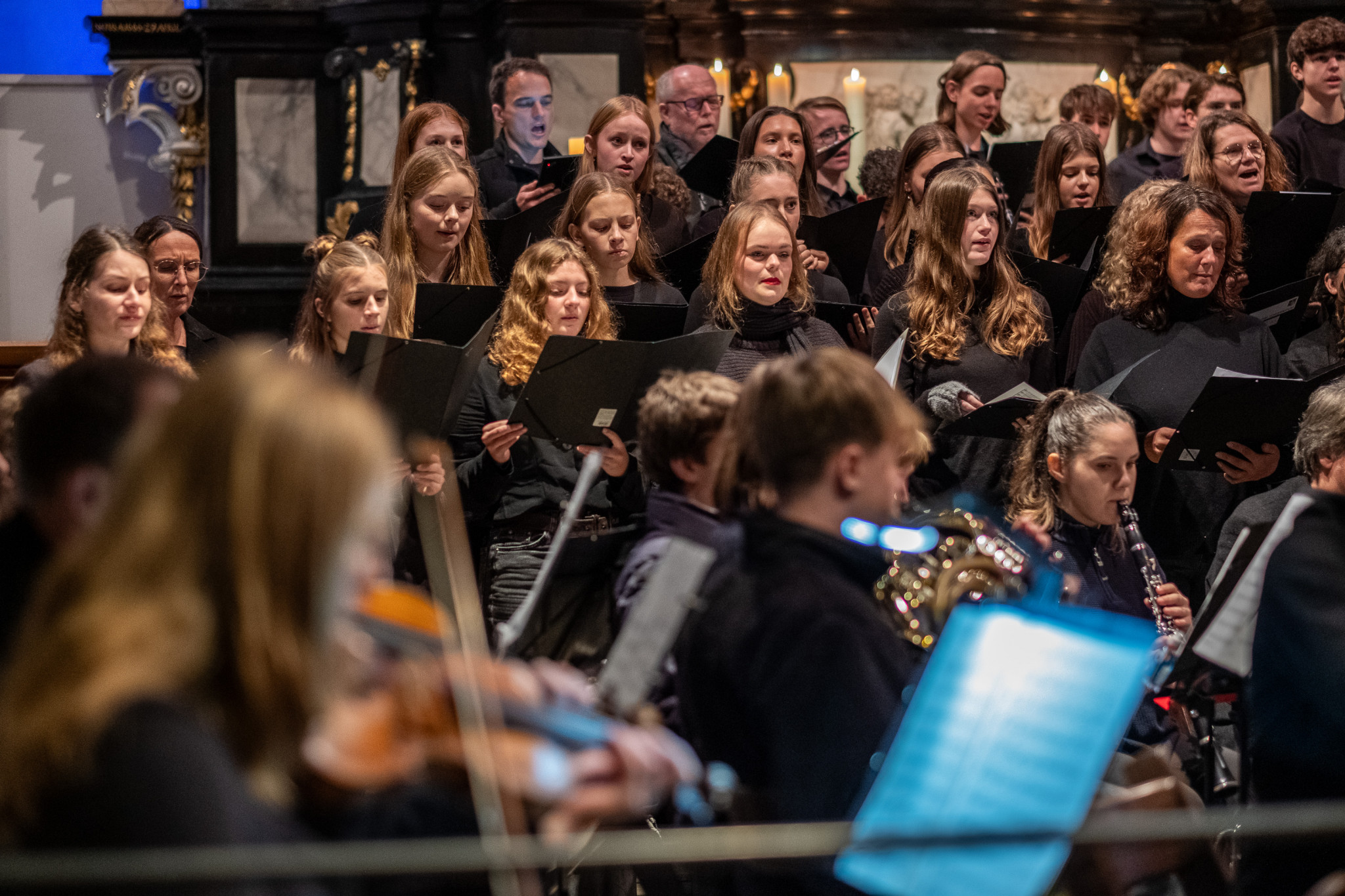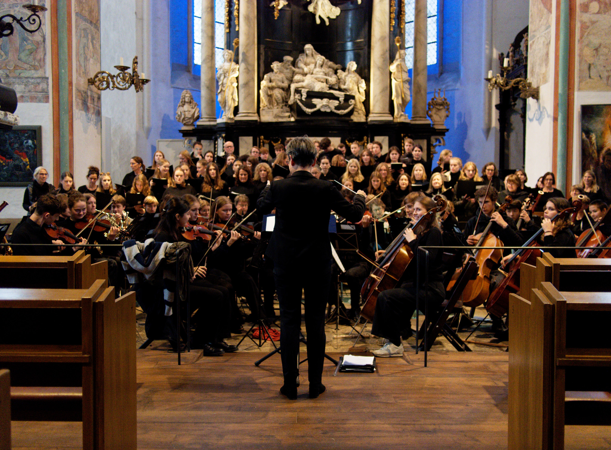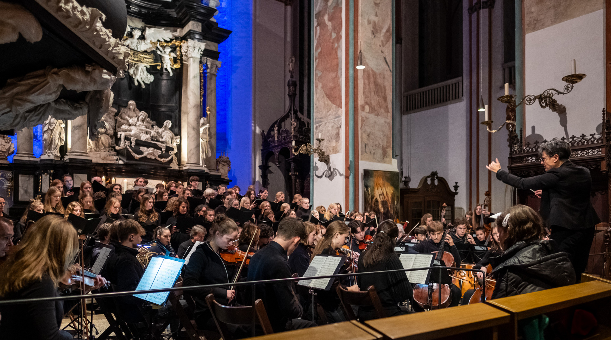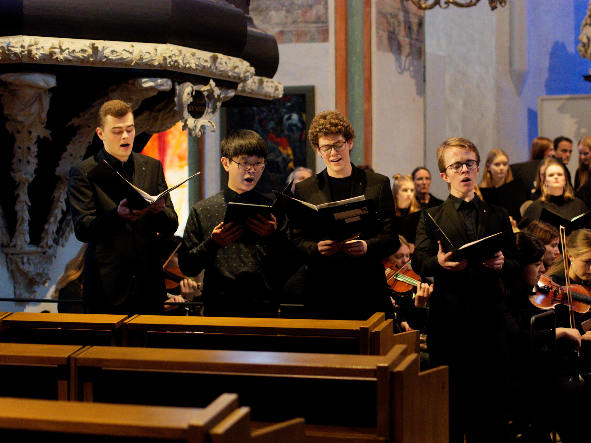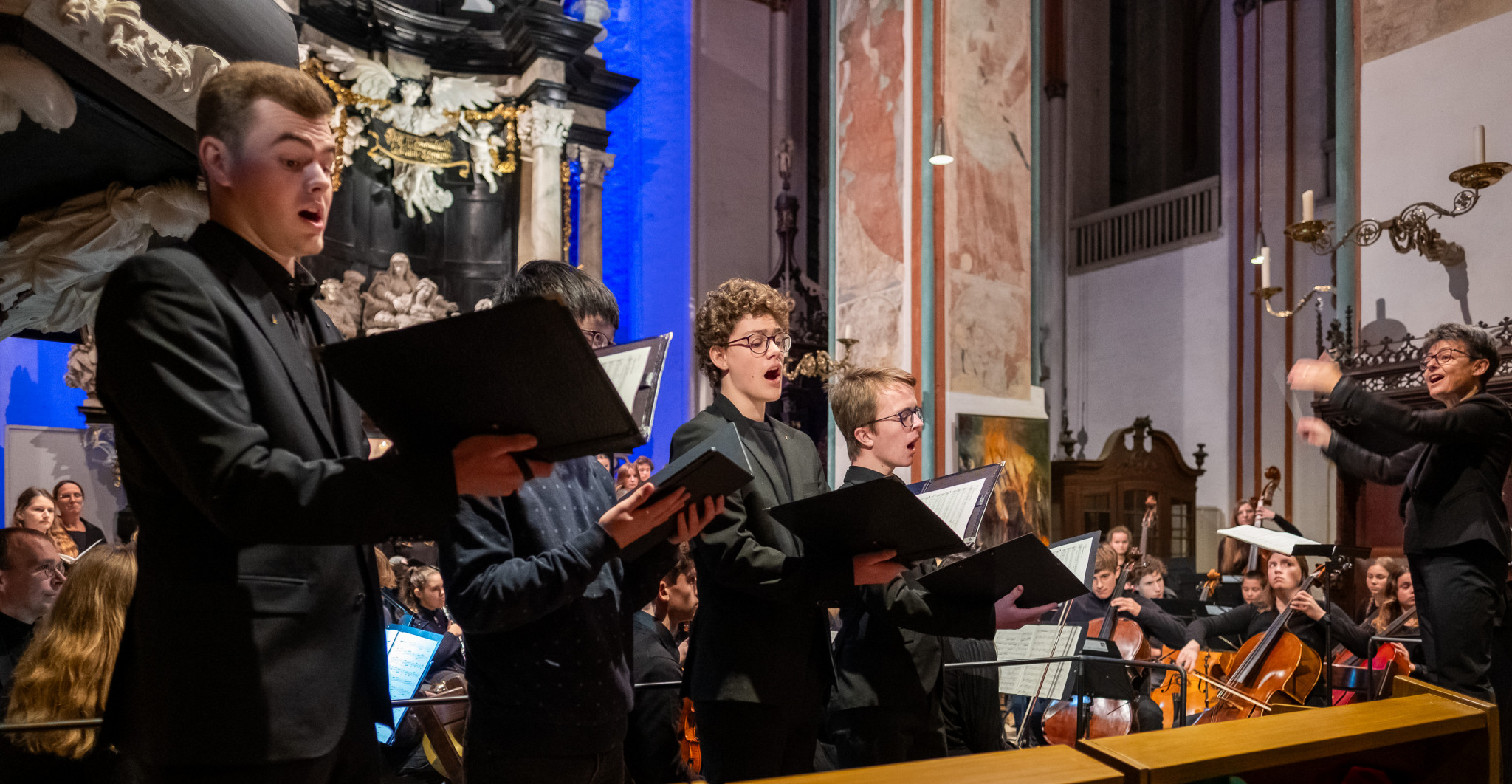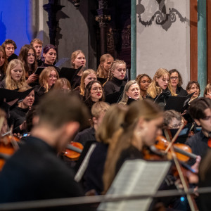 Der jährliche Kantatengottesdienst fand dieses Jahr erstmals wieder so groß statt: Über hundert Ensemblemitglieder waren daran beteiligt, um nach Eigenaussage Mendelssohns „seine beste Kirchenkomposition“ zu präsentieren. Und nicht nur vorne beim Altar wurde es eng für die Muisiker:innen, sondern auch Zuhörer:innen mussten aufgrund der rappelvollen Kirche zusammenrutschen.