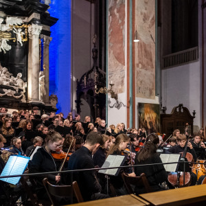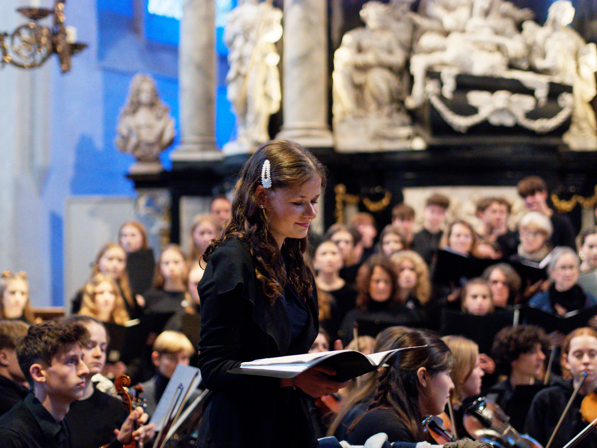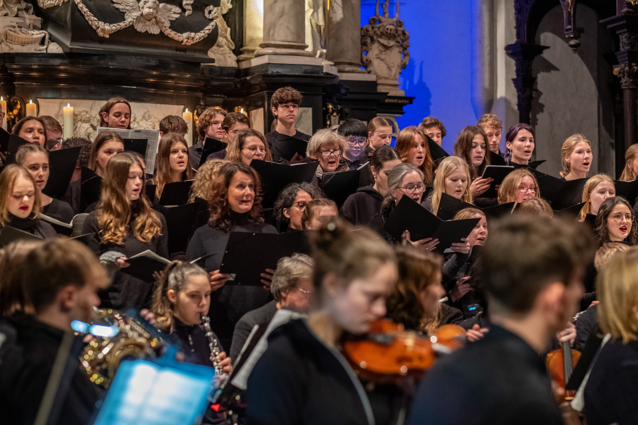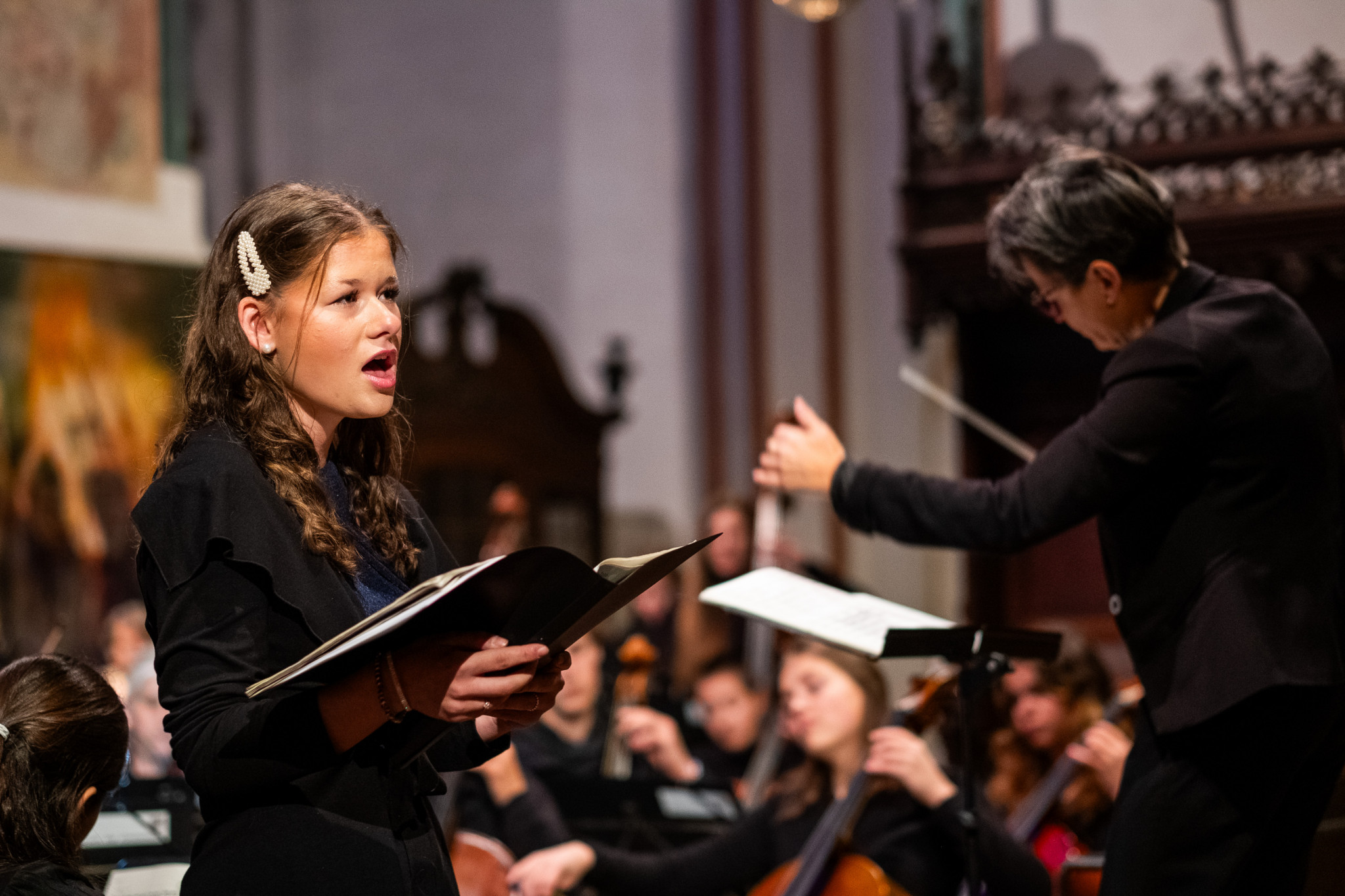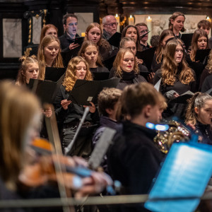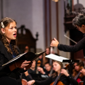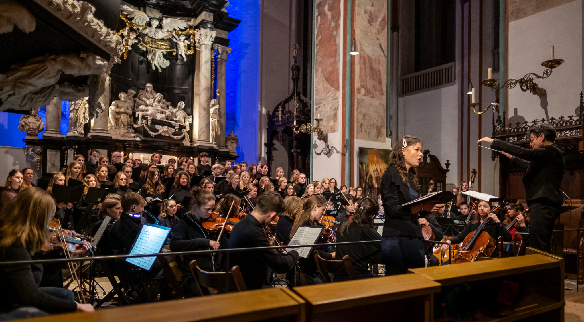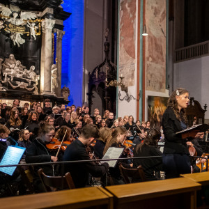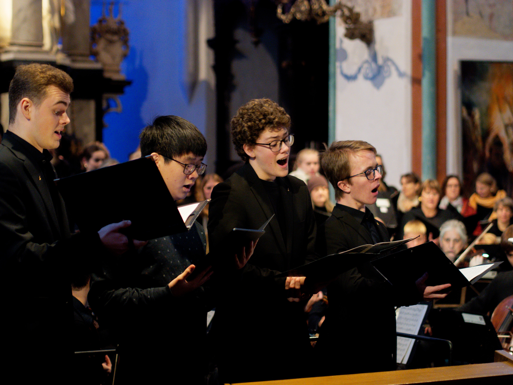 Der jährliche Kantatengottesdienst fand dieses Jahr erstmals wieder so groß statt: Über hundert Ensemblemitglieder waren daran beteiligt, um nach Eigenaussage Mendelssohns „seine beste Kirchenkomposition“ zu präsentieren. Und nicht nur vorne beim Altar wurde es eng für die Muisiker:innen, sondern auch Zuhörer:innen mussten aufgrund der rappelvollen Kirche zusammenrutschen.
