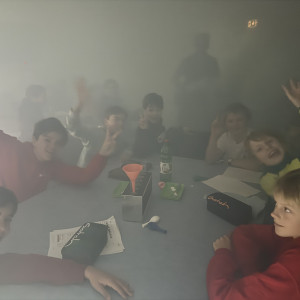 Wir riefen bei der Feuerwehr-Leitstelle an, um darüber zu informieren, dass wir ein Rauchexperiment starten wollen. Darauf wurde der ganze Raum in einen besonderen Dampf eingetaucht. Damit war die Luft sehr stickig. Es war fast so, als stünde man in einem Rauch, wenn es brennt, deshalb der Anruf. Dann lernten wir noch, welche Methode am besten funktioniert, um diesen Dampf loszuwerden, also im Normalfall die stickige Luft, und zwar mit Querlüften. Das letzte Experiment diente der Messung des Gewichts von CO². Wir erzeugten mit Brausepulver in Essig durch eine chemische Reaktion CO² und füllten es in einen Luftballon. Einen weiteren Ballon füllten wir mit Luft. Wir ließen beide von gleicher Höhe fallen und stellten fest, dass der CO²-Ballon schneller als der luftgefüllte Ballon zu Boden fiel. Das heißt, CO² ist schwerer als Luft. Deshalb ist die Luft am Boden schlechter als an der Decke. Nach diesen tollen Spektakeln gingen wir wieder zurück zur Schule.
