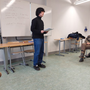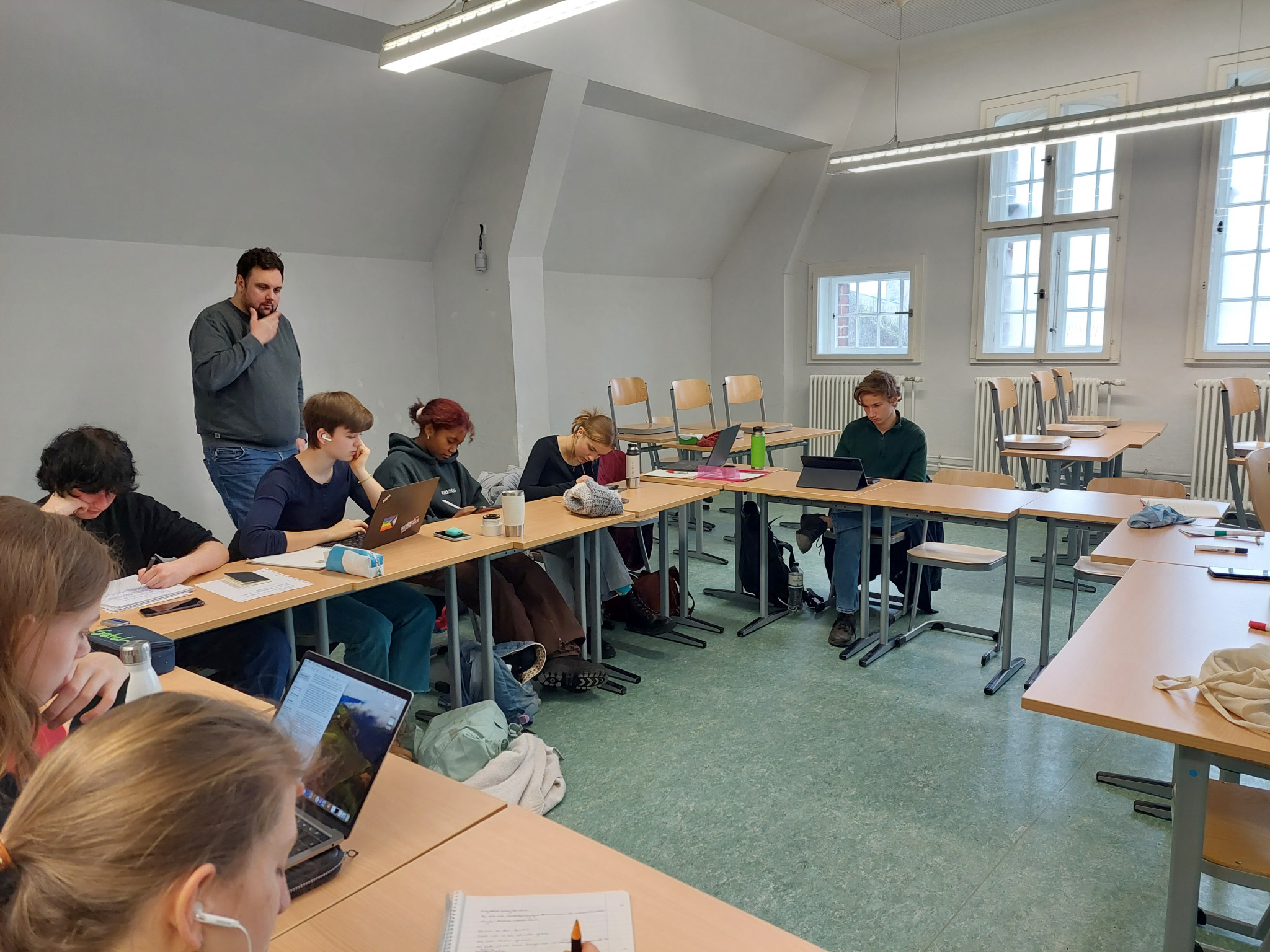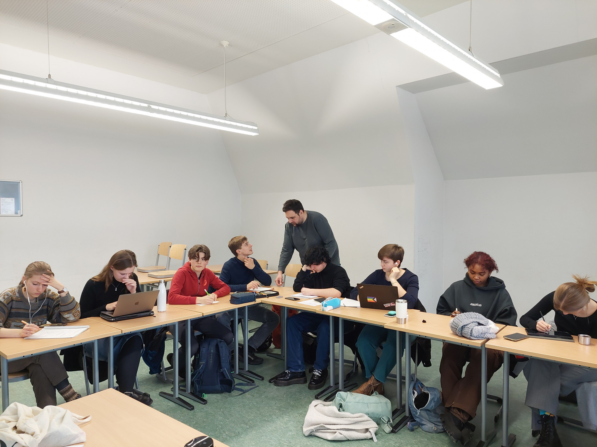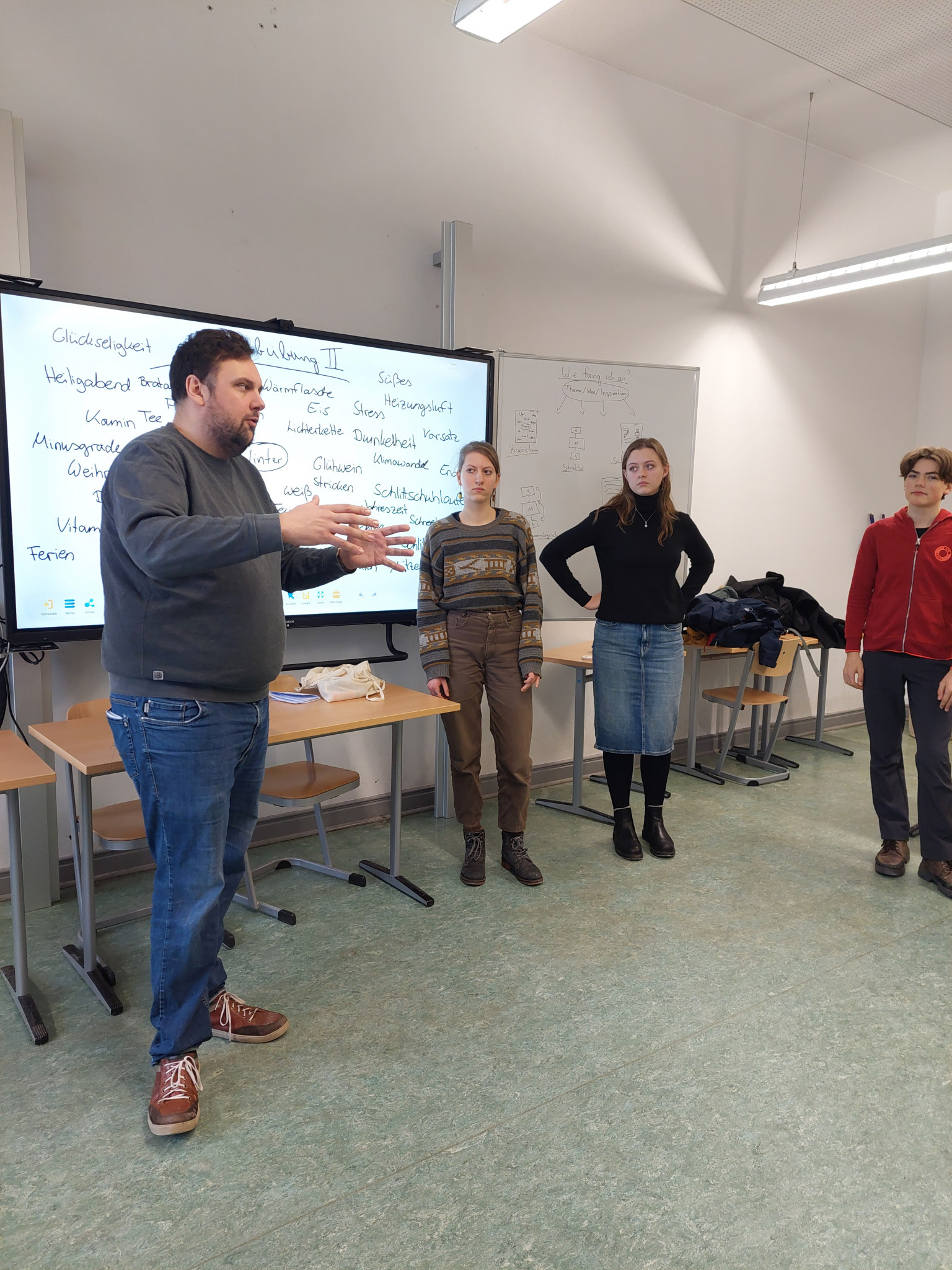 Worte können bewegen, belustigen und berühren. Was alles mit Worten möglich ist, haben einige interessierte Schüler:innen aus Klassenstufe 9, 10, Q1 und Q2 durch einen waschechten Poetry Slammer, nämlich Lennart Hamann aus Hamburg, in einem zweitägigen Workshop erfahren. Sie haben ausprobiert, wie man zu einem richtig guten Text kommt, den man bei einem Poetry Slam präsentieren kann.