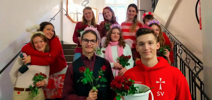 bescherte die SV am Valentinstag in fast allen Klassen. Viele hatten die Chance wahrgenommen, anonym oder mit einem Gruß begleitet über die SV Rosen an liebe Menschen zu schicken.