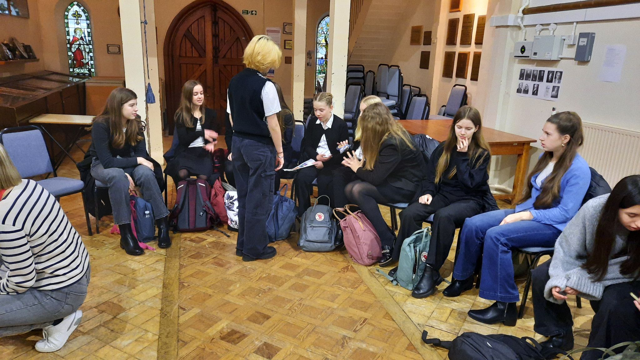 Wir haben uns nach deren Schule und unserem Ausflug an der Rezeption der Schule getroffen und sind von dort aus mit 6 Mädchen zum Bahnhof gelaufen. Die Zugfahrt war sehr lustig, die Züge in England sind etwas luxuriöser eingerichtet, es gibt zum Beispiel immer Teppichboden in den Zügen. Während der Fahrt haben wir uns viel über die Unterschiede unserer Wohnorte unterhalten und neue Wörter gelernt, sowohl englische als auch deutsche.