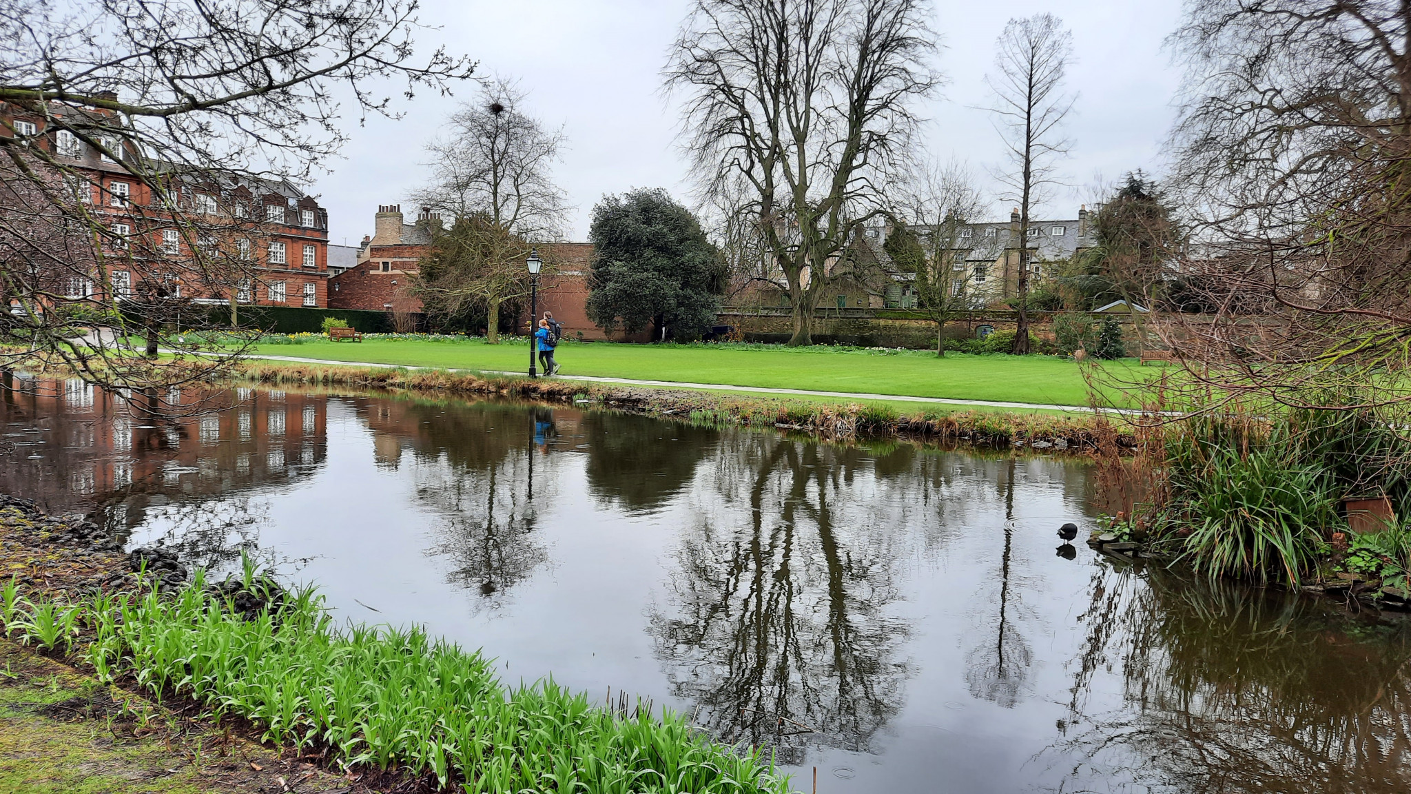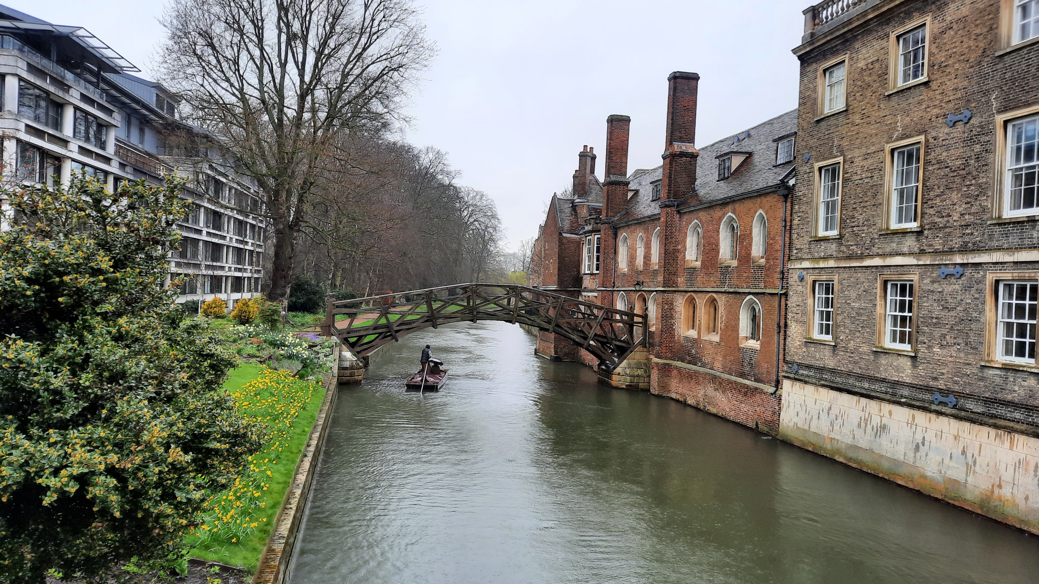 Als wir in Cambridge ankamen, besichtigten wir Sehenswürdigkeiten wie den River Cam und bekamen von einem unserer Gruppenmitglieder (in meinem Fall Johann) eine Einführung in die Traditionen des rowings und pantings auf dem Fluss, wobei man das Boot mit einem langen Holzstab vom Heck aus voranstößt. Leider machte uns der Regen einen Strich durch die Rechnung, so dass unsere eigene Bootsfahrt ins Wasser fallen musste.