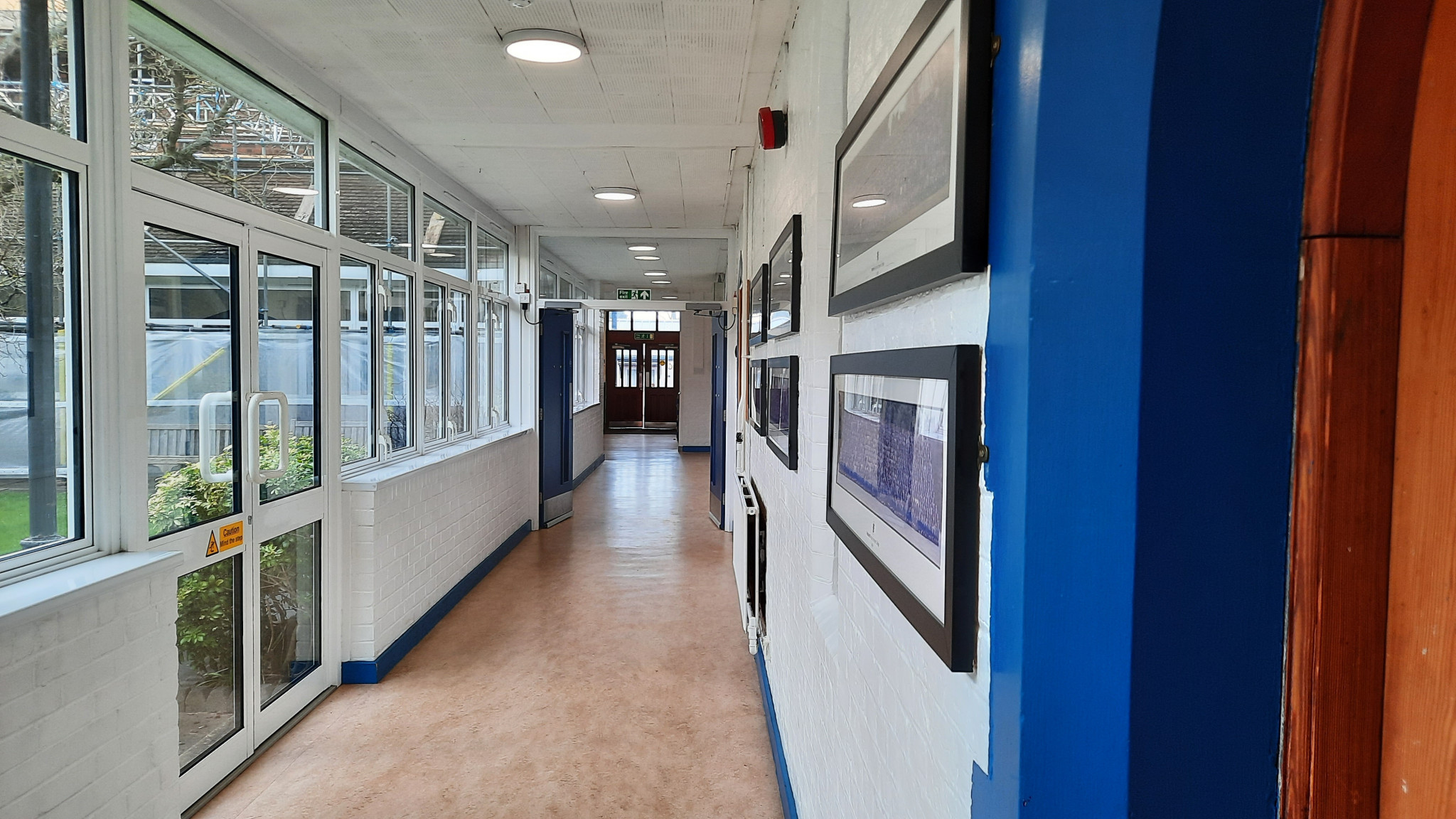 Auf dem Gelände von Hockerill gibt es sechs Gebäude. Es gibt die Mensa und noch 2-3 Häuser für Boarding Schüler (diese wohnen hier wie im Internet). Die zwei anderen Häuser sind größer, und dort werden die restlichen Schüler unterrichtet. Den Boarding Schülern gehören zwei Katzen, die immer auf dem Schulhof umher laufen. Außerdem gibt es hinter den Schulgebäuden noch einen ziemlich großen Sportplatz, wo drauf man Fußball Hockey oder auch Rugby spielen kann. Hinter dem Sportplatz ist noch eine etwas kleinere Sporthalle. Jeder Schüler hat einen eigenen Spind (locker) der auf dem Schulhof steht. Jeder hat außerdem eine Karte, mit denen sie das Tor öffnen müssen, um in die Schule zu gelangen. Die Klassenräume hier sind ziemlich groß und es gibt keine wirklichen Klassen (Im Sinne von Gruppen) sondern nur Kurse, wo man halt was zusammen hat oder halt auch nicht. Die verschiedenen Häuser sind für verschiedene Fächer, es gibt zum Beispiel ein etwas kleineres Haus für Musik. Dort sind halt die Musikräume drin, und alle Instrumente. Die Klassenräume sind sehr kalt und zu dem jeweiligen Fach dekoriert zum Beispiel mit den Zeichnungen und den Projekten der Schüler. Jeder Klassenraum hat außerdem ein Whiteboard und einen Fernseher vorne. die Lehrer können einfach etwas auf den Fernseher übertragen und schreiben dann mit den Whiteboard Stiften auf den Fernseher.