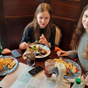 Als ich am 10.03. in England angekommen bin, habe ich erfahren, dass Mothers Day in England ist. Der Tag wird in England auch Mothering Day genannt und wird dort schon seit ca. 500 Jahren gefeiert. Er findet immer ein paar Wochen vor Ostern statt. Der Mothers Day wird in England viel mehr gefeiert als der deutsche Muttertag. Die Mütter bekommen meistens von jedem Kind eine Karte mit liebevollen Worten, dazu noch ein paar Snacks. Danach unternimmt die ganze Familie nachmittags oder abends noch eine Kleinigkeit. Wir sind zusammen in einem typisch britischen Restaurant essen gewesen.