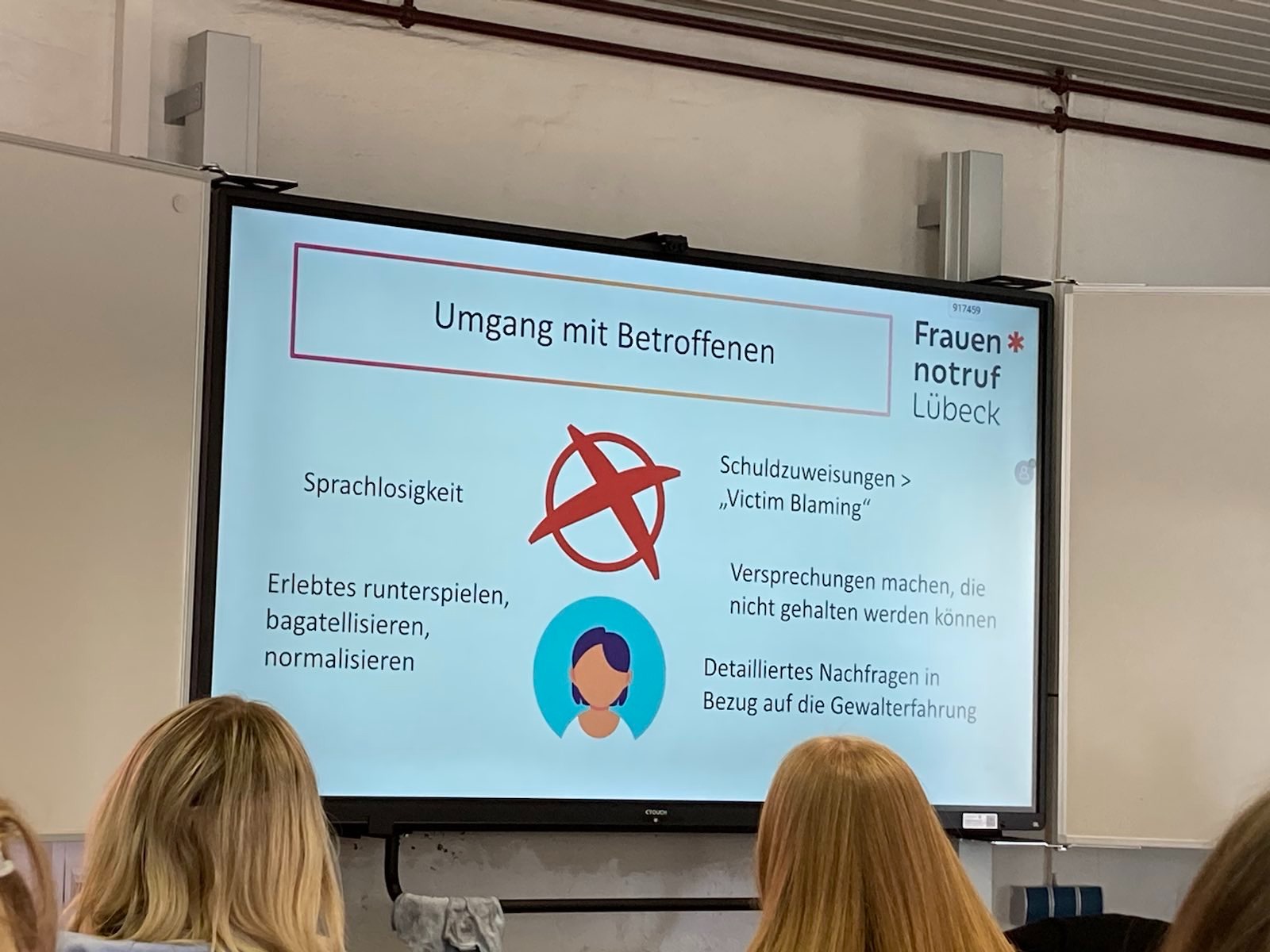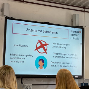 Am 22. April 2024 hat uns Anne Haynatzky vom Frauen*notruf Lübeck im WPU Ehrenamt besucht. Themen der präventiven und aufklärenden Präsentation waren nicht nur sexuelle Belästigung, Femizide und Strafrecht, sondern noch vieles mehr. Auch ihre Beratungsstelle hat sie uns vorgestellt und hat über ihre wichtigsten Dos and Don’ts im Umgang mit Betroffenen erzählt.