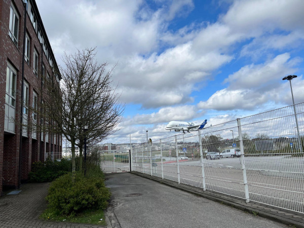Im strömenden Regen sind wir in Lübeck aufgebrochen und wurden von der strahlenden Sonne in Hamburg begrüßt. Noch ein wenig müde von der langen Fahrt standen wir nun vor den Toren des Airbusgeländes, als wir eine Beluga XL landen sahen. Sofort wurden die Augen größer und ein aufgeregtes Murmeln ging durch unsere Gruppe. Denn wer sieht schonmal ein 63 m langes Flugzeug mit einer Höhe von 19m und seinen lustig bedruckten Augen und einem Mund, welcher einen beinahe anlächelt? In der Hoffnung, eine weitere Landung oder einen Start zu sehen, waren viele gar nicht mehr wegzukriegen und warteten geduldig mit strahlenden Augen auf das nächste Flugzeug. Doch leider konnten wir kein weiteres entdecken, sodass die Tour endlich beginnen konnte.