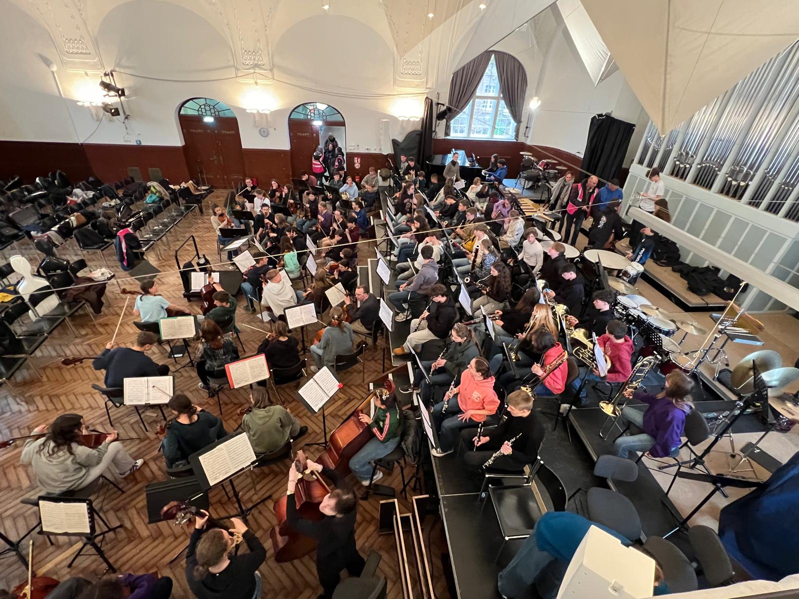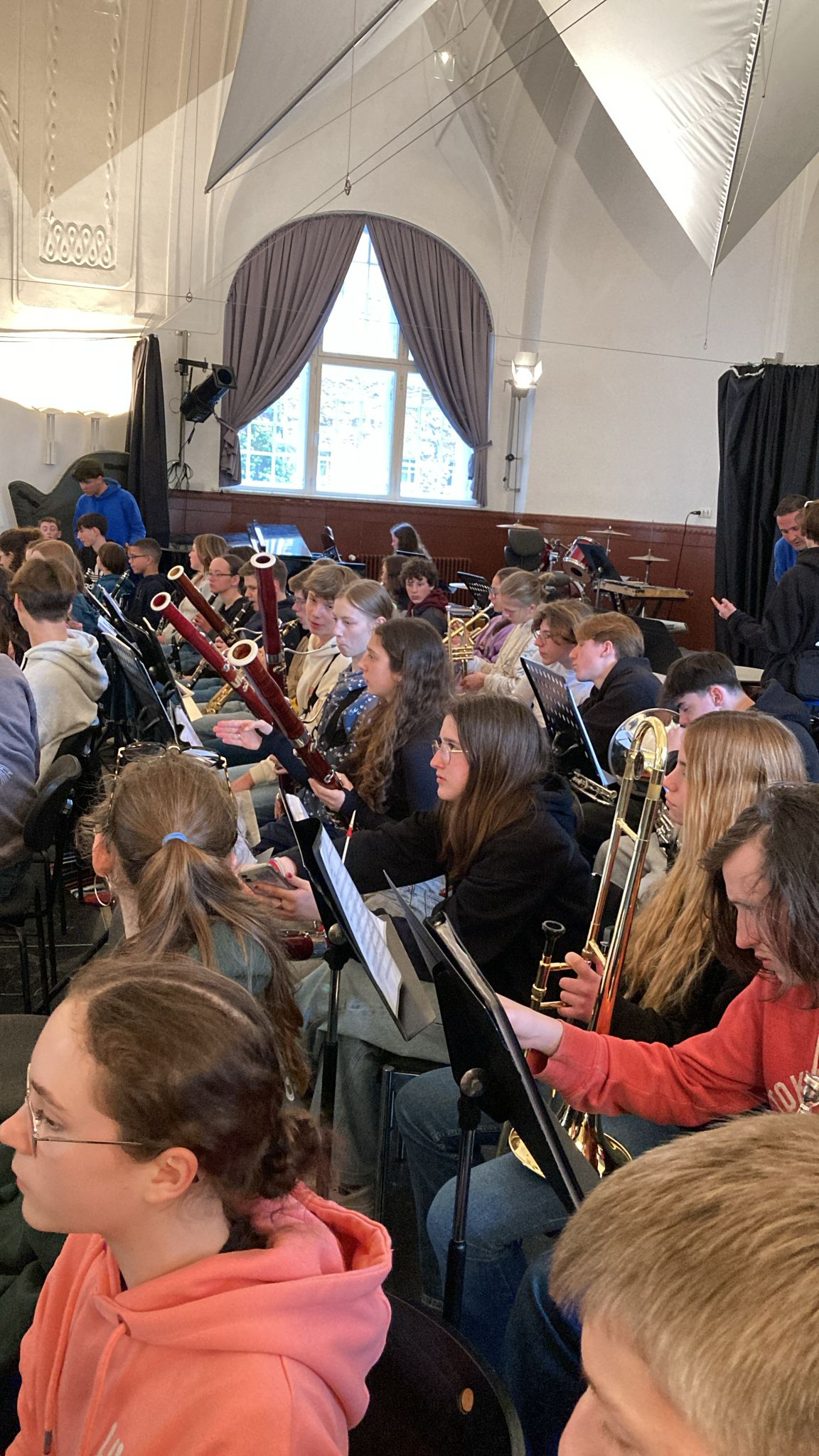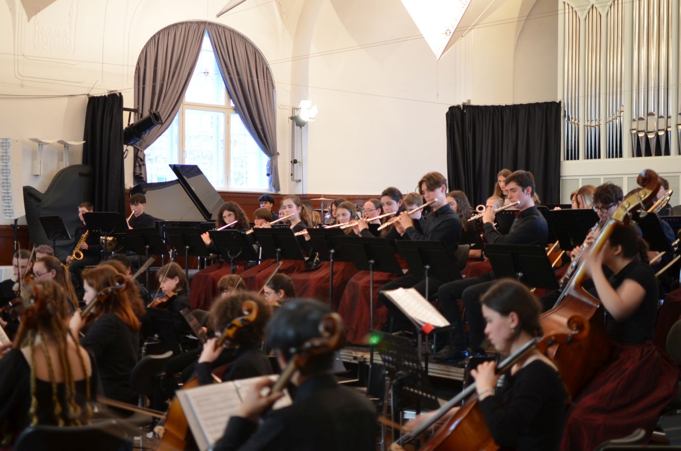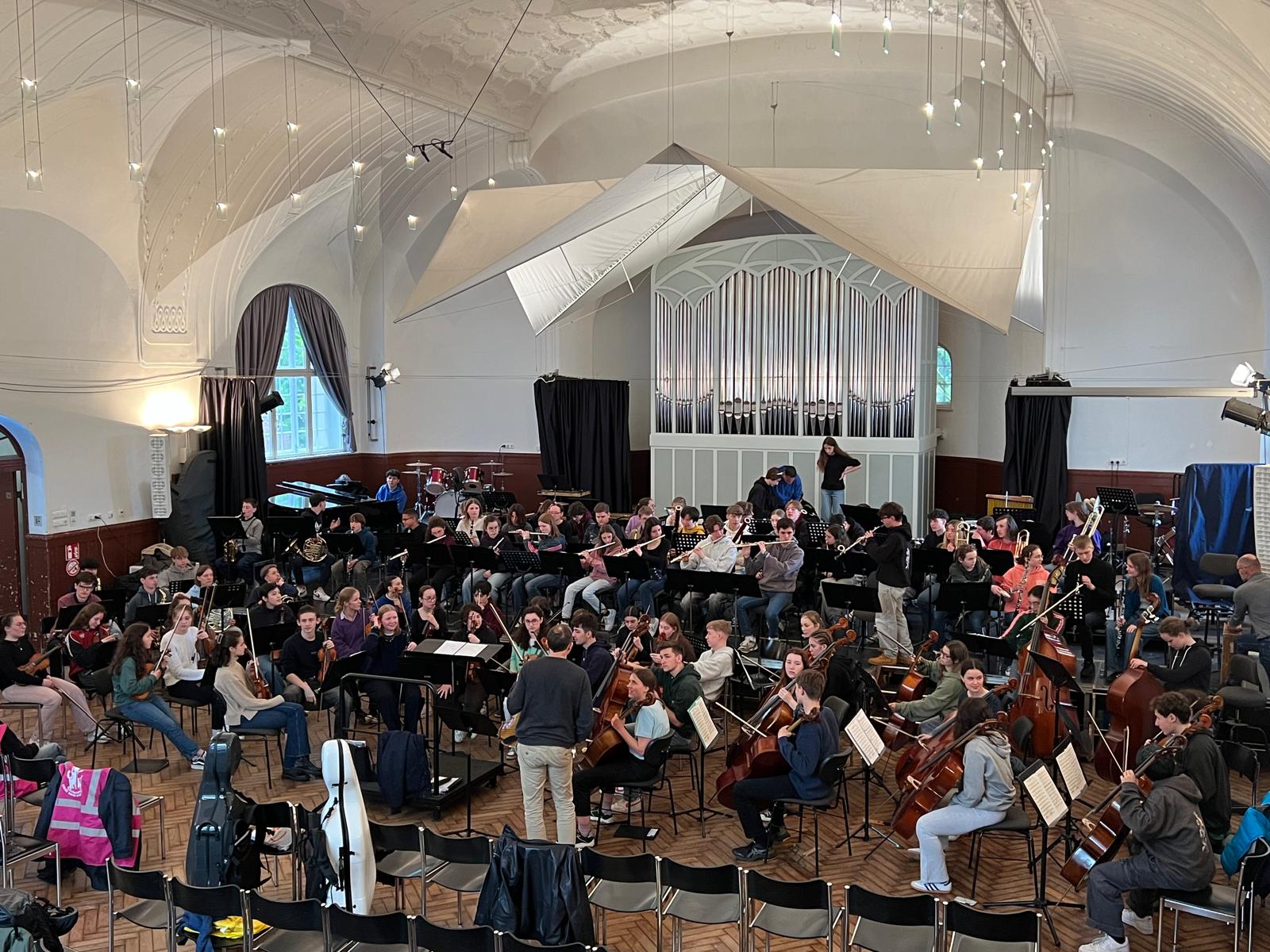 Am Freitag nach den Osterferien führte die Deutschlandtournee des Orchèstre du Lycée David d’Angers (OLDA) die sechzig jungen Musiker:innen nach Lübeck. Nach einem Tag mit vielen Unternehmungen und wenigen Proben gaben sie in unserer Aula ein Konzert – mit Hits aus Ballett, Oper und Kino.