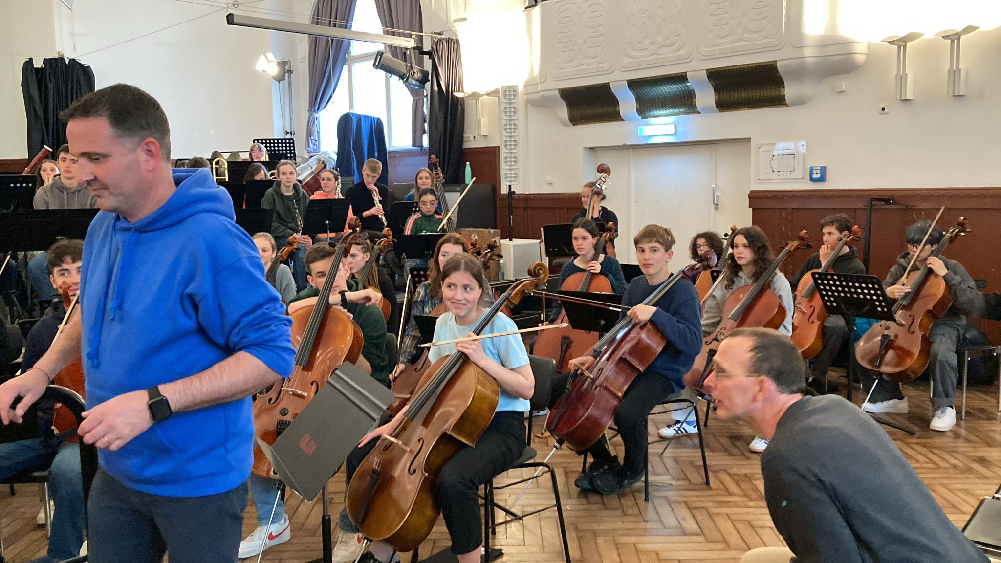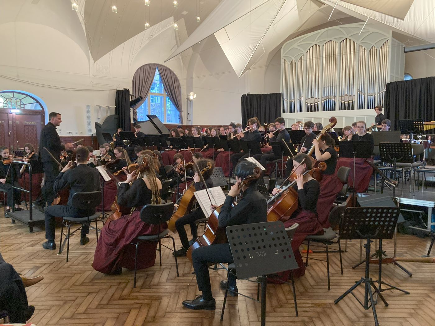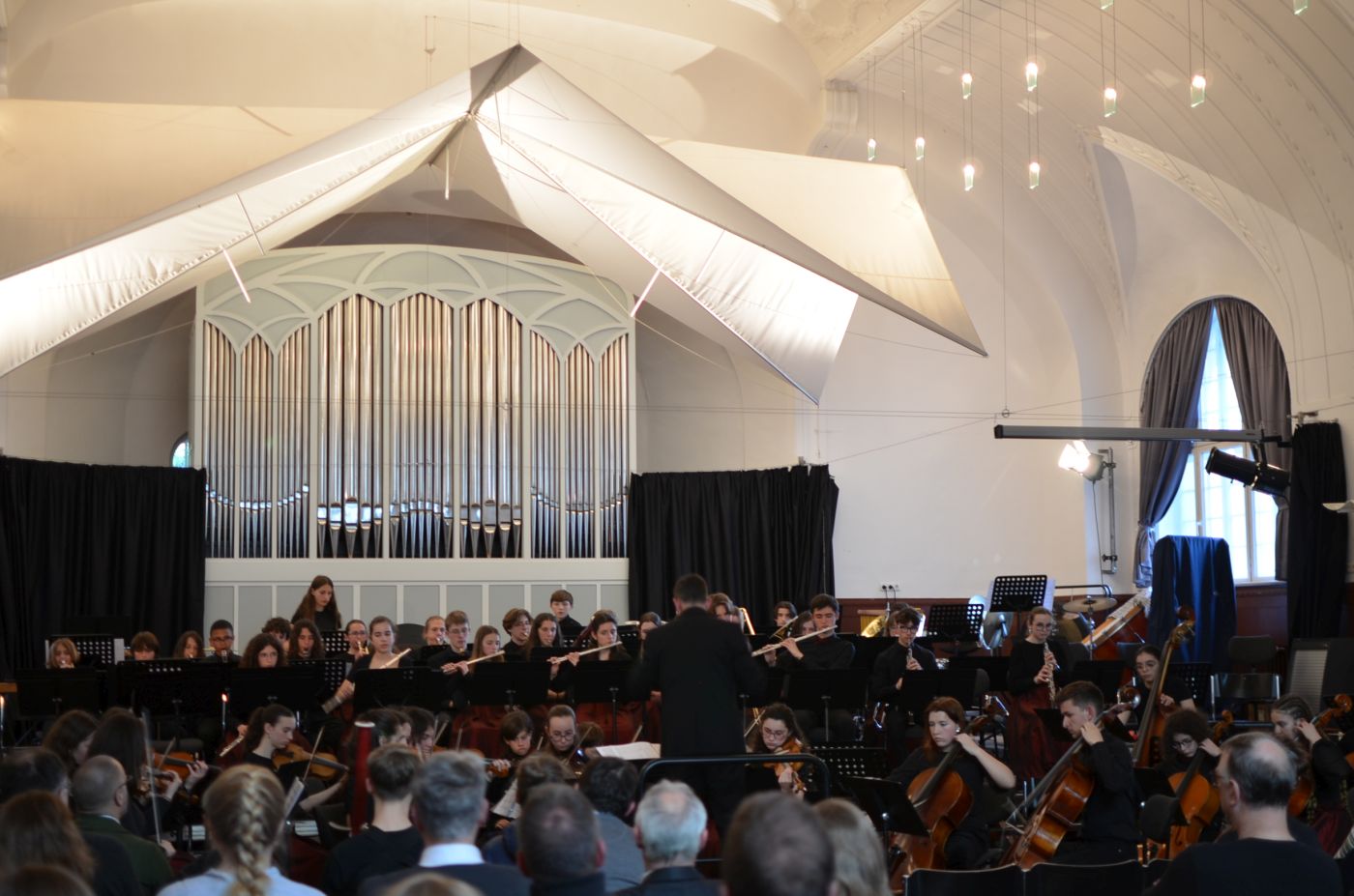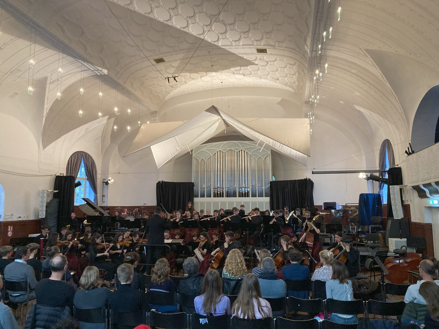 Am Freitag nach den Osterferien führte die Deutschlandtournee des Orchèstre du Lycée David d’Angers (OLDA) die sechzig jungen Musiker:innen nach Lübeck. Nach einem Tag mit vielen Unternehmungen und wenigen Proben gaben sie in unserer Aula ein Konzert – mit Hits aus Ballett, Oper und Kino.