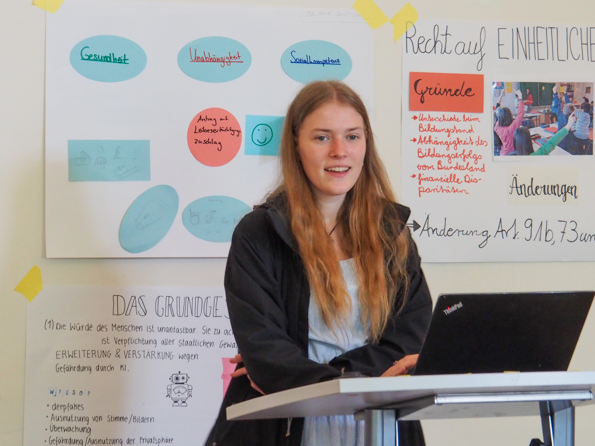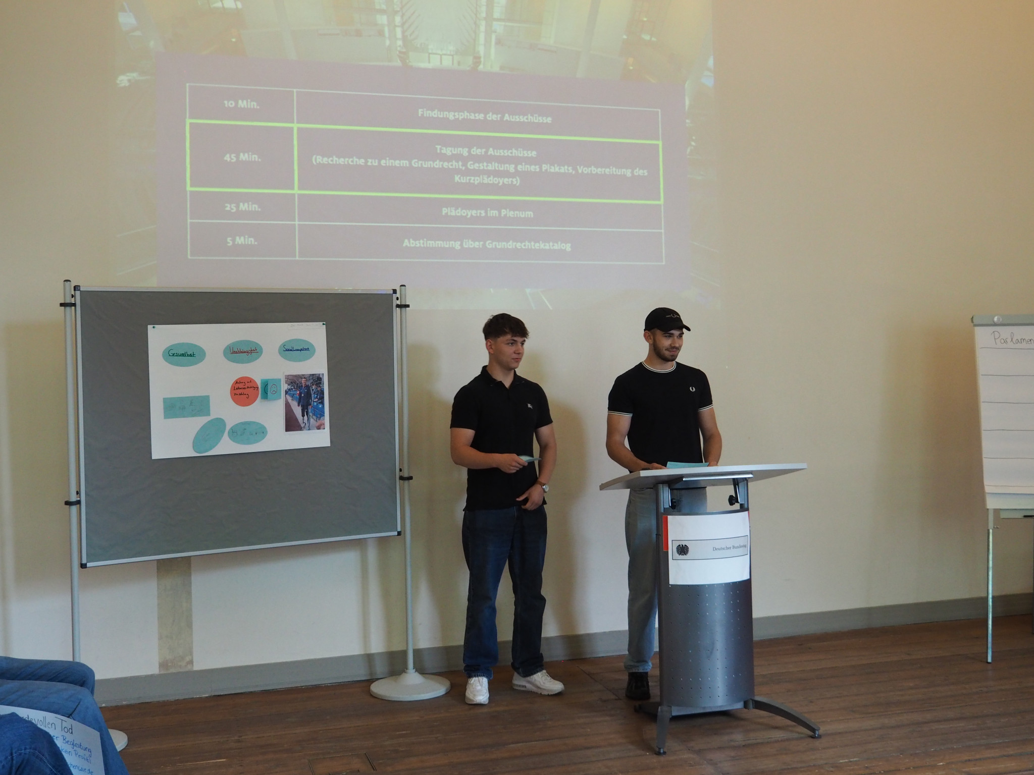 Nach den Vorstellungen am Rednerpult ging es in die Abstimmungen in unserem Parlamentarischen Rat 2.0 und auf Platz eins landete die Gruppe, die für Liberté-Egalité-Fraternité warb. Darauf folgten die Glaubens- und Gewissensfreiheit sowie die nachhaltige Entwicklung. Die Plätze vier und fünf teilten sich die Gruppen für das Recht auf Sterbehilfe und faire Lieferketten.