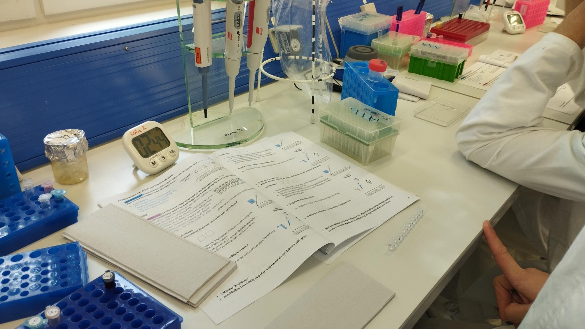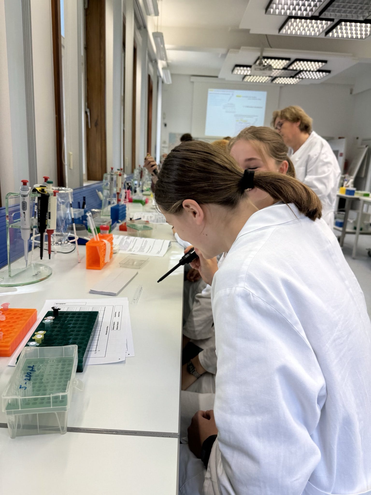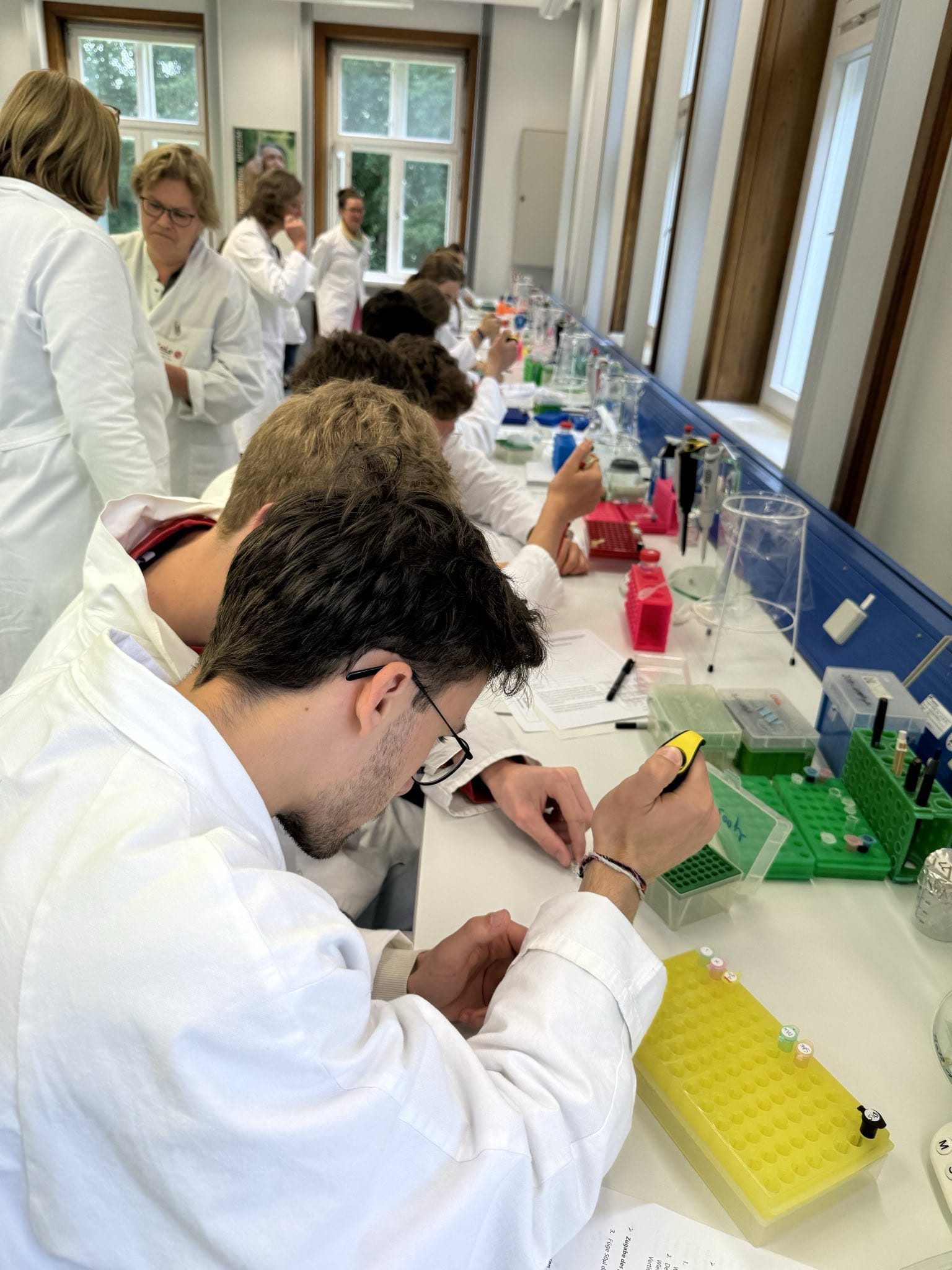 Um genauer zu erfahren wie dieses Testverfahren funktioniert, sind wir die Q1b als Bioprofil gemeinsam mit Frau Walsleben und Herrn Fromme in das Schülerlabor Lola gefahren.