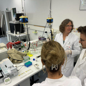 Freundlich begrüßten uns die Mitarbeiterinnen und mit einem weißen Kittel machten wir uns auf in das Turmlabor. Mit einer kurzen Einstiegspräsentation informierten uns die Laborantinnen über das HI-Virus und die Funktion des ELIZA-Tests, wodurch wir lernten, dass die Antikörper des Virus nachgewiesen werden, indem die Menge der Antigene gemessen wird.