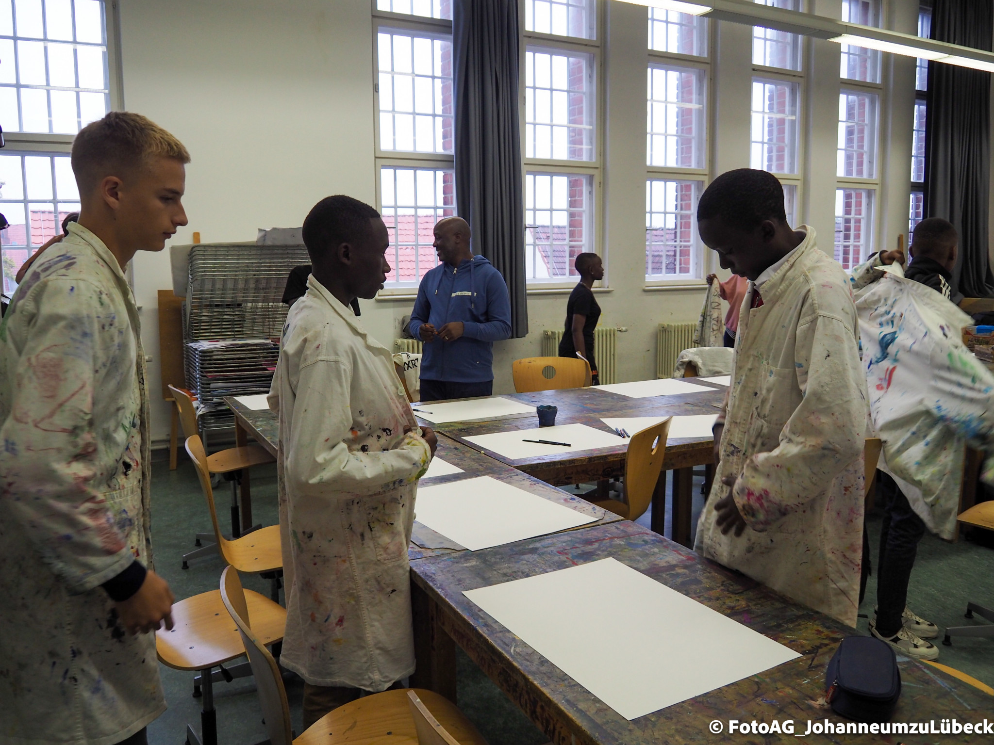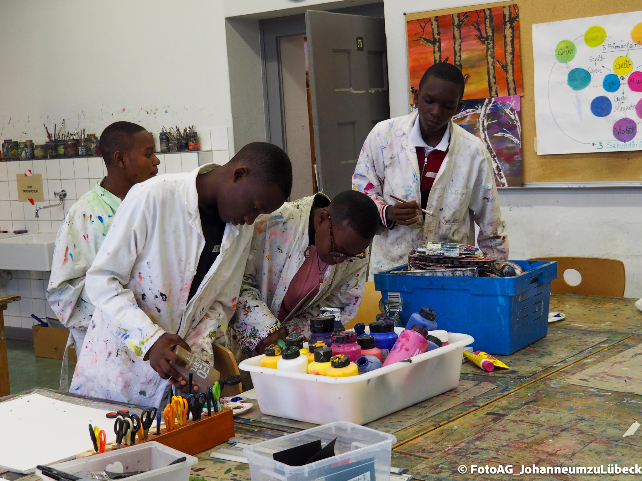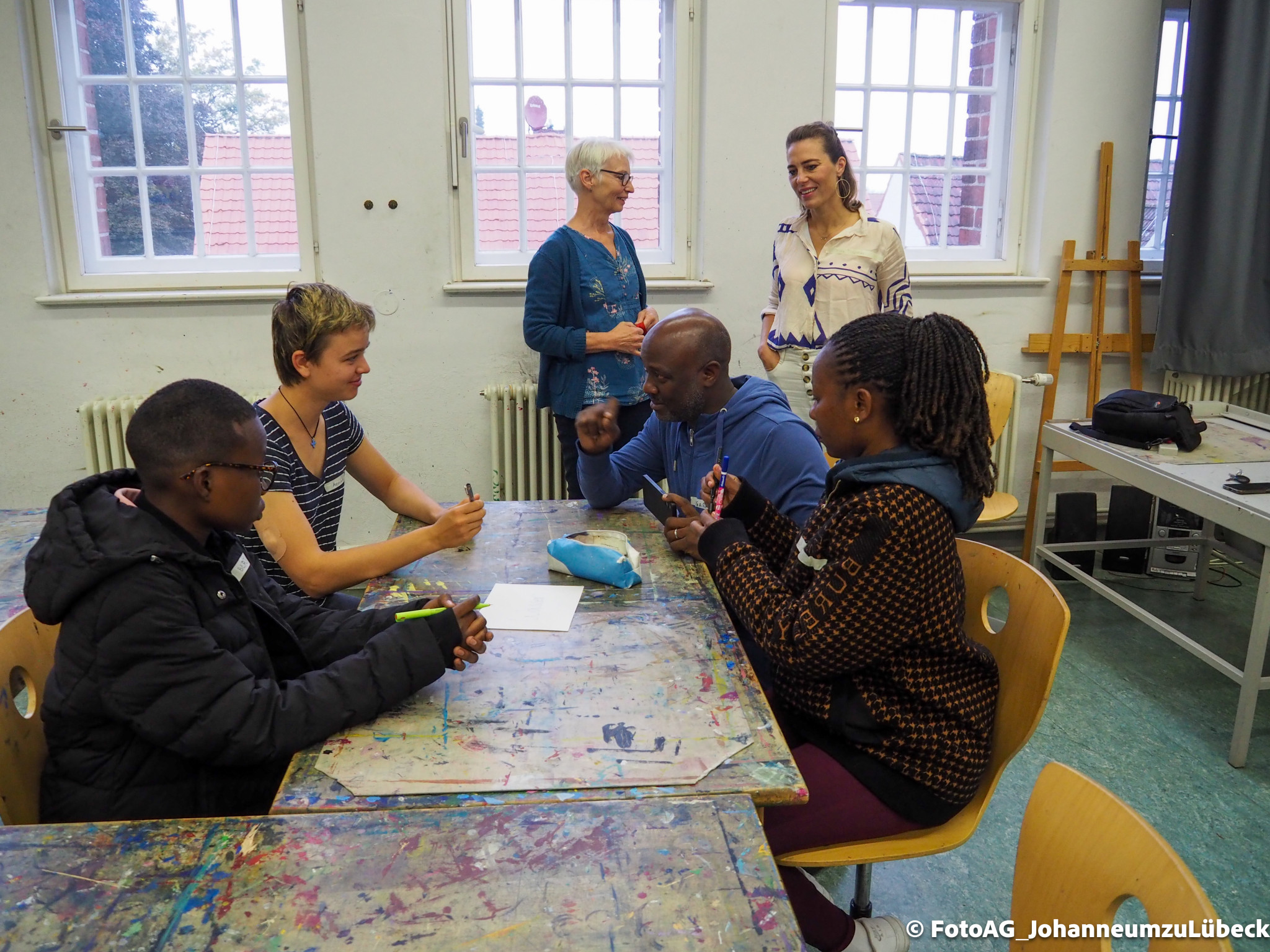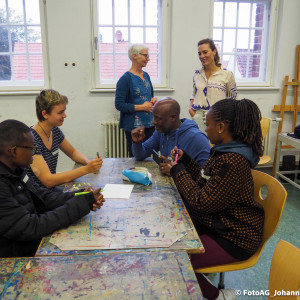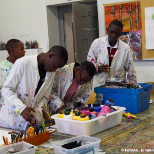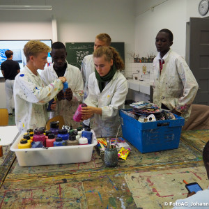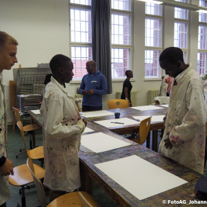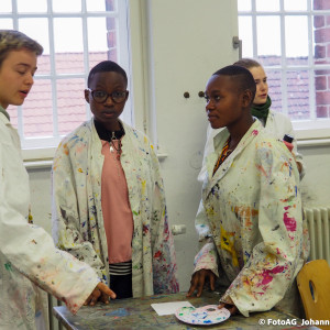 Angefangen mit einer Stadtführung, bei der besonders die großen Kirchen für Begeisterung sorgten. Auch der Strandbesuch und ein Kunstprojekt waren Höhepunkte bisher. Dabei haben wir unser gemeinsames Projekt „Wasser“ weitergeführt. Nachdem wir in Mwanza das Trinkwasser erforscht und einen Fluss gereinigt hatten, konnten wir uns hier in Deutschland auf eine künstlerische Weise dem Thema nähern. Es entstanden verschiedene Bilder, Assoziationen und gute Gespräche.