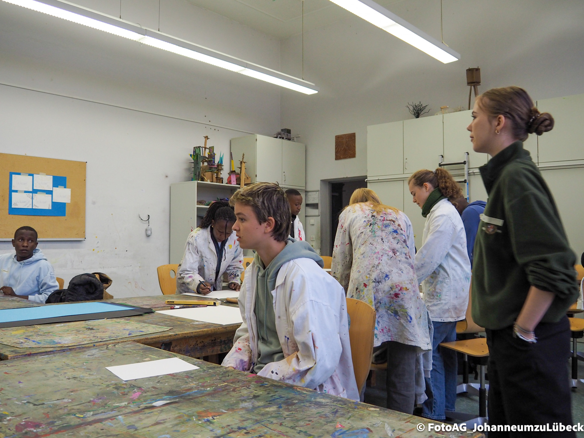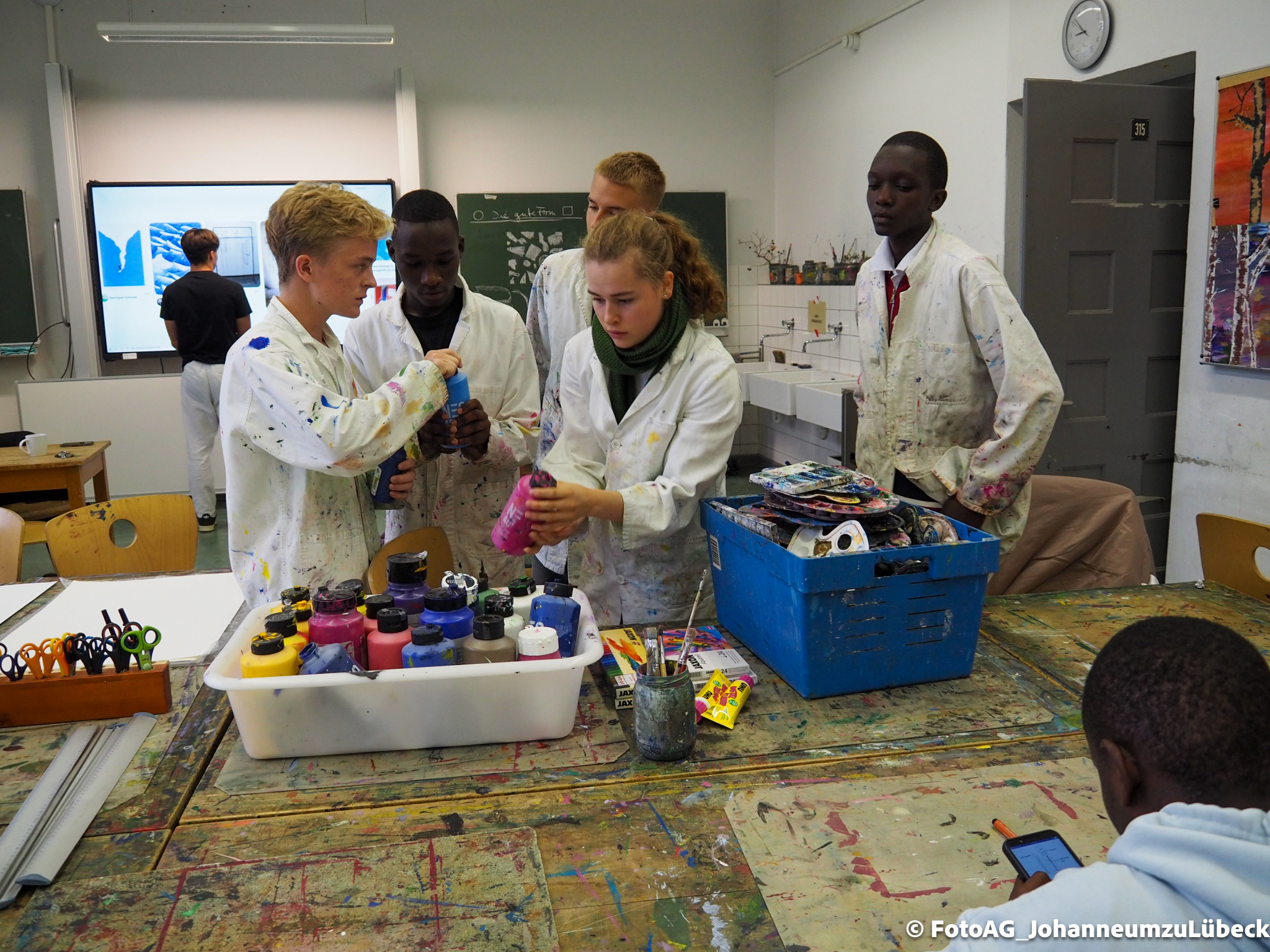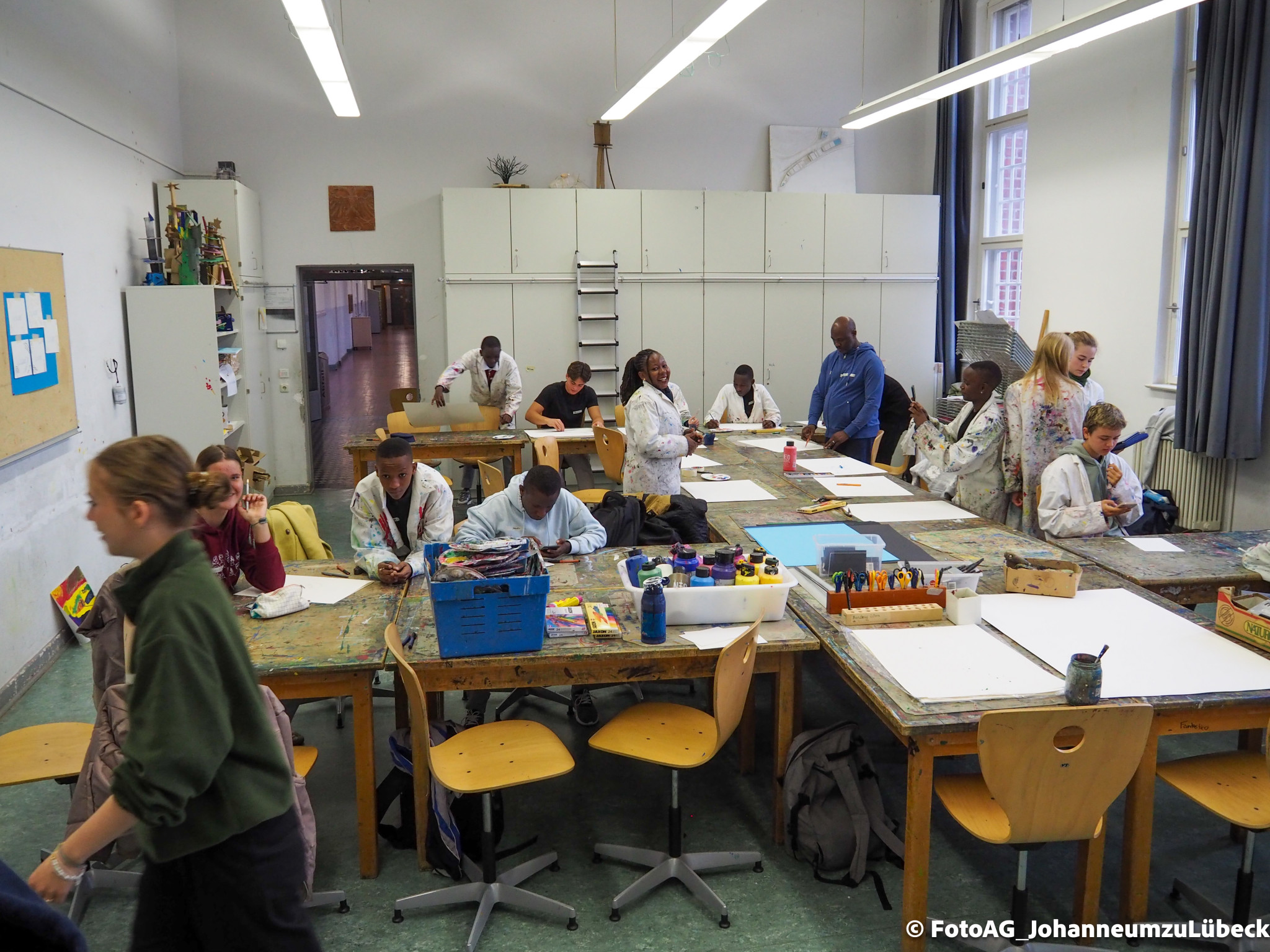 Angefangen mit einer Stadtführung, bei der besonders die großen Kirchen für Begeisterung sorgten. Auch der Strandbesuch und ein Kunstprojekt waren Höhepunkte bisher. Dabei haben wir unser gemeinsames Projekt „Wasser“ weitergeführt. Nachdem wir in Mwanza das Trinkwasser erforscht und einen Fluss gereinigt hatten, konnten wir uns hier in Deutschland auf eine künstlerische Weise dem Thema nähern. Es entstanden verschiedene Bilder, Assoziationen und gute Gespräche.
