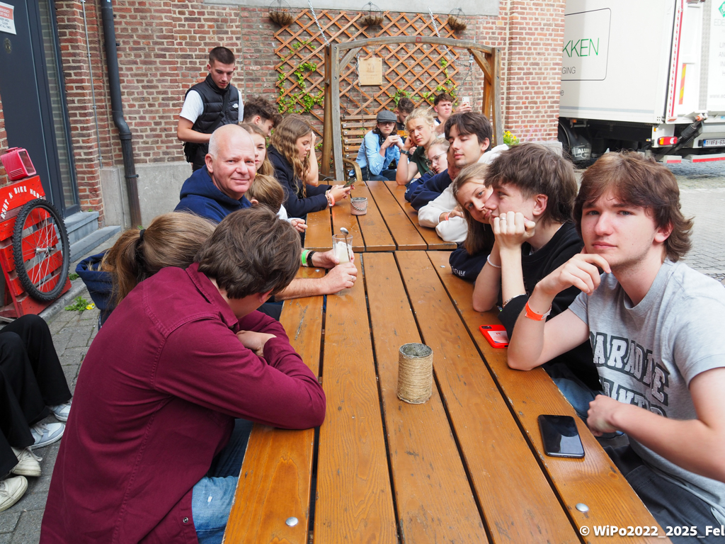 Wir hatten Glück, denn genau zur Zeit unserer Studienfahrt fand an einem Abend eine bekannte Tradition auf dem großen Marktplatz statt: der Ommegang. Was das ist? Keiner von uns hatte zuvor von dieser Tradition gehört, aber als wir Pferde und Flaggenwerfer, die ihre Choreografien übten, bereits einen Tag vorher auf dem Großen Markt sahen, wurden wir neugierig. Bei dem Ommegang handelt es sich um eine historische Nachstellung, bei der Musiker, Tänzer, Fahnenwerfer, Feuerschlucker und viele mehr in Kostümen auftreten. Zudem wurde der ganze Platz am Abend mit bunten Lichtern angestrahlt und die Straßen waren voll von Zuschauern.