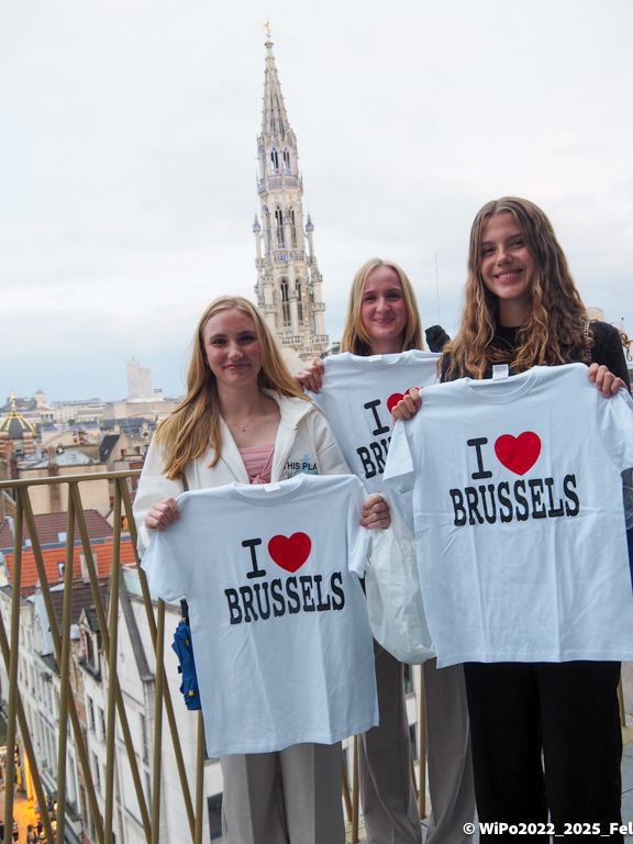 Um Brüssel auch noch von oben sehen zu können, suchten und fanden wir an unserem letzten Abend noch eine Aussichtsplattform auf einem Gebäude, wo wir uns bei der langsam untergehenden Sonne von der Stadt verabschieden konnten.