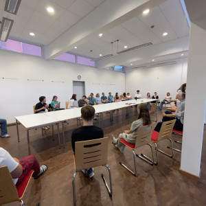 Mittwochs ging es dann ins Schwimmbad. Der Besuch war schön und ca. fünf Stunden lang sind wir gerutscht, geschwommen, ins Becken gesprungen oder haben einfach nur auf der Liege gelegen und entspannt. Danach waren wir alle mehr oder weniger platt und sind in die Herberge gefahren. Die Abende haben wir immer entweder mit Werwolf spielen im Gemeinschaftsraum oder Volleyball spielen im Hinterhof verbracht.