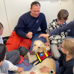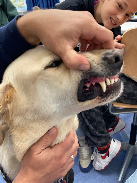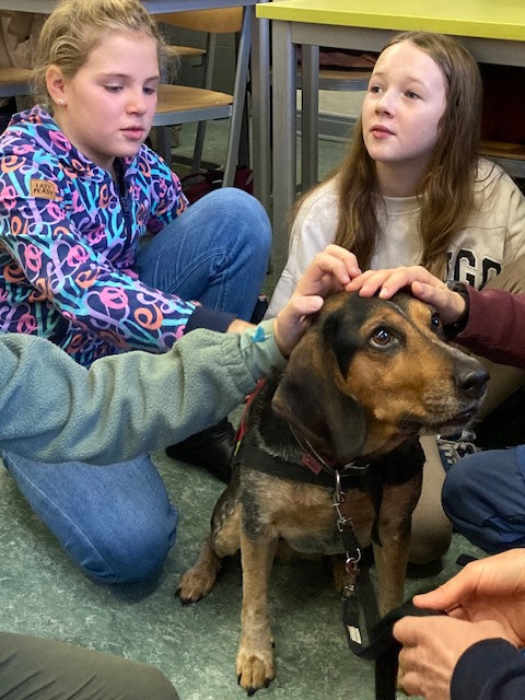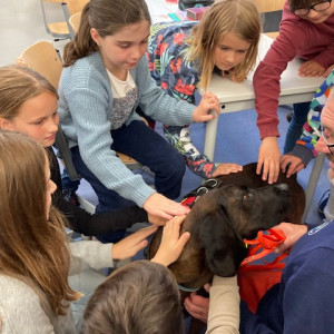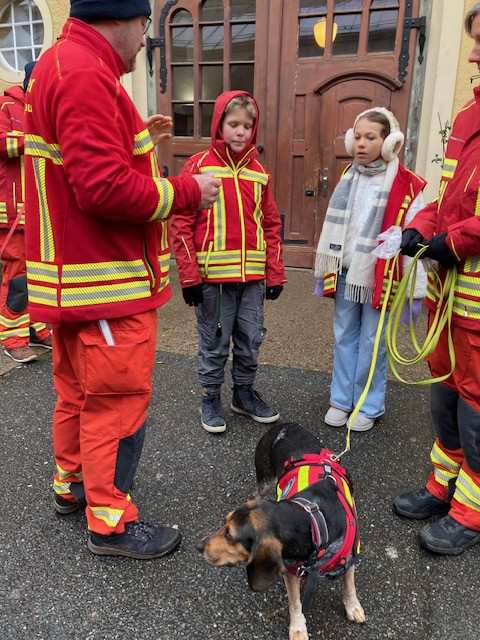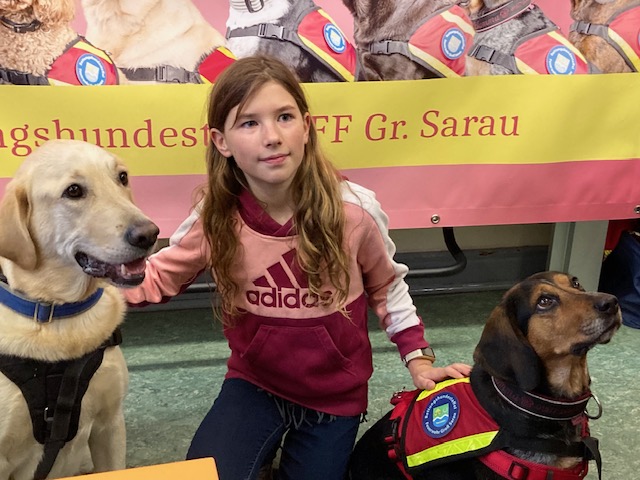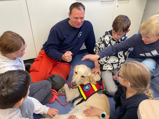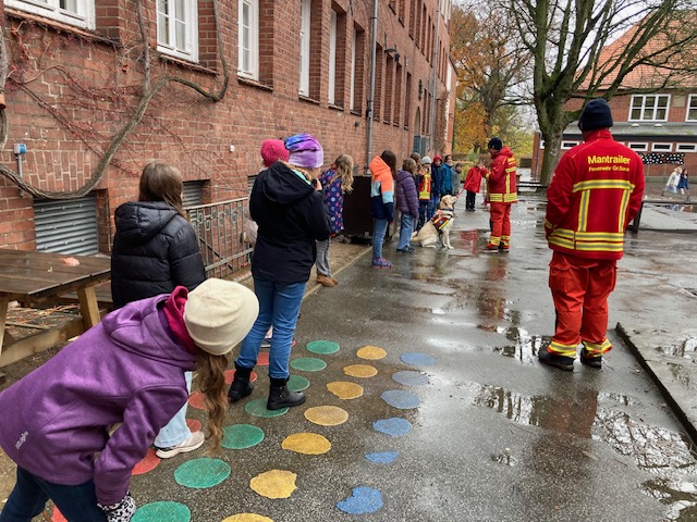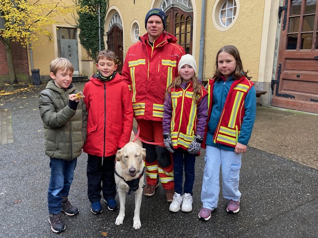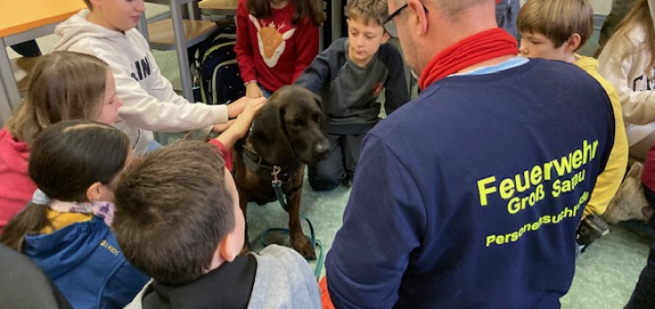 Im letzten Monat hatten die 5a und die 5b eine Hundestaffel zu Besuch. Die Hundestaffel ist ein freiwilliges Unternehmen der Feuerwehr Groß Sarau mit ihren Hunden, ein gut eingespieltes Team zwischen Mensch und Tier, das jahrelang das Man-Trailing geübt hat. Los ging es im Bio-Raum. Hier durften wir zunächst unsere Fragen stellen, die wir vorher im Biologie-Unterricht bei Frau Junge erarbeitet hatten. Da unser Thema gerade Haus- und Nutztiere sind, haben wir uns in den letzten Wochen intensiv mit dem Hund beschäftigt. Es war eine tolle Sache, dass wir so viel über den Tagesablauf und den Einsatz der Hunde erfahren konnten.