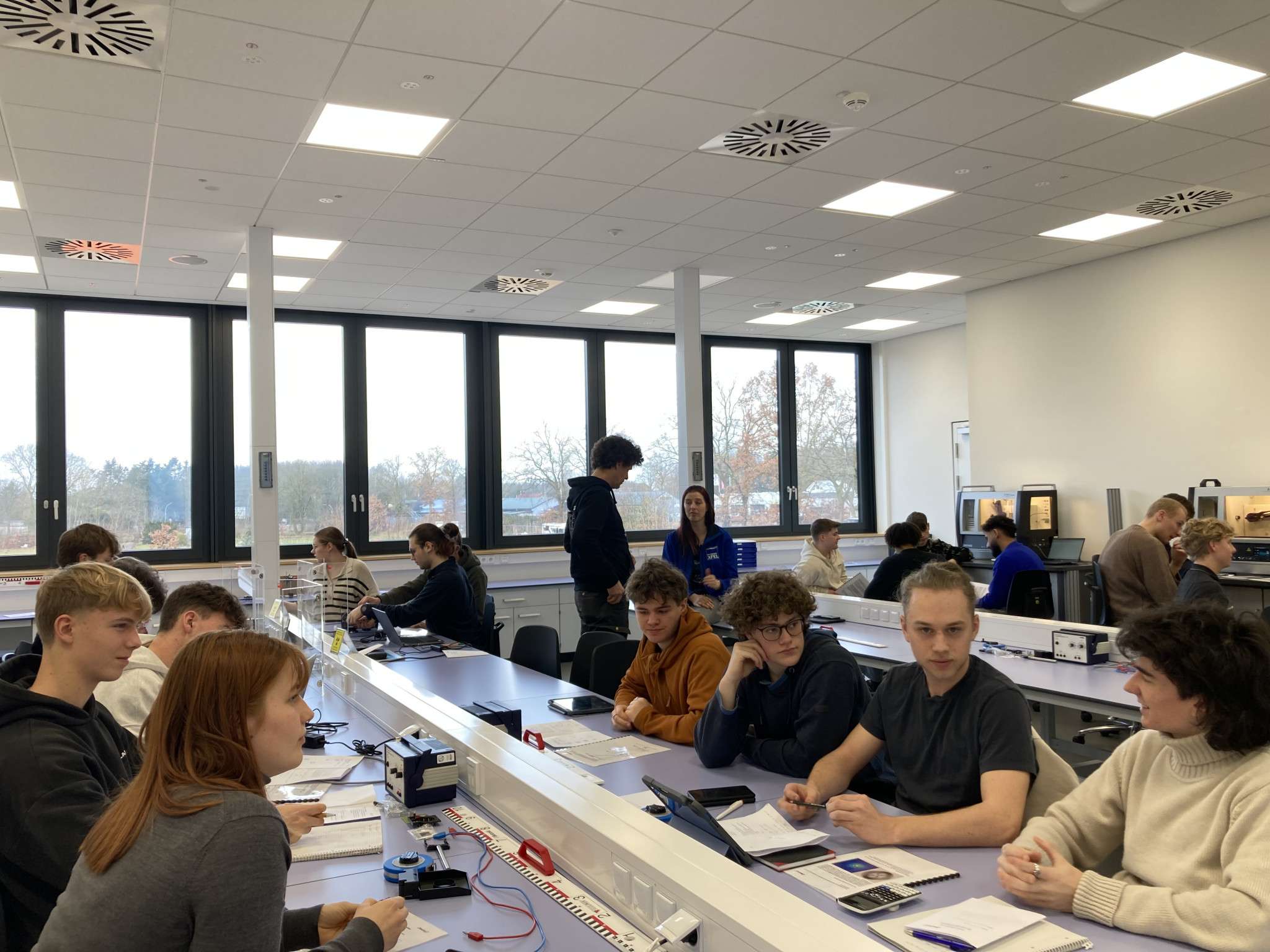 Gemeinsam mit einem Physikkurs von der GGS St. Jürgen konnte das Physikprofil im diesjährigen Abiturjahrgang am 6. Februar Grundlagenforschung auf höchstem Niveau live erleben. Die Forschungseinrichtung XFEL in Schenefeld nahe Hamburg ist die weltweit modernste Anlage, an der mit ultrakurzen (Röntgen-)Laserimpulsen sogar Videos von molekularen Prozessen möglich sind. Die Anlange ist erst seit 2017 in Betrieb und beschleunigt in kilometerlangen geraden Tunneln Elektronen kurz unter Lichtgeschwindigkeit.