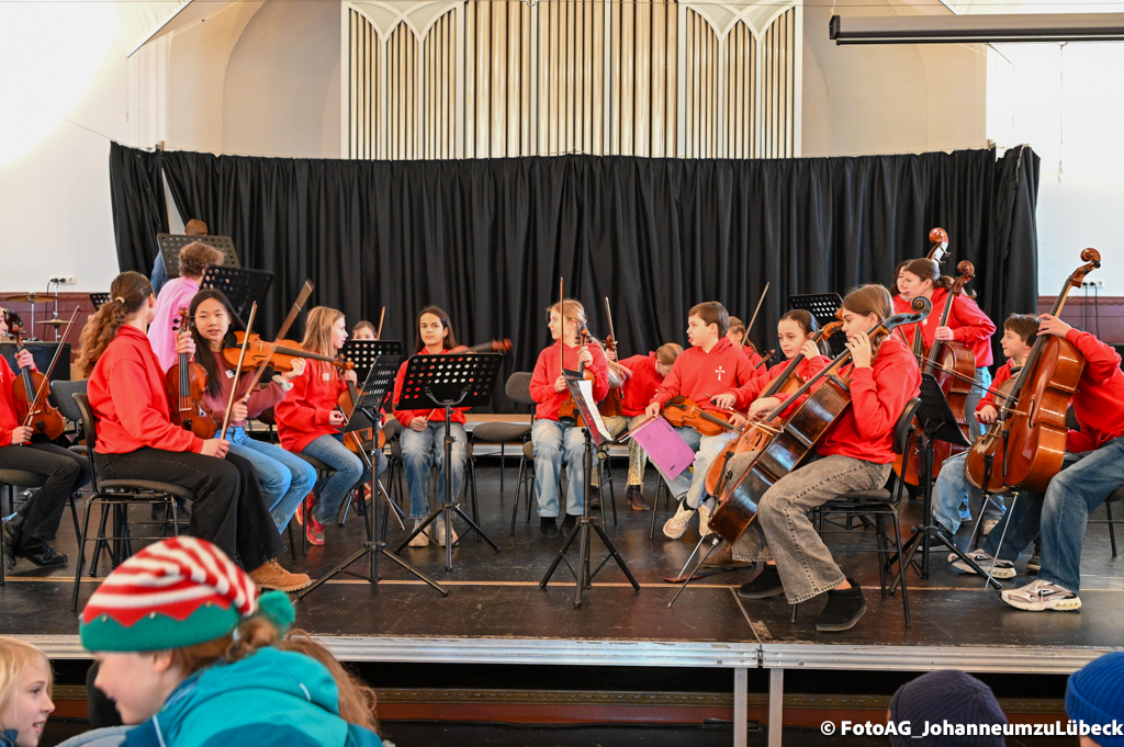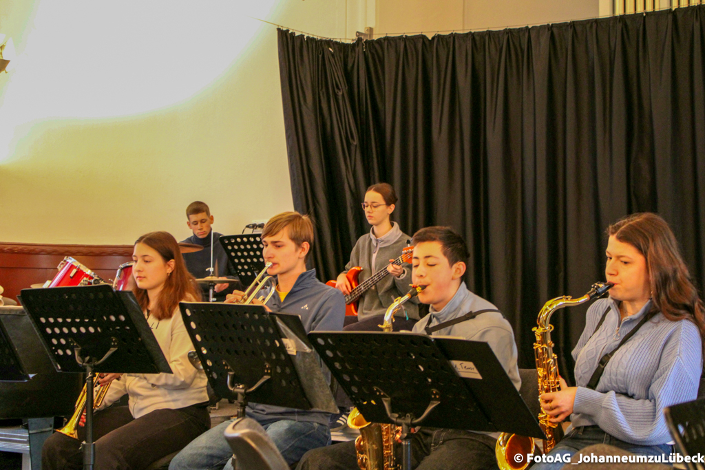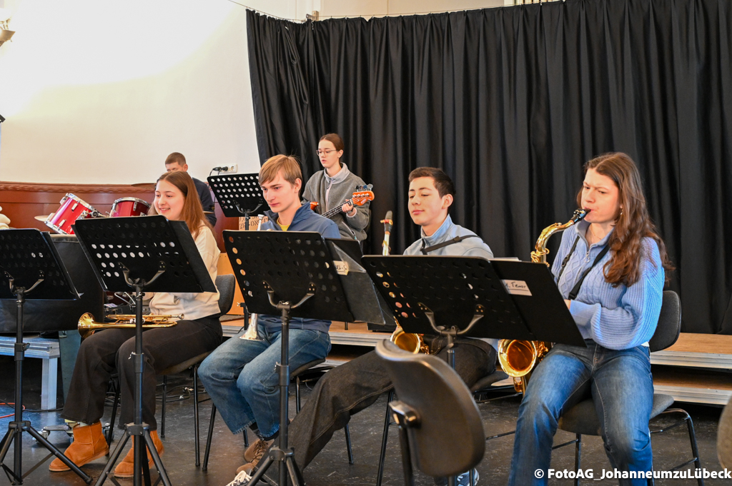 Natürlich wurde auch die Musik des Johanneums präsentiert. Der Unter- und Mittelstufenchor und das JuniOrchester sind in der Aula und der Turnhalle aufgetreten und in den Musikräumen konnten die Kinder selber musizieren. Ein kleines Jazz-Ensemble sorgte professionell für gute Stimmung!