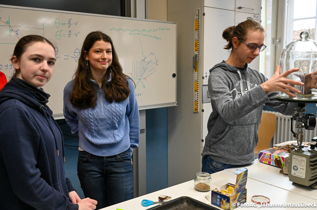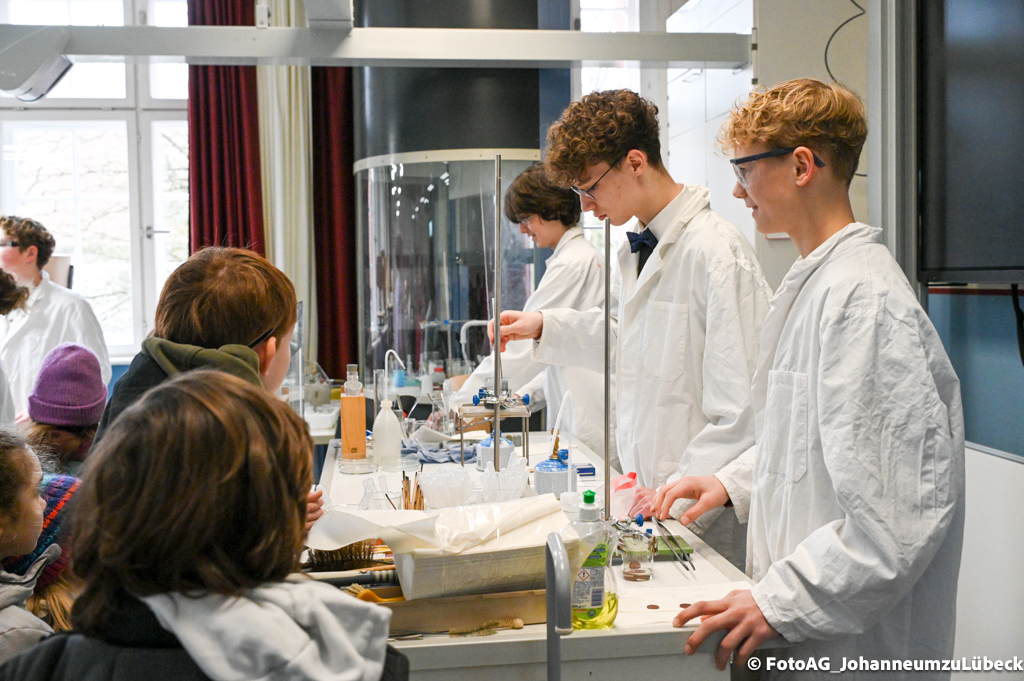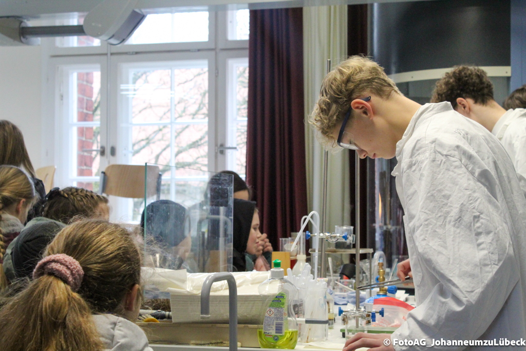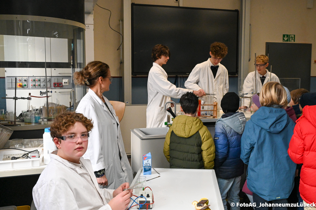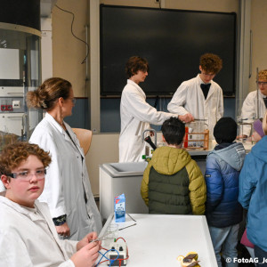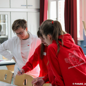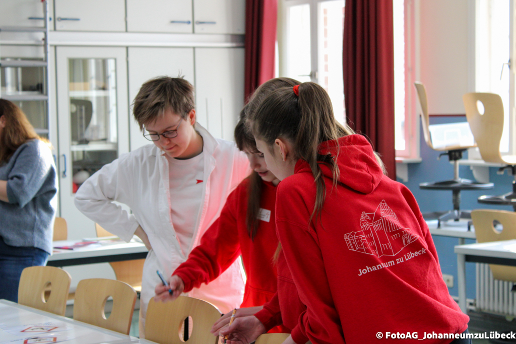 Über 300 Schüler:innen und viele Lehrer:innen waren dort, haben Kinder und Eltern im Johanneum herum geführt, unsere Räume vorgestellt und dafür gesorgt, dass sich alle wohlfühlen.Es gab spannende Experimente in der Biologie, Physik und Chemie, und in den Kunsträumen konnten Buttons bemalt werden.