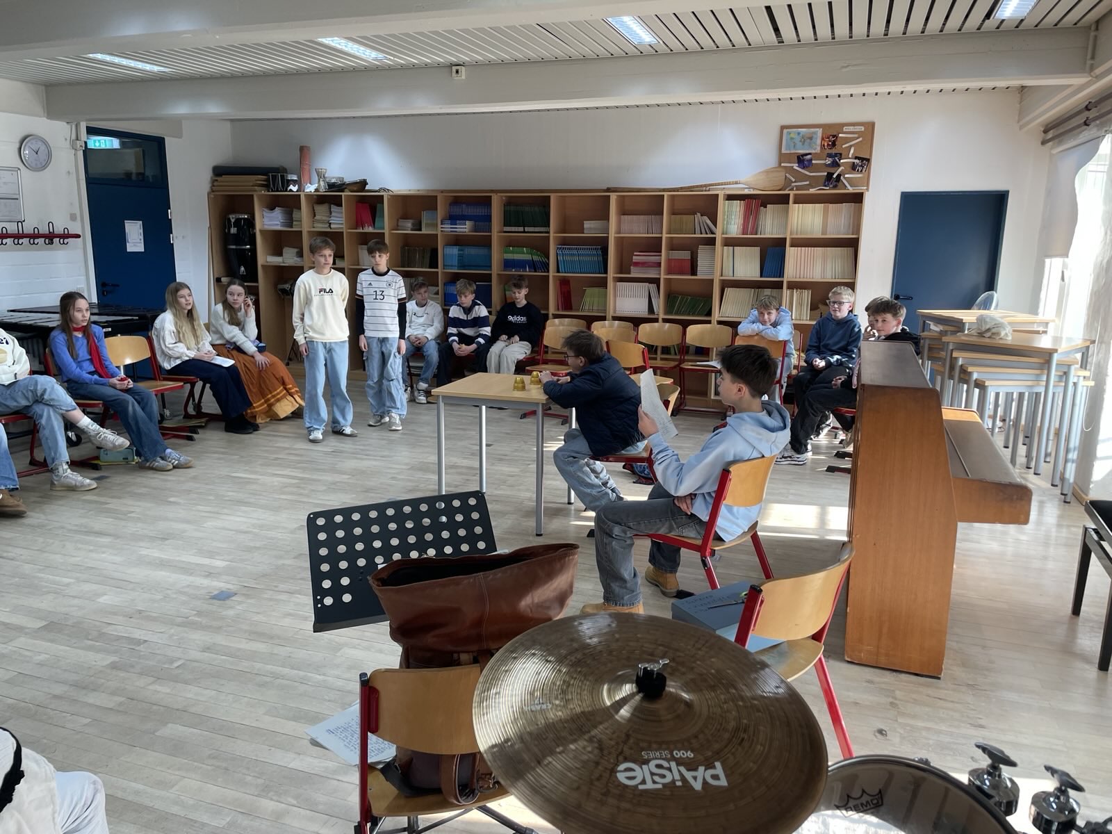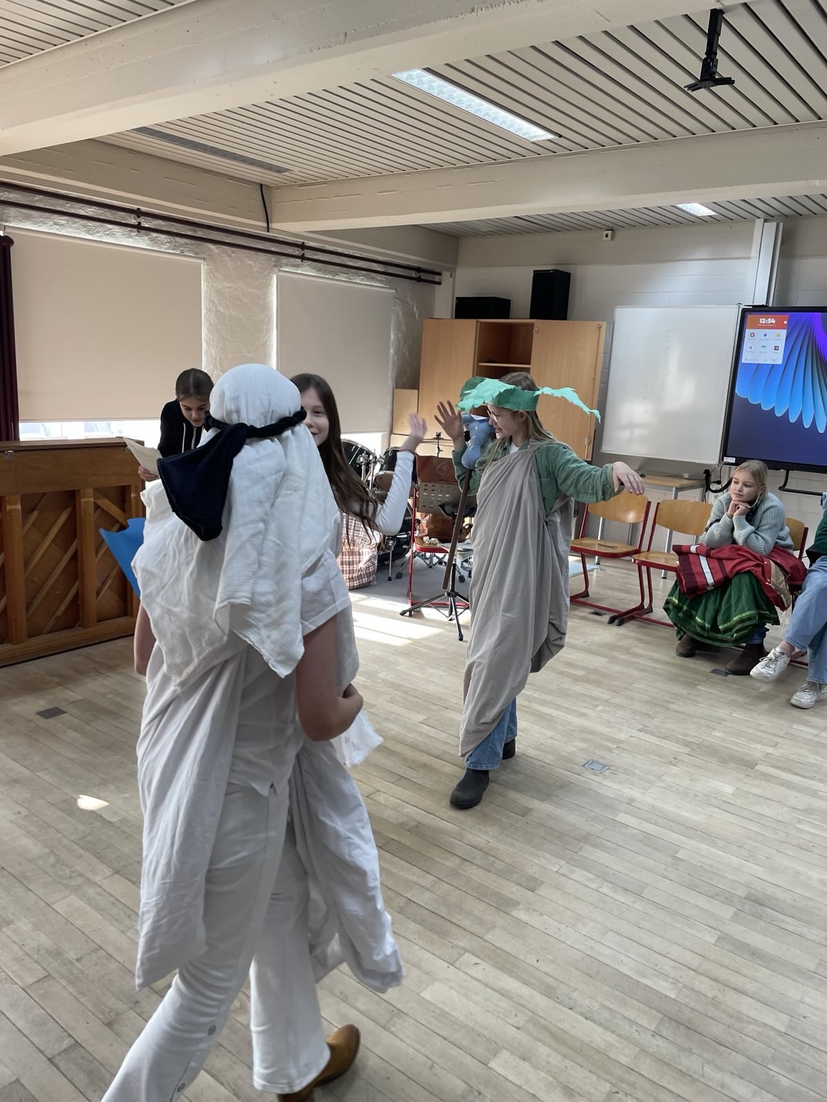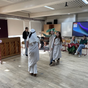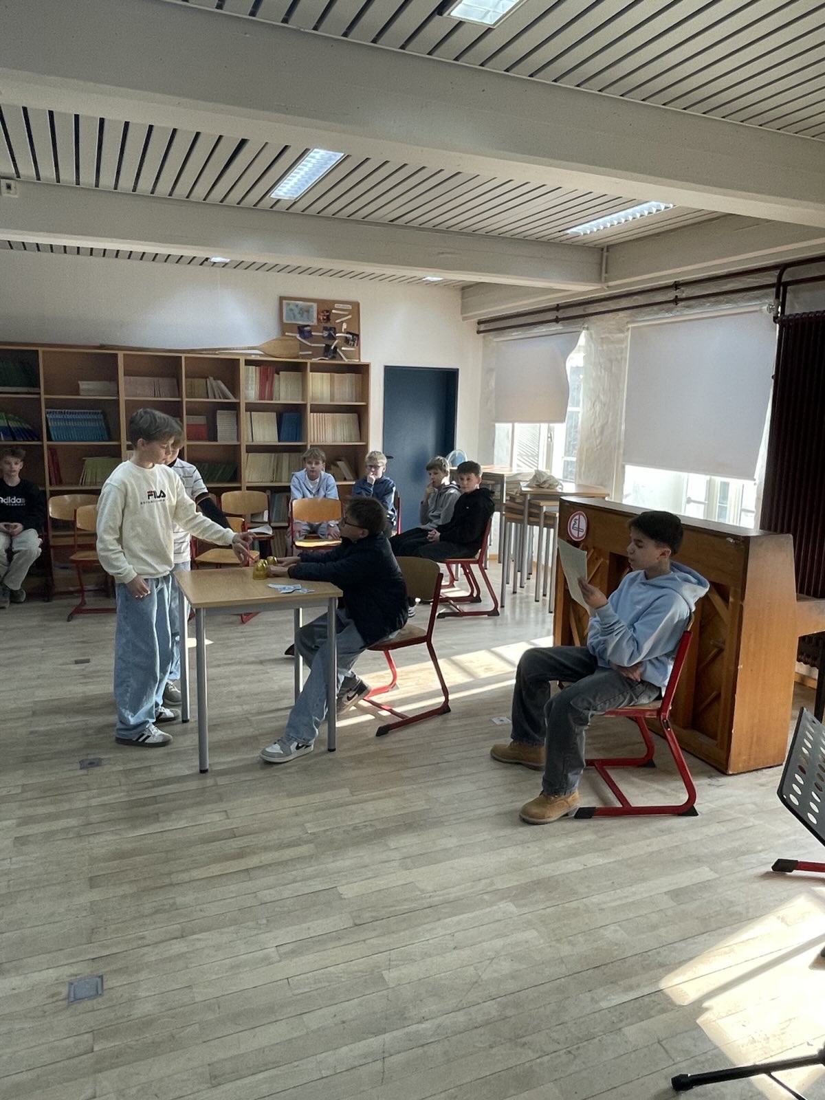 Das haben wir, die 6c, im Musikunterricht ausprobiert. Doch mit Musik Geschichten zu erzählen ist gar nicht so einfach. Trotzdem haben wir uns der Herausforderung gestellt, zu dem Musikstück „Party Preparations“ aus dem Film „Chocolat“ eine Szene zu entwickeln und anschließend der Klasse zu präsentieren. Wir alle haben damit angefangen uns das Lied anzuhören, doch von da an haben sich die Stücke sehr verschieden entwickelt, denn jeder hat sich unterschiedliche Geschichten zu der Musik vorgestellt, da niemand das Stück kannte. All diese Ideen zusammenzubringen, war oft nicht leicht, doch am Ende sind tolle Szenen entstanden. Von Liebesgeschichten bis hin zu Kriminalfällen war alles dabei. Da gab es zum Beipiel das Stück: „Durstig durch die Wüste“