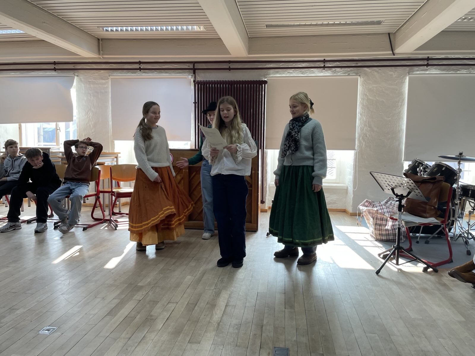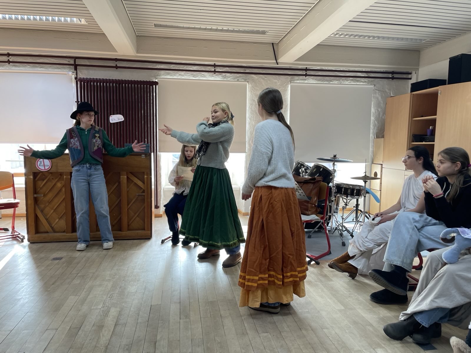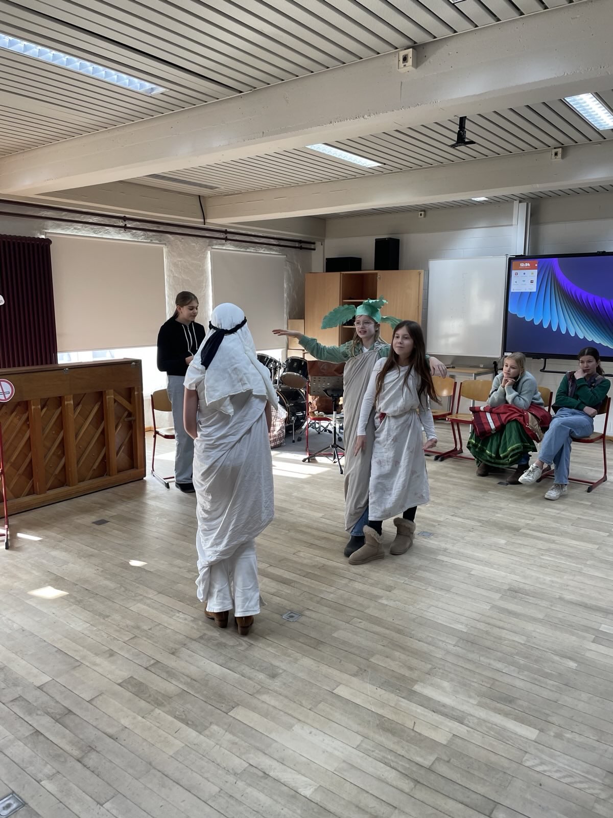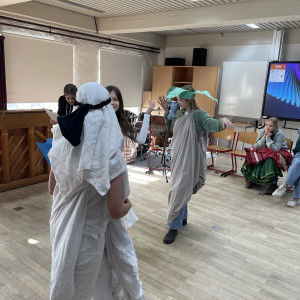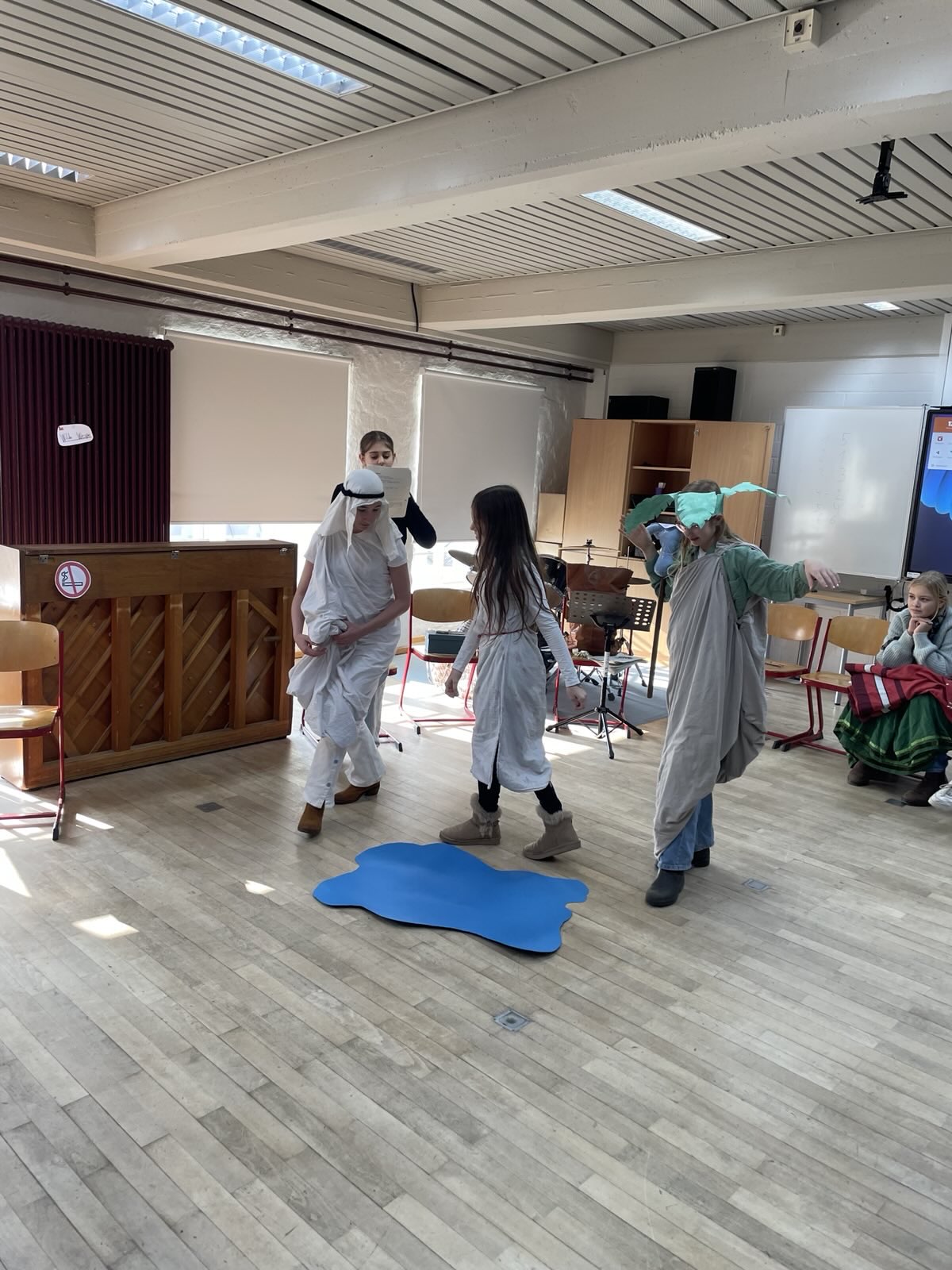Das haben wir, die 6c, im Musikunterricht ausprobiert. Doch mit Musik Geschichten zu erzählen ist gar nicht so einfach. Trotzdem haben wir uns der Herausforderung gestellt, zu dem Musikstück „Party Preparations“ aus dem Film „Chocolat“ eine Szene zu entwickeln und anschließend der Klasse zu präsentieren. Wir alle haben damit angefangen uns das Lied anzuhören, doch von da an haben sich die Stücke sehr verschieden entwickelt, denn jeder hat sich unterschiedliche Geschichten zu der Musik vorgestellt, da niemand das Stück kannte. All diese Ideen zusammenzubringen, war oft nicht leicht, doch am Ende sind tolle Szenen entstanden. Von Liebesgeschichten bis hin zu Kriminalfällen war alles dabei. Da gab es zum Beipiel das Stück: „Durstig durch die Wüste“