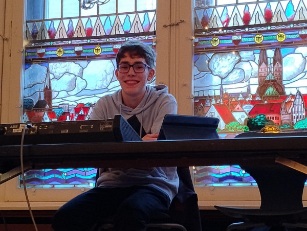Zweites Beispiel: Beim Musikalischen Abend der Schüler:innen müssen über drei Stunden die Mikrofone genau passend eingestellt sein, damit alle Musizierenden gut zu hören, aber nicht übersteuert sind. Frederik Adler aus der Ee sitzt drei Stunden lang um Mischpult, um allen das beste Klangerlebnis zu ermöglichen.