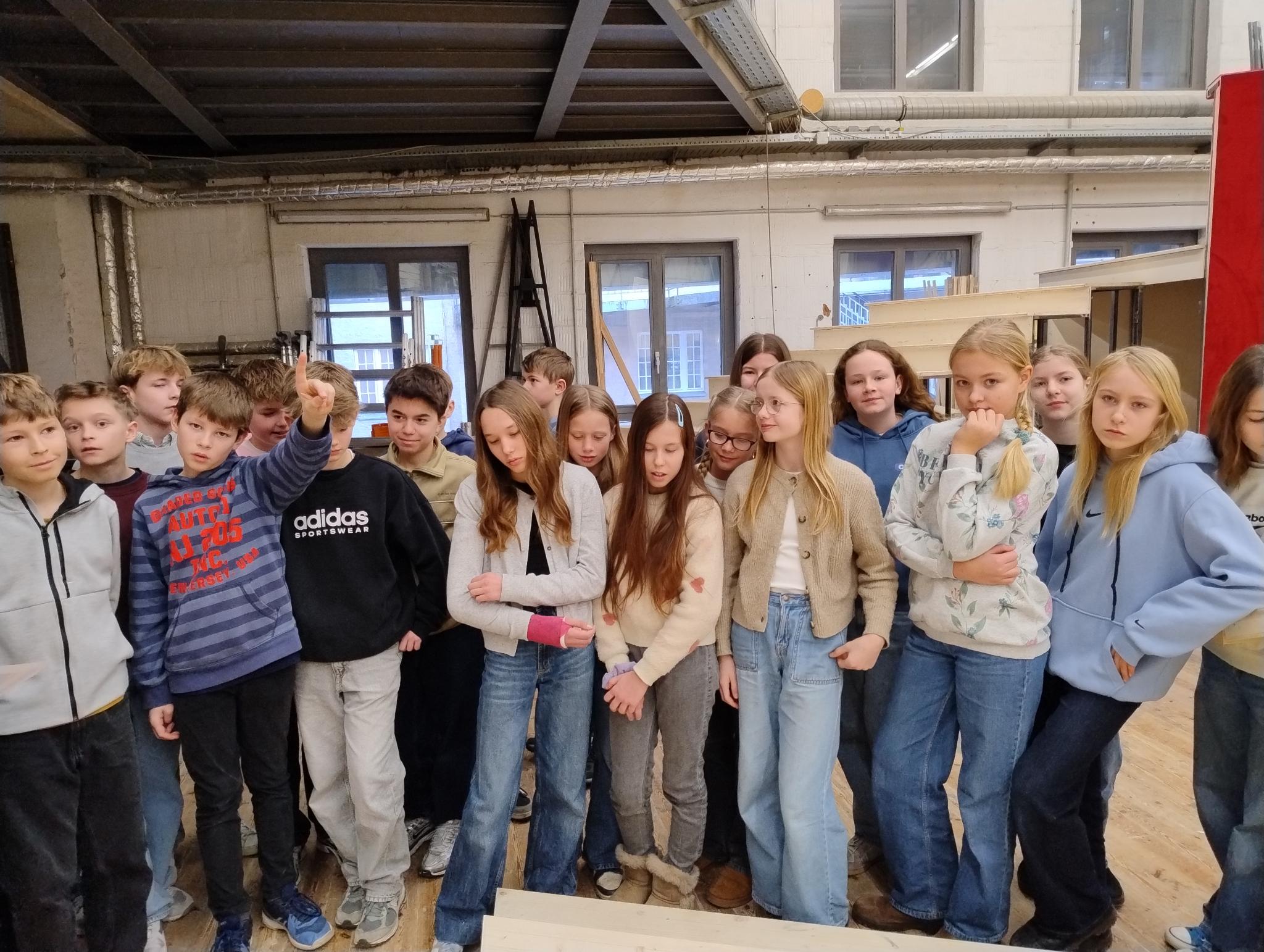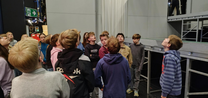 Nachdem wir uns morgens am Theater getroffen hatten, ging es nicht wie üblich im Theater durch den Haupteingang in den großen Saal hinein, sondern durch eine kleine Tür neben der Garderobe in den Backstagebereich. Geführt von der Theaterpädagogin Katrin Ötting erkundeten wir den erstaunlich großen Bereich hinter der Bühne. Eine ganze Welt, die man sonst nicht zu sehen bekommt. Sie zeigte uns die riesige Bühne mit ihren hohen Decken sowie die vielen Seilzüge, mit denen die verschieden Requisiten über die Bühne bewegt werden können. Nach einem kurzen Abstecher ins Kulissenlager, wo unter anderem der Kamin aus dem Stück „La Boheme“ oder die Wände aus „Tristan und Isolde“ standen, ging es direkt weiter in die Tischlerwerkstatt, wo alle Requisiten oder Hintergründe gebaut werden.
