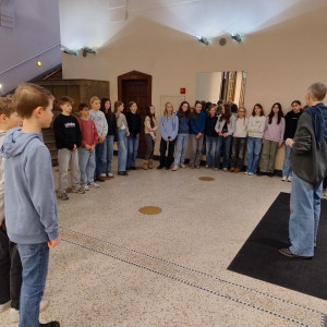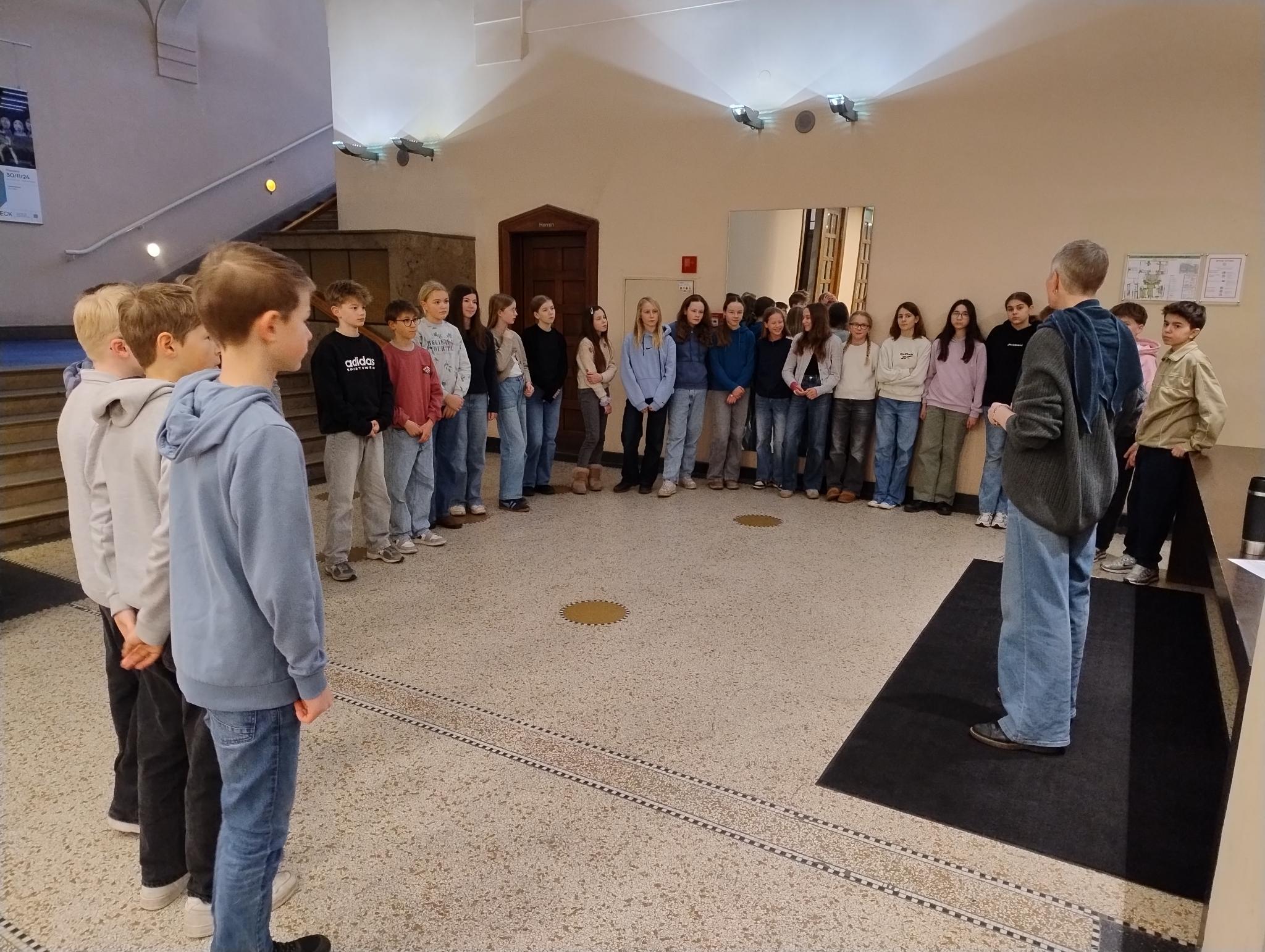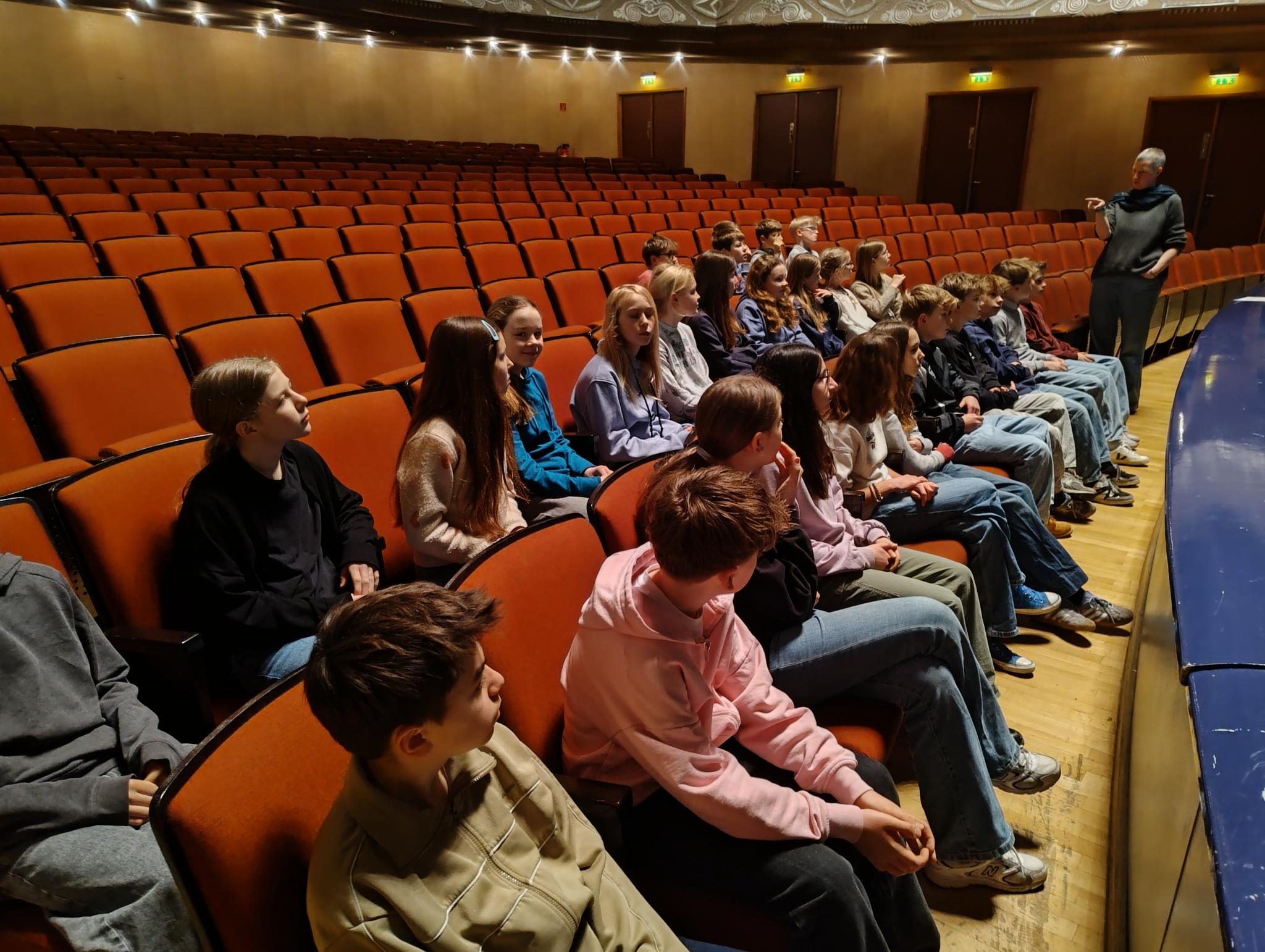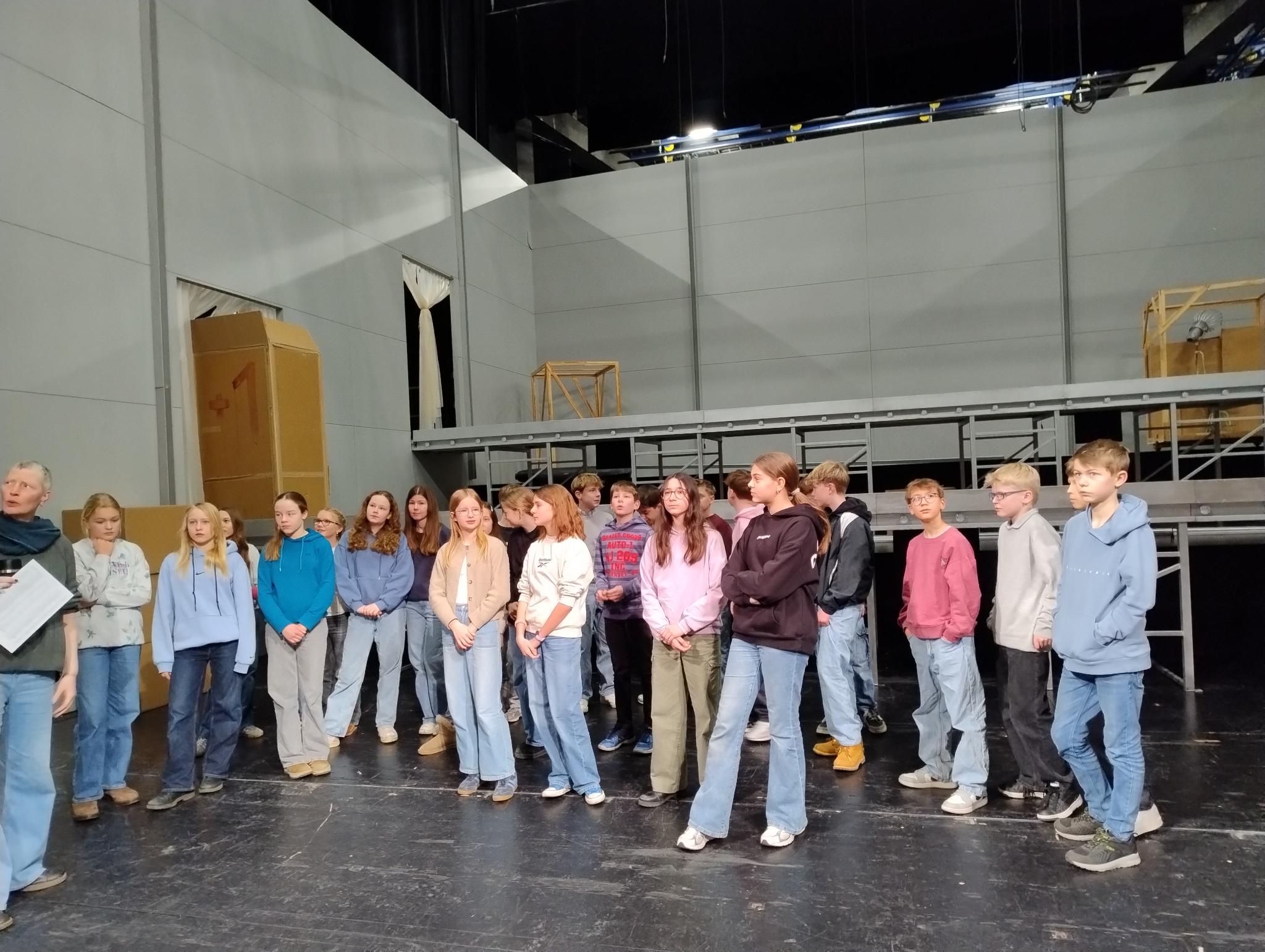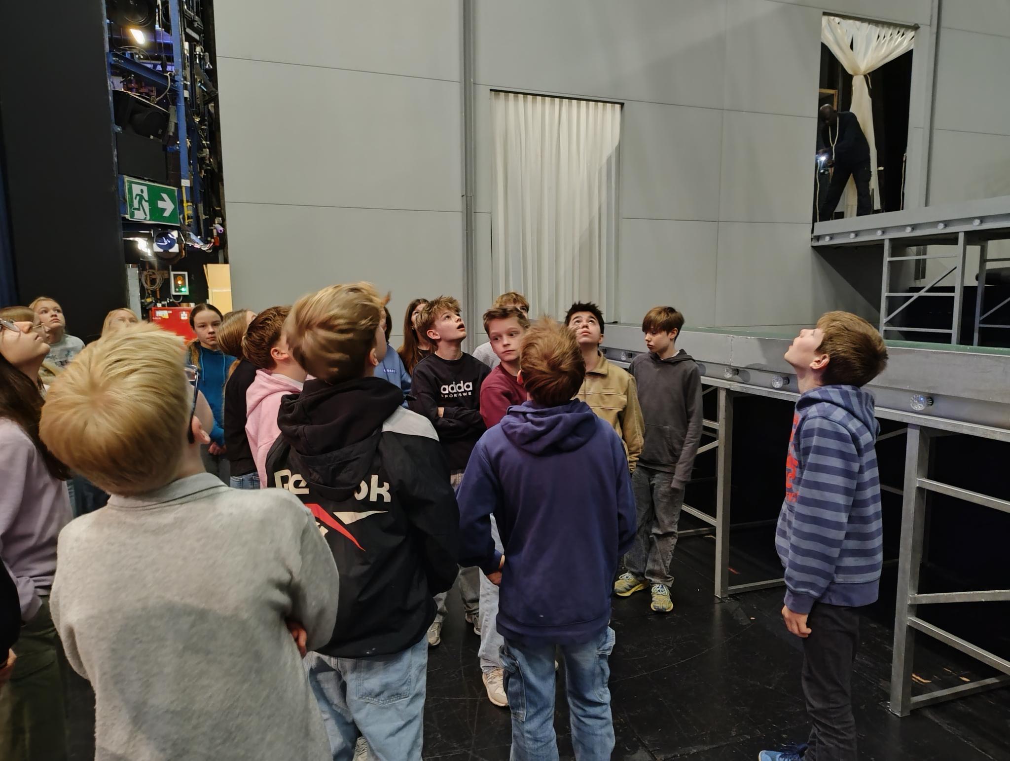 Als Nächstes waren wir im Malsaal, wo sie dann bemalt und gestaltet werden. Danach führte uns Frau Ötting ins Kostümlager, in dem alle Kostüme genäht, gelagert und dann von den Schauspieler:innen und Sänger:innen anprobiert werden. Bei dieser Theaterführung wurde uns dann erst richtig klar, wie viel Mühe und Aufwand hinter einem Theaterstück stecken!