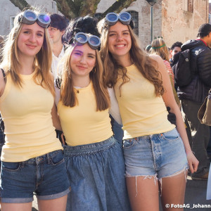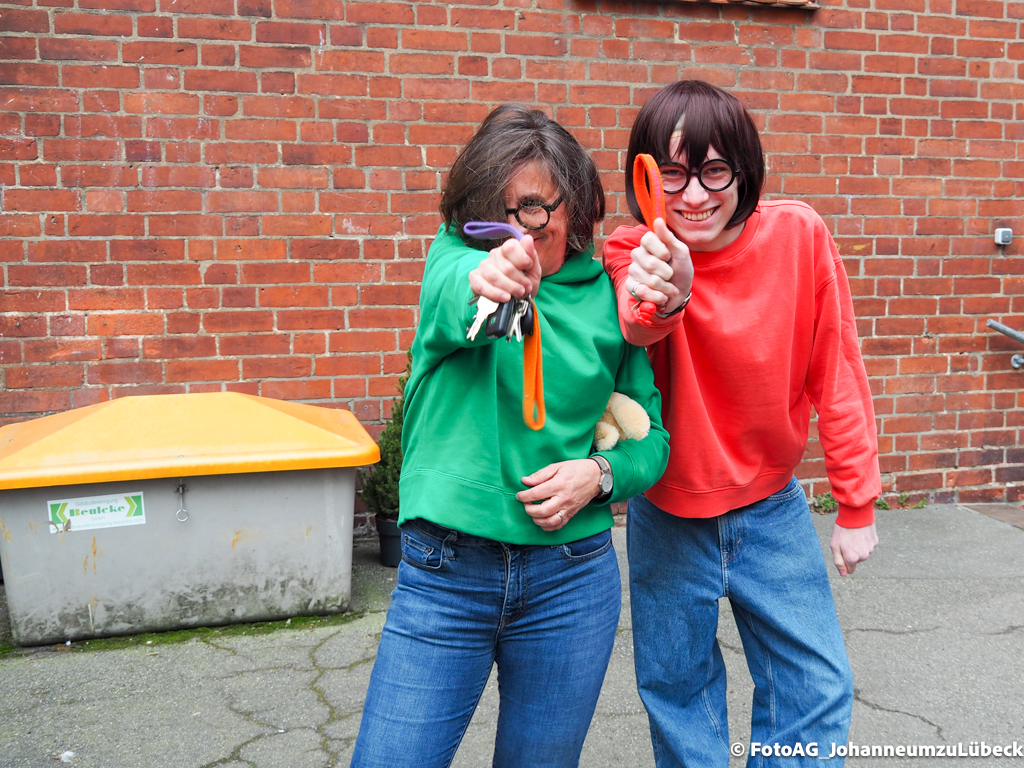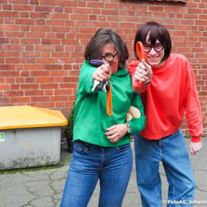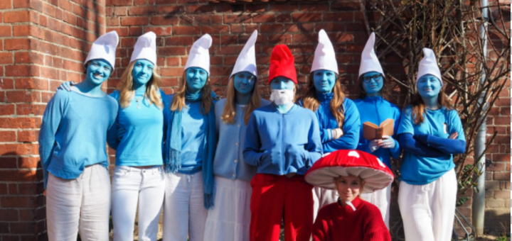 Doch nicht nur wir Schüler:innen hatten an diesem Tag Spaß am Verkleiden, einige Lehrkräfte benutzten das Motto ebenfalls und gingen als Schüler. Am nächsten und leider auch letzten Tag der Mottowoche war das Thema Gruppenkostüme, bei welchem jede Menge Schlümpfe, „Die drei !!!“, die „Men in Black“ und viele weitere in der Schule zu sehen waren.