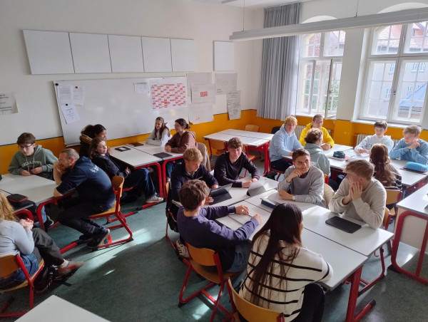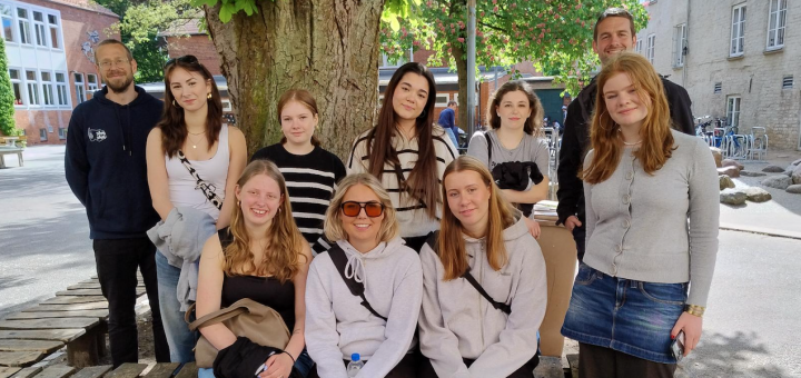 Hier hatten wir die Möglichkeit, Unterricht in den Fächern Deutsch, Englisch, Geschichte und Religion mitzuerleben, was sehr interessant und zum Teil auch anders war, als wir es aus Dänemark kennen. Spannend waren auch die Dialoge über Parallelen und Unterschiede im deutschen und dänischen Schulsystem und -alltag und über die gemeinsame deutsch-dänische Geschichte, die sich nach dem 2. Weltkrieg glücklicherweise sehr positiv gewandelt hat. Viele von uns sind zweisprachig, da wir aus der deutsch-dänischen Grenzregion kommen und entweder der deutschen Minderheit in Dänemark oder der dänischen Minderheit in Deutschland angehören, aber für andere ist Deutsch eine reine Fremdsprache. Die Teilnahme am Unterricht und der Dialog mit den Schüler:innen und Lehrkräften war deshalb auch ein richtig gutes Sprachtraining für uns.