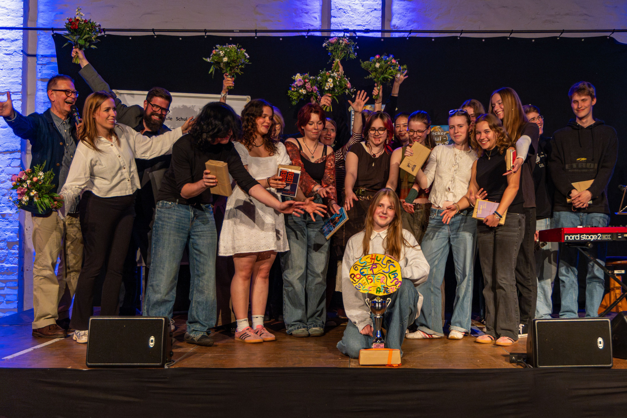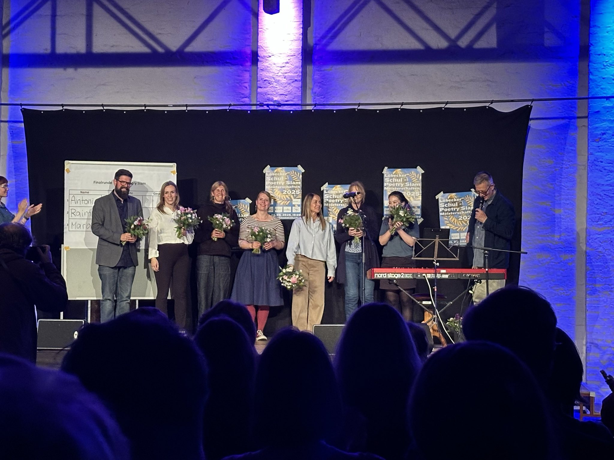 Aber auch alle anderen Teilnehmenden gingen nicht leer aus: Es gab jeweils ein Buch für die Slammer:innen und Blumen für die Lehrerinnen 🙂