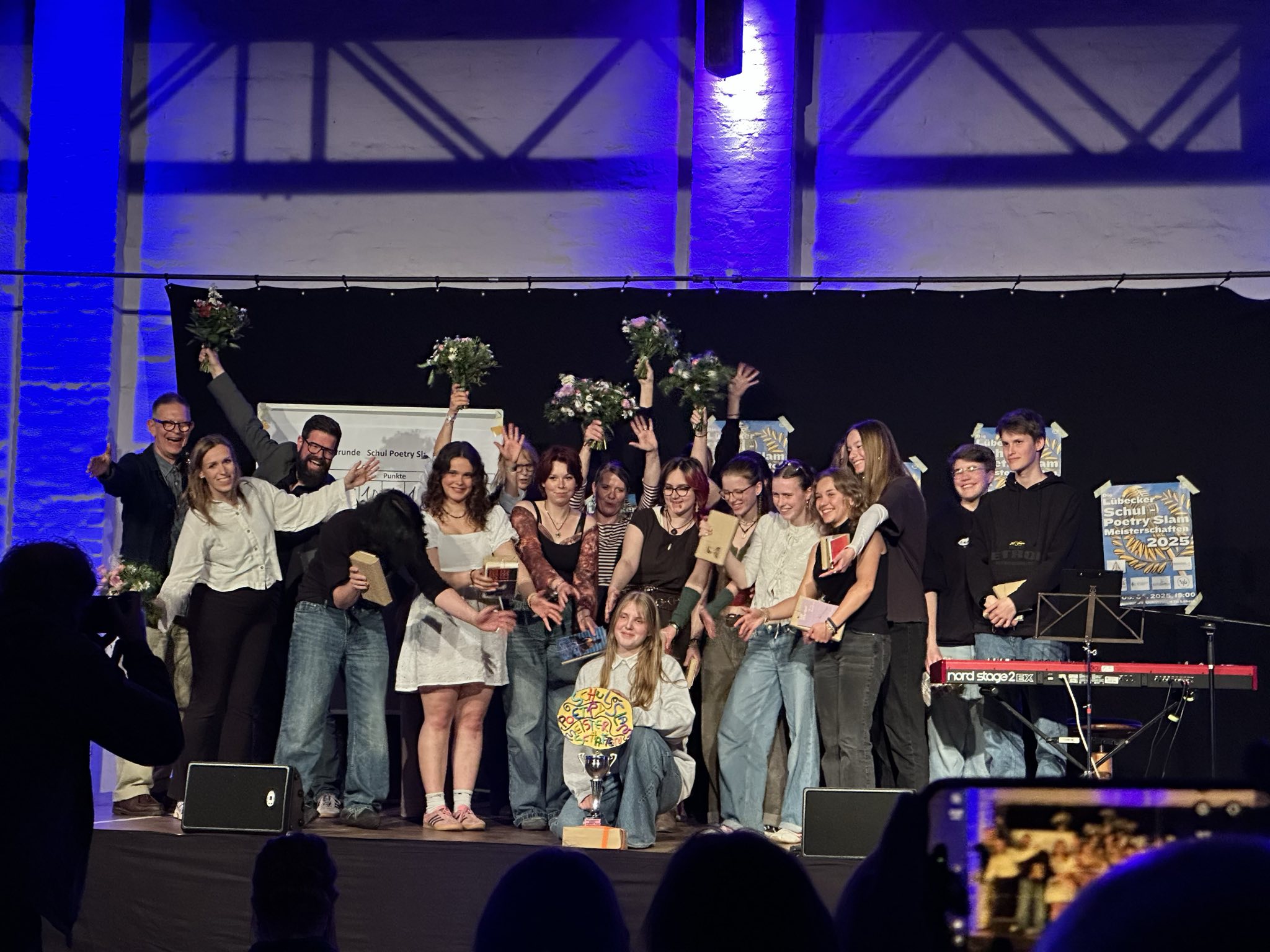 Dank Unterstützung des Schulvereins und unter anderem der Possehl-Stiftung konnten die Poetry-Slam-Meisterschaften ein zweites Mal in Lübeck stattfinden. Wir hoffen, das Projekt startet auch nächstes Jahr wieder und freuen uns auf tolle Texte und engagierte Performances!