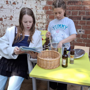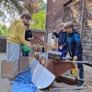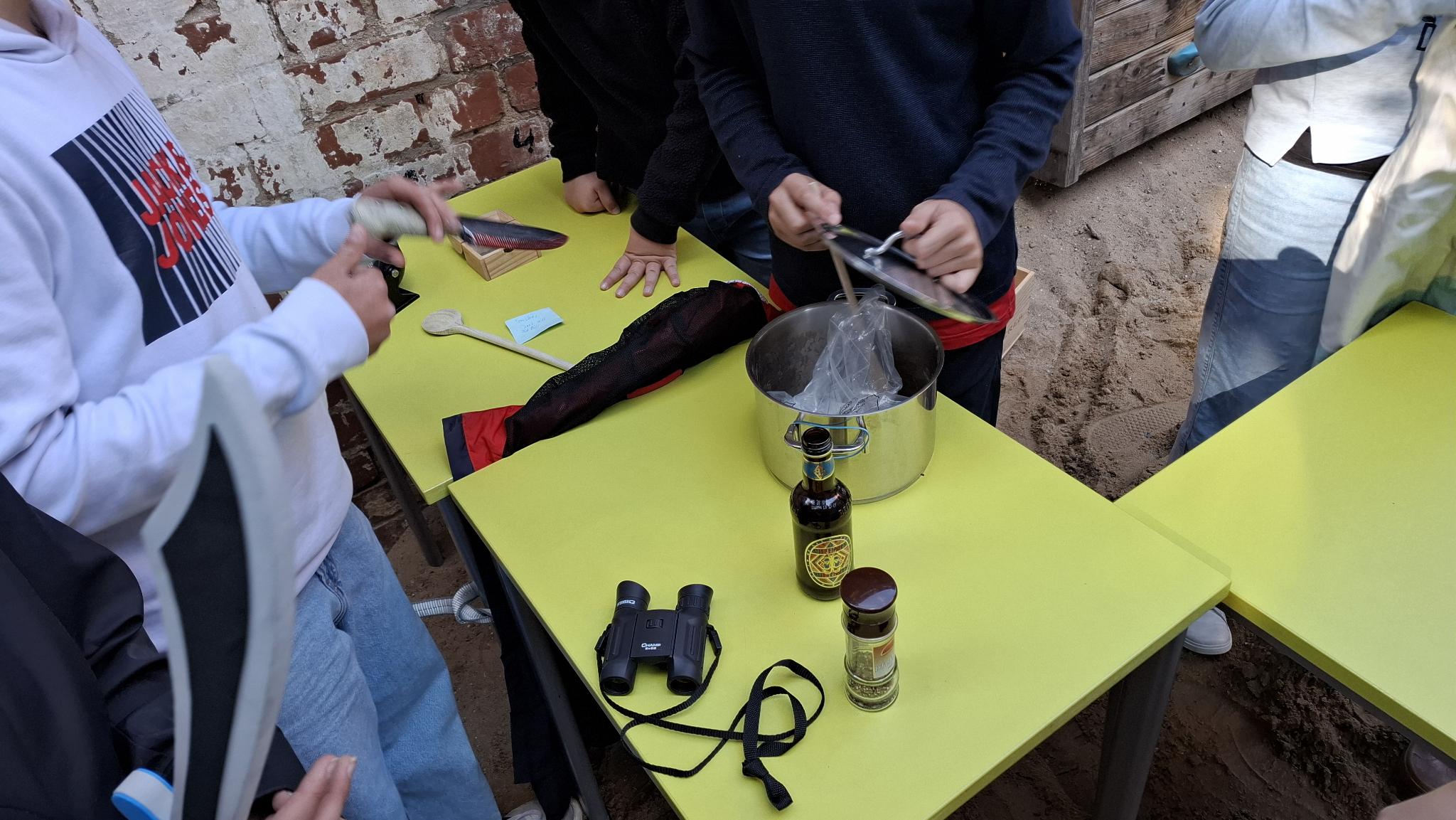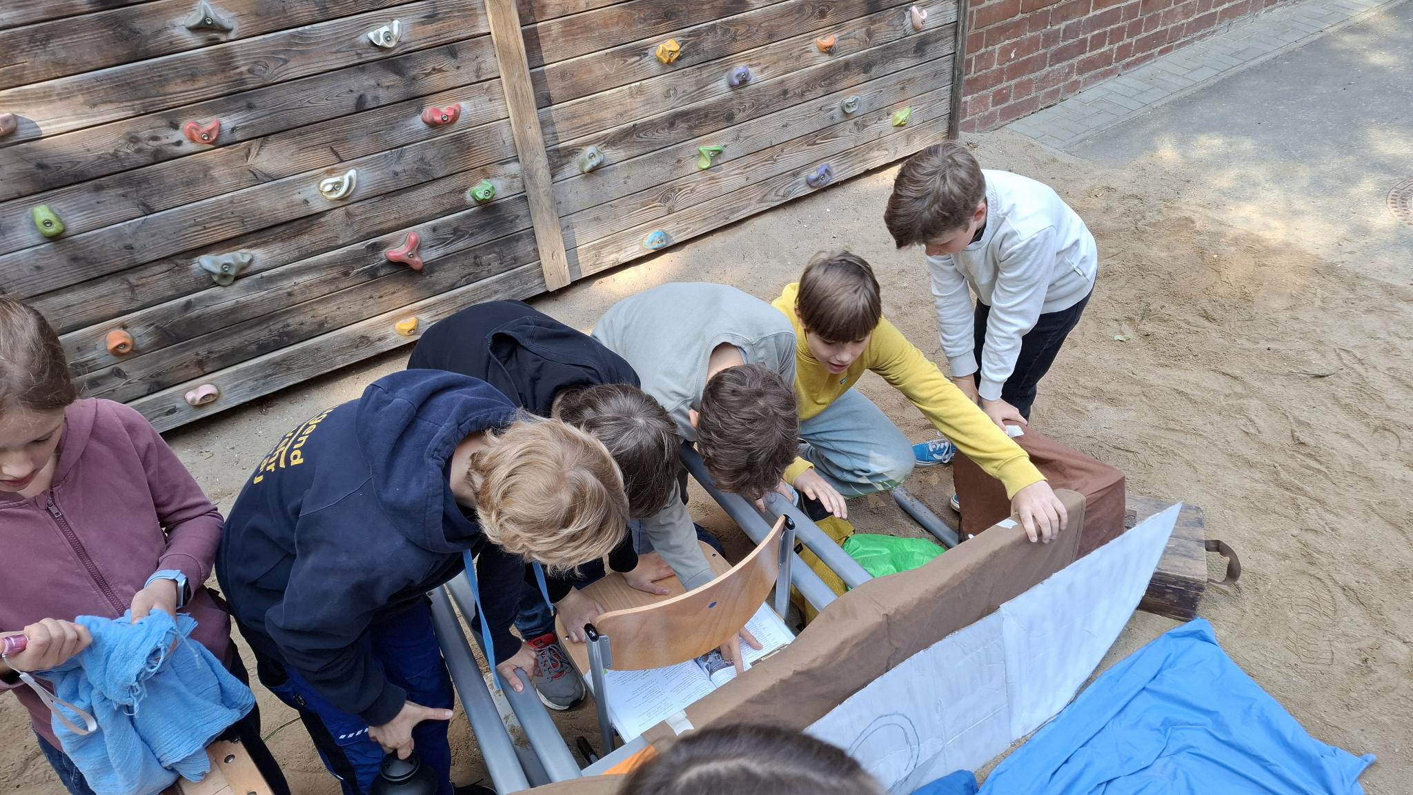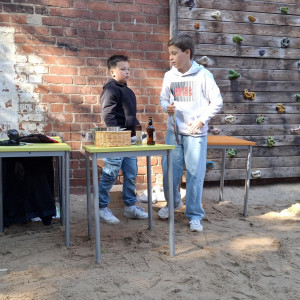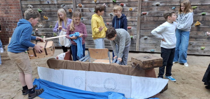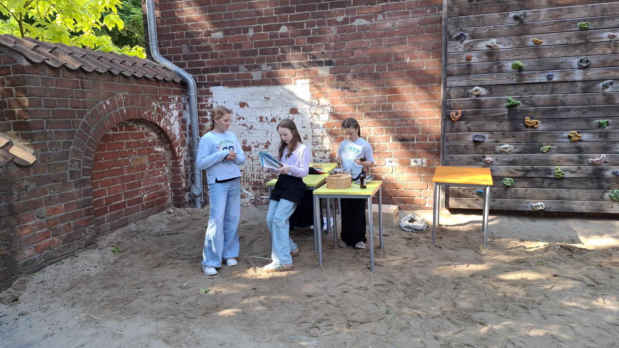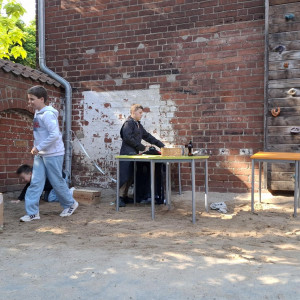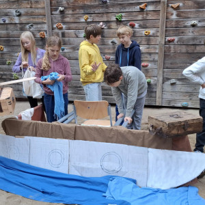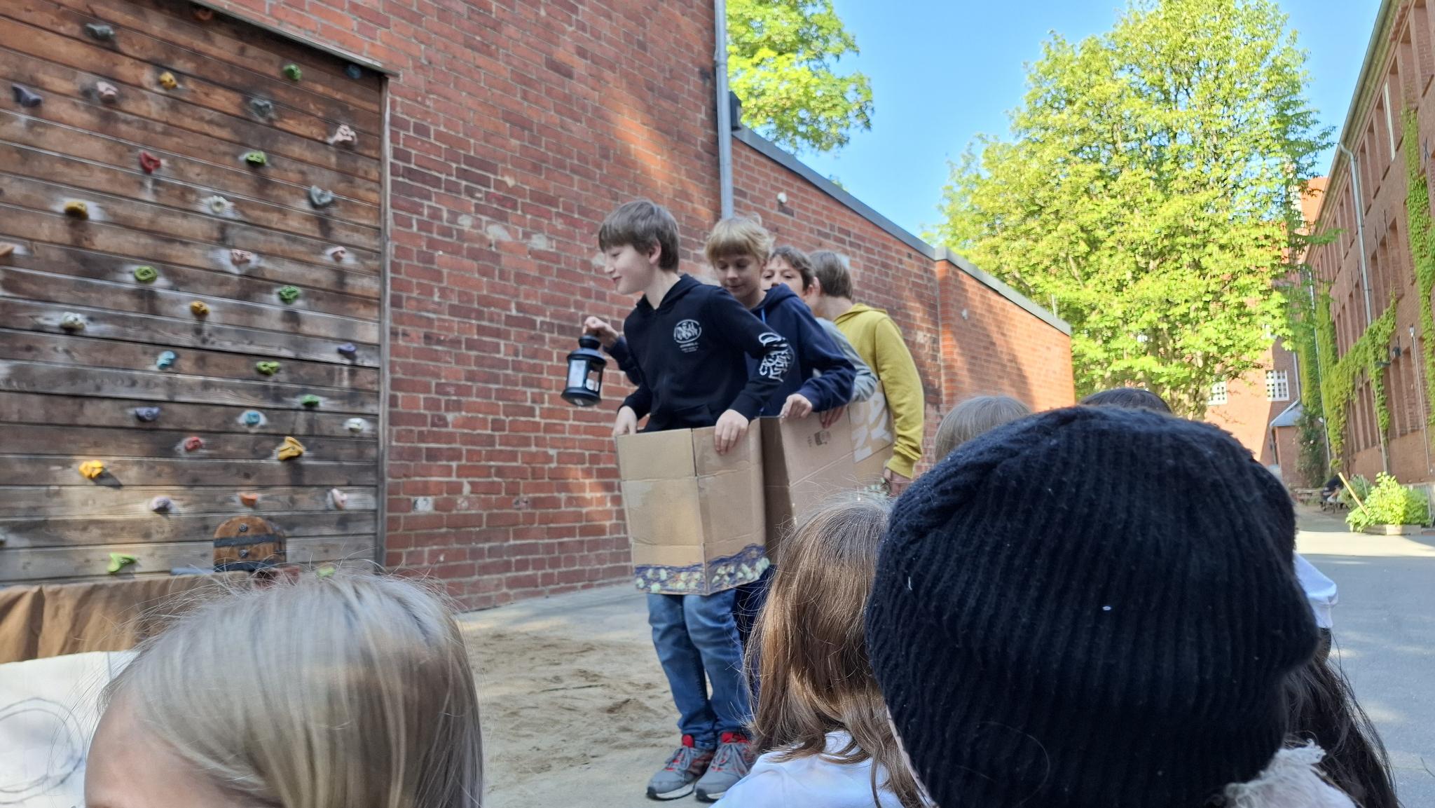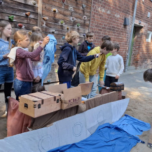 Theaterspielen macht Spaß, insbesondere dann, wenn auch Bühnenbild und Requisiten stimmen. Und so konnten wir uns richtig in das Stück einfinden und die Rollen gut verkörpern. Auch über die Anordnung der einzelnen Bühnenbauteile und die Requisiten waren sich alle schnell einig. Es war ein großer Spaß und, wer weiß, was noch alles an Leckereien geschmuggelt werden kann, nur um daraus ein spannendes kleines Theaterstück zu kreieren.