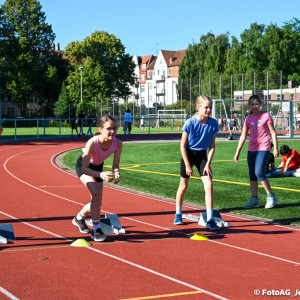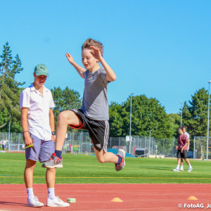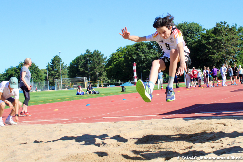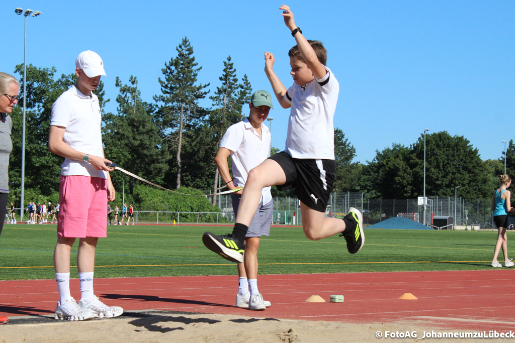 Wir mussten springen, laufen und werfen. Beim Sprinten ging es darum, die vorgegebene Strecke in so kurzer Zeit wie möglich zu laufen und dabei wird die Zeit gestoppt. Beim Werfen und Springen sollte man so weit wie möglich kommen und am Ende wurde gemessen.