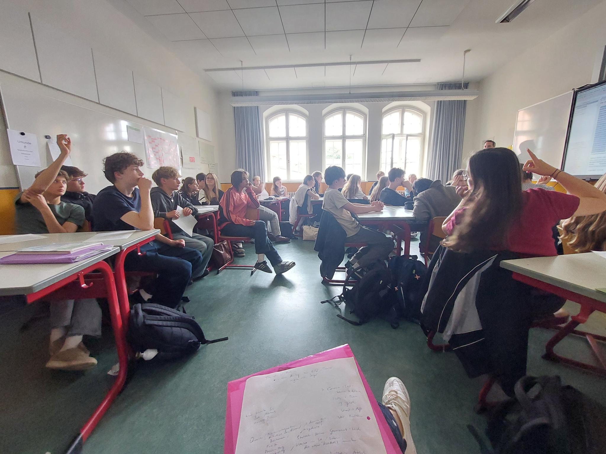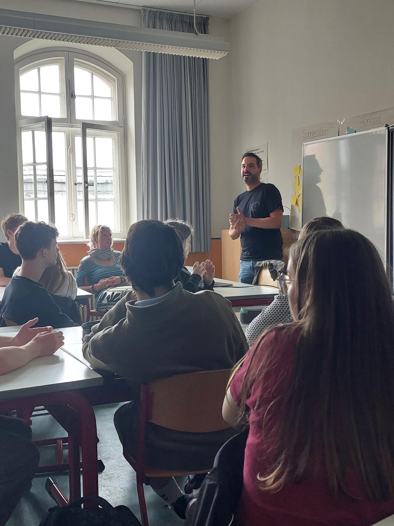 Wie verändert sich der Journalismus durch KI? Wie sieht es mit Gendern aus? Solche und viele weitere Fragen beantwortete uns der Journalist Hauke Bülow, als er unsere Klasse, die 9d, im Rahmen des Projekts „Journalismus macht Schule“ besuchte und wir die Gelegenheit hatten, statt Deutschunterricht den Beruf Journalist:in näher kennenzulernen.