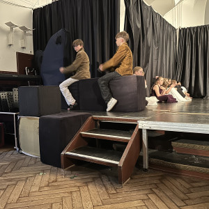 Bei dem Stück der 6a, Mobby Dick, wurden wir von einer sehr besonderen Stimmung empfangen. Die bekannte Geschichte handelt von Ahab, einem Walfänger, der von dem weißen Wal, Mobby Dick, verletzt wurde und nun auf Rache aus ist. Die Klasse hat das Stück durch chorisches Sprechen, Einbindung des Publikums und andere theatrale Mittel sehr aufregend untermalt. Besonders gut gefallen hat uns, wie gut die Atmosphäre vermittelt wurde, und die kreative Idee, einen Charakter durch mehrere Schauspieler darzustellen.