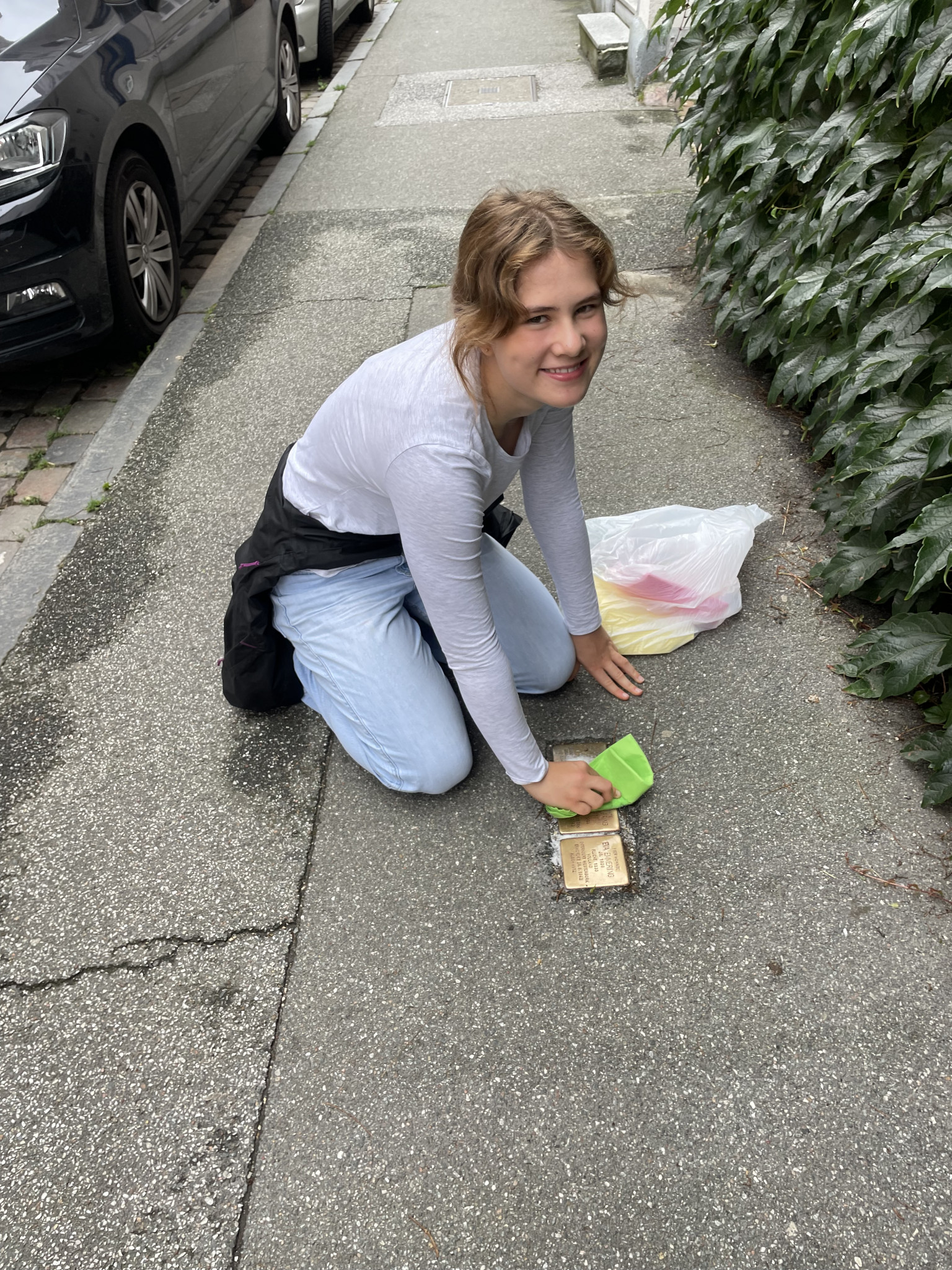 Wir waren erstaunt, wie schmutzig die Steine mit der Zeit geworden waren, und hatten das Gefühl, etwas Gutes für die Gesellschaft zu tun. Tatsächlich wurden wir von einigen Fußgänger:innen angesprochen und erhielten positive Rückmeldungen. So achten in Zukunft vielleicht mehr Passanten auf die Stolpersteine.