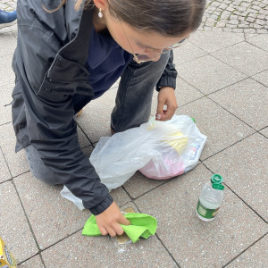 In diesem Jahr hat die Projektgruppe von Frau Appel Stolpersteine in der Innenstadt gereinigt. Dafür haben wir uns in kleinere Gruppen aufgeteilt und sind, ausgerüstet mit verschiedenen Putzmaterialien, losgezogen, um den Gedenksteinen der Opfer des NS-Regimes einen neuen Glanz zu verleihen.