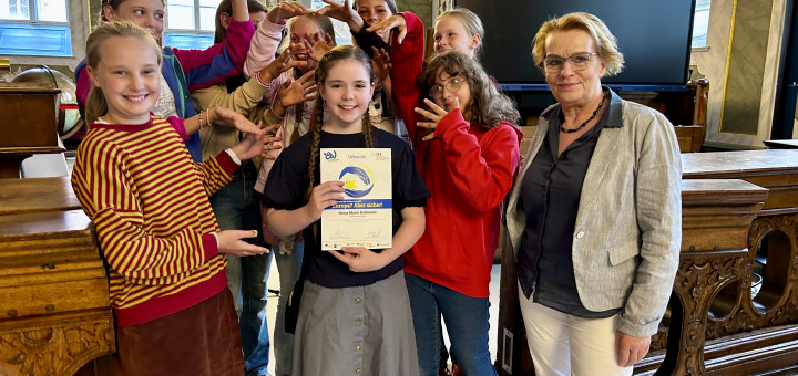 Für das Ergebnis, unsere Texte, gab es am 11. Juli 2025 im Audienzsaal des Rathauses eine Ehrung: Birgit Wille, die Vorsitzende der Europa-Union, und Senatorin Monika Frank haben uns zur Preisverleihung des Europäischen Wettbewerbs eingeladen, an dem jedes Jahr über 70.000 Schüler:innen in Deutschland teilnehmen. Wir waren total gespannt, wer mit seinem Märchen das Rennen gemacht hat. Und der Lübecker Politiker, Herr Kreft, hat uns und die Schüler:innen der anderen Schulen auch ein bisschen auf die Folter gespannt. Er wollte bei der Vorstellung unserer Arbeiten ganz genau wissen, was wir uns überlegt hatten und welche Eigenschaften wir an unseren Märchenfiguren als wichtig und wertvoll empfanden. Am Ende waren wir alle ein bisschen stolz, dass wir an dem Wettbewerb teilgenommen haben, denn die Preisverleihung ist schon ein schöner Moment. Und besonders stolz waren wir dann auf Sonja und Christopher, die beide mit ihren Texten einen Landespreis von Herrn Kreft und Frau Frank erhielten.
