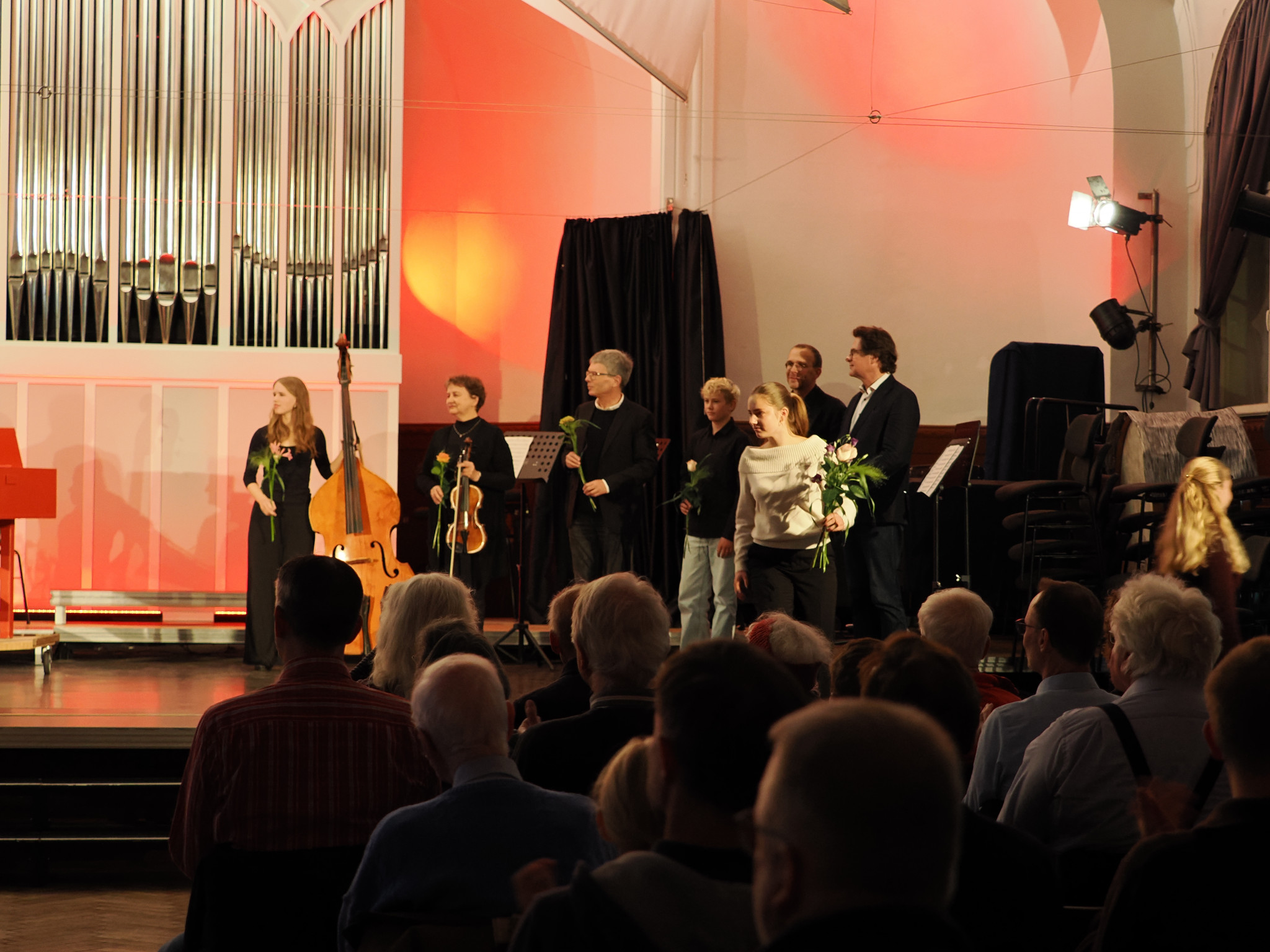 Zahlreiche Musiker:innen traten an diesem besonderen Abend auf und zeigten gemeinsam, wie vielseitig die Orgel einsetzbar ist. Ob als Begleitinstrument beim Auftritt der Lübecker Knabenkantorei, als Kammermusikinstrument für verschiedene Ensembles aus Schüler:innen und Lehrkräften des Johanneums sowie als Soloinstrument, gespielt von Professor Franz Danksagmüller, Heiner Arden und Johannes Unger. Das abwechslungsreiche Programm verzauberte durch seine Vielfalt und die beeindruckenden musikalischen Beiträge aller Beteiligten. Der Abend endete mit einem würdigen Schlusspunkt – dem Händel-Orgelkonzert F-Dur HWV 292 von Georg Friedrich Händel, gespielt von Johannes Unger – und wurde mit tosendem Beifall gefeiert.