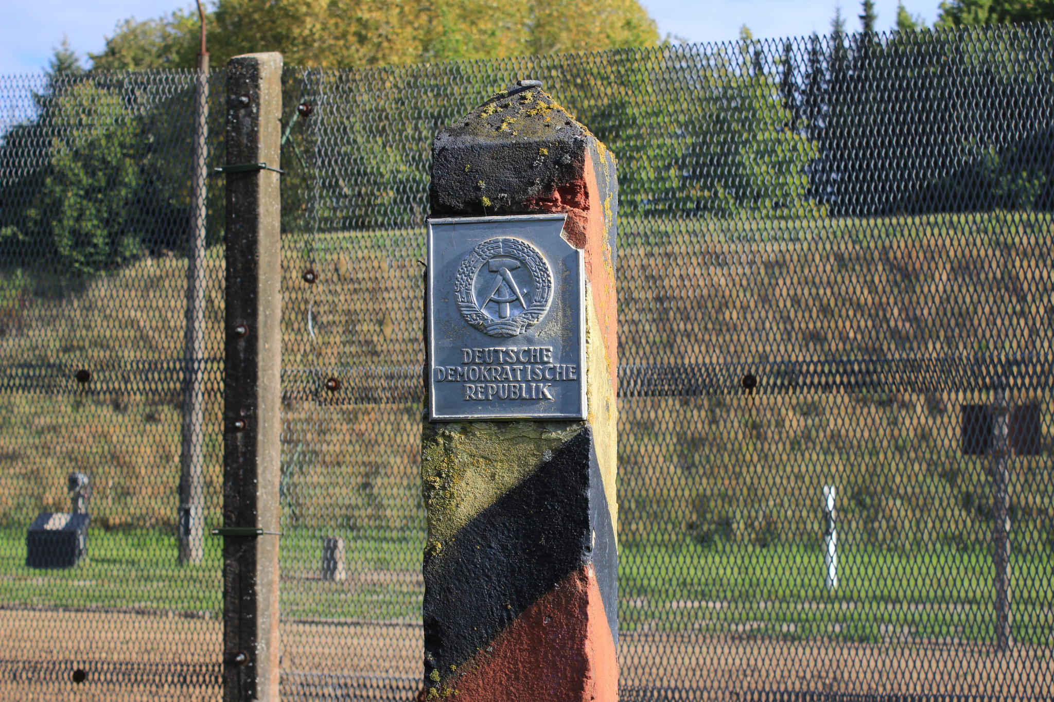 Abfahrt war am Mittwoch, den 1. Oktober pünktlich an der MuK. Nach etwas mehr als einer halben Stunde im Reisebus ging es im Grenzhus direkt los. Mithilfe eines Zeitstrahls rekonstruierten wir die Geschehnisse rund um um den Kalten Krieg. Danach führte Herr Wagner uns durch das Außengelände und erzählte passend dazu echte Fluchtgeschichten, die das Museum aus alten Akten der Staatssicherheit, dem Geheimdienst der DDR, hat.
