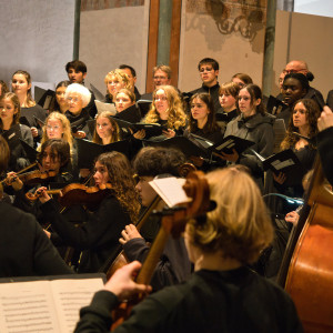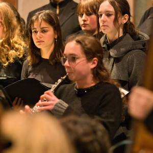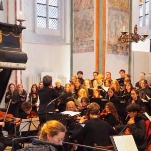 Bevor es in die Kirche ging, trafen sich der von Frau Salomon geleitete ELF-Chor und der Oberstufenchor zunächst im Gemeindesaal von St. Jacobi. Es wurde gemeinsam geprobt und letzte Einsätze abgeglichen. Anschließend begann die Generalprobe zusammen mit dem Kammerorchester des Johanneums. Die Kirche war nur wenig beheizt, doch diese kühle Umgebung war kein Nachteil, sondern ein Teil der besonderen Stimmung: klar, ruhig und offen für den Klang. In dieser mehr oder weniger kalten Kirche entwickelte sich ein sehr intensiver Probenmoment, in dem alle Beteiligten spürten, wie die Musik zu wirken begann.