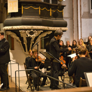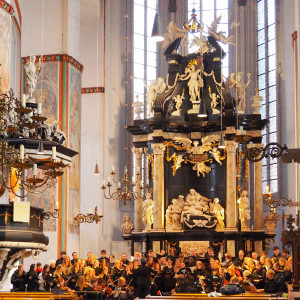 Als die Bach-Kantate aufgeführt wurde, erfüllt der Klang des großen Chores, begleitet vom Kammerorchester, den Kirchenraum. Solistisch wurde die Kantate von Milena Juhl (Alt) und Karl Hänsel (Tenor) gestaltet. Besonders beeindruckend war dabei das innig und virtuos gespielte Oboensolo von Marle Mahlerwein, Q1.