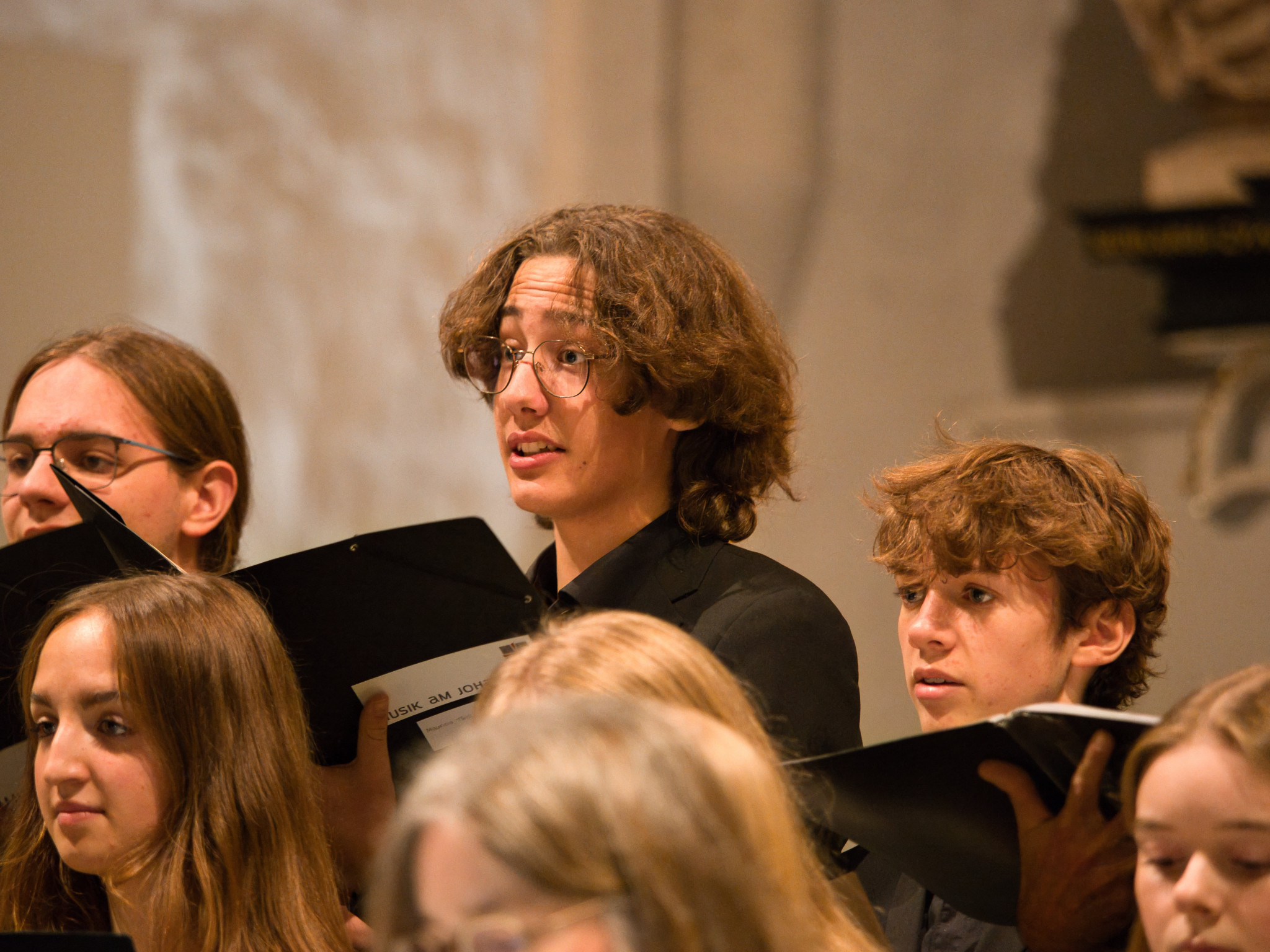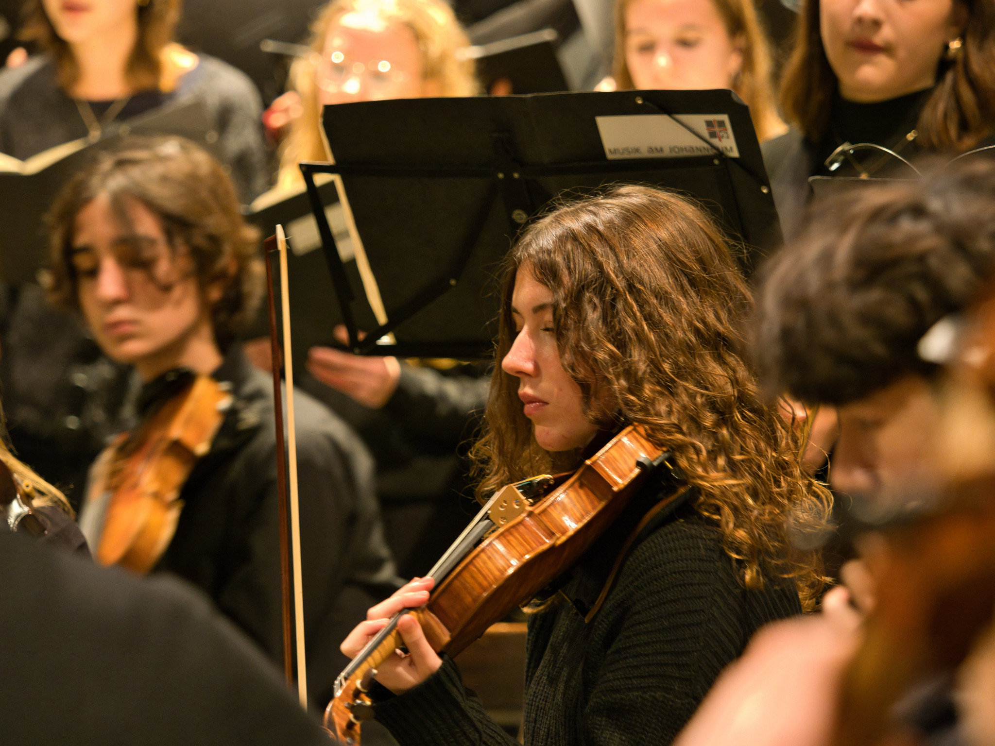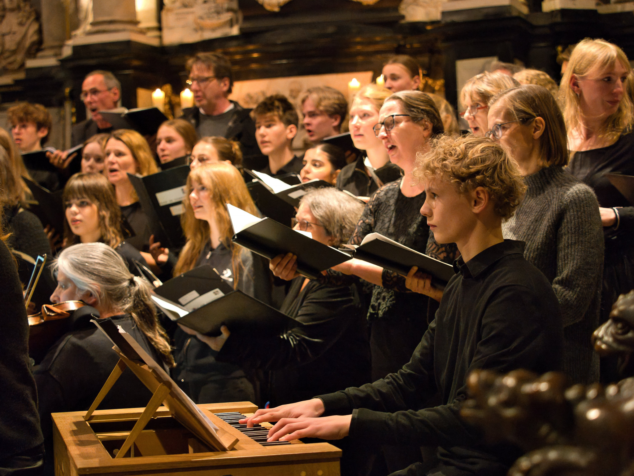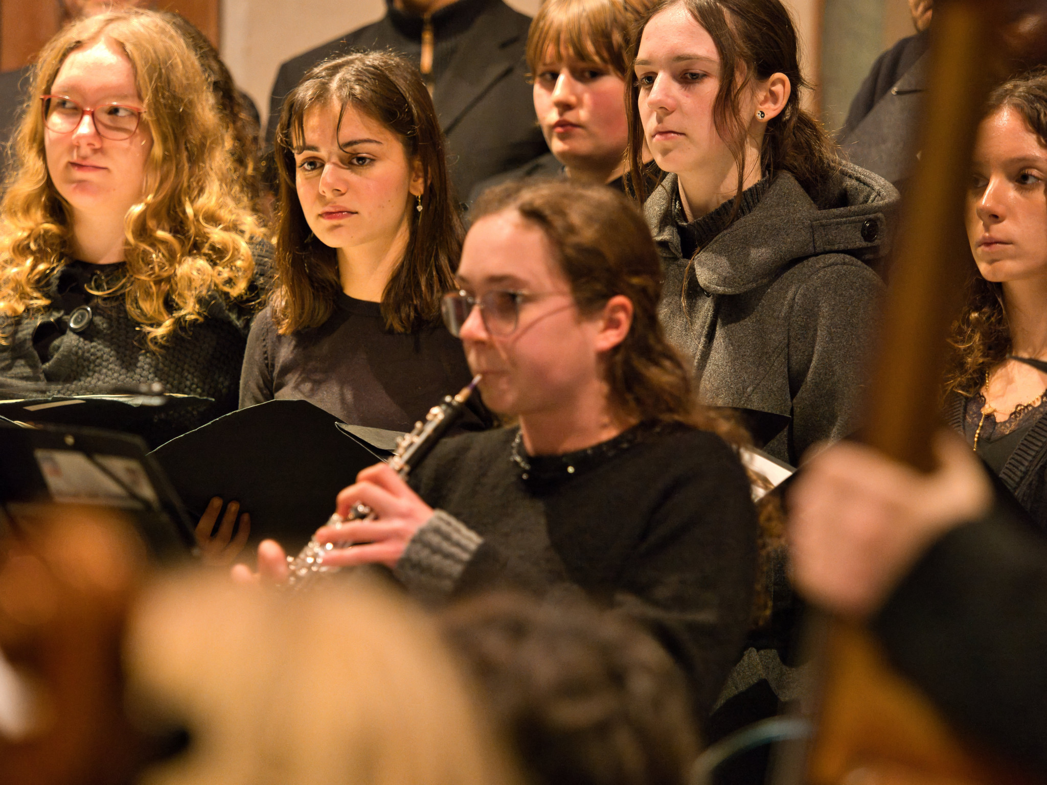 Bevor es in die Kirche ging, trafen sich der von Frau Salomon geleitete ELF-Chor und der Oberstufenchor zunächst im Gemeindesaal von St. Jacobi. Es wurde gemeinsam geprobt und letzte Einsätze abgeglichen. Anschließend begann die Generalprobe zusammen mit dem Kammerorchester des Johanneums. Die Kirche war nur wenig beheizt, doch diese kühle Umgebung war kein Nachteil, sondern ein Teil der besonderen Stimmung: klar, ruhig und offen für den Klang. In dieser mehr oder weniger kalten Kirche entwickelte sich ein sehr intensiver Probenmoment, in dem alle Beteiligten spürten, wie die Musik zu wirken begann.