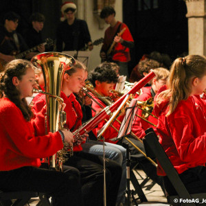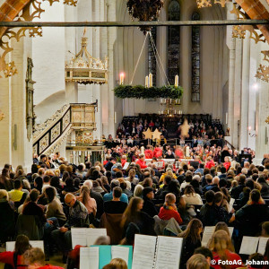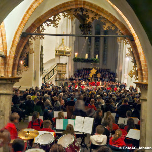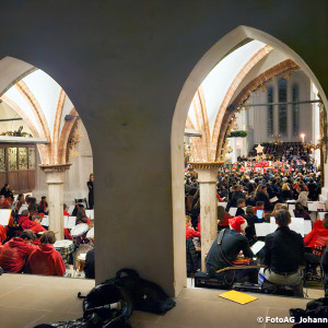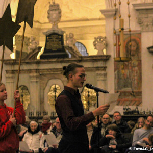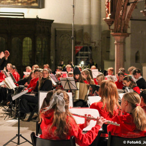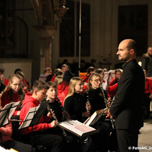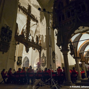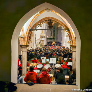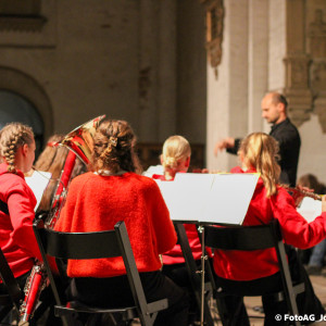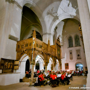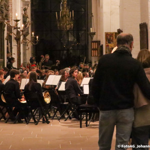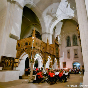 Schon eine halbe Stunde vor Beginn des Konzerts war der Dom bereits voller Menschen, Stücke wurden noch ein letztes Mal geübt oder einfach nur im Kopf durchgegangen und die Luft war von vielen Gesprächen und Rufen erfüllt. Dann senkte sich plötzlich Stille über die Kirche und der Abend wurde mit einer schwungvollen Vorstellung der Concert-Band von „Macht hoch die Tür“, bei der auch die Zuhörer:innen mitsingen konnten, eröffnet. Genau wie bei den Liedern „Vom Himmel hoch“ und „Tochter Zion“, welche ebenfalls von der Concert- und Junior-Band sowie einer Orgel im Verlauf des Abends gespielt wurden.